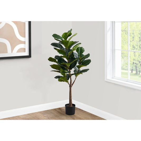 Artificial Plant, 47" Tall, Fiddle Tree, Indoor, Faux, Fake, Floor, Greenery, Potted, Real Touch, Decorative, Green Leaves