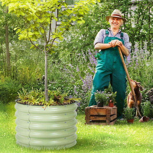 Aoodor 16.7'' Tall Aluzinc Metal Raised Garden Bed 24'' Round - Outdoor Garden Planter Box for Vegetable, Flower, Herb