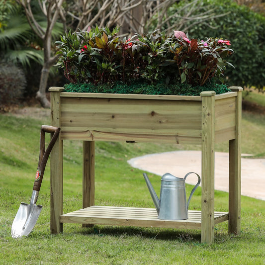 29.9" H Natural Wood Rectangular Raised Garden Planter with Shelf