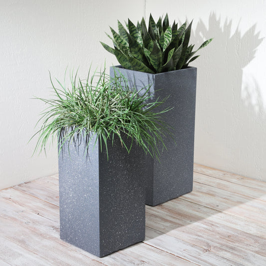 Dark Gray Resin Square Nested Planters, Set of Two, 11"Lx11"W 22"H/13"Lx11"W28"H, Stylish Indoor and Outdoor Plant Pots,