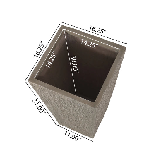 Kante 31.4" and 23.6"H Weathered Finish Concrete Tall Planters (Set of 2), Large Outdoor Indoor