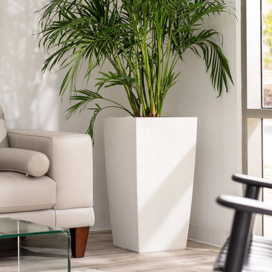 XBrand 30" H Rattan Self Watering Indoor Outdoor Square Planter Pot, Tall Decorative Gardening Pot, Home Décor Accent