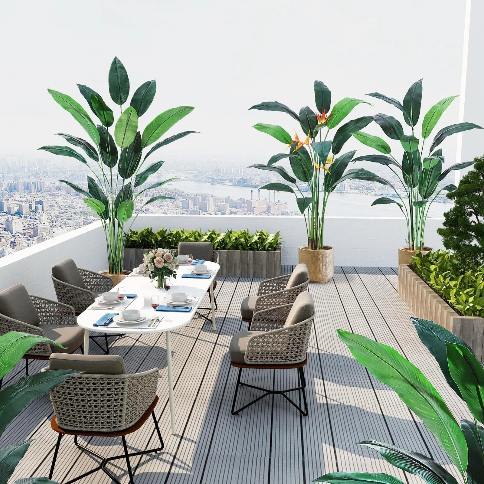 【Realistic Bird of Paradise Plant】This 6/7ft artificial Bird of Paradise plant features lifelike Trachycarpi Petiolus and realistic PE trunk, giving it a sculptural appearance, complemented by vivid leaves for an artistic and authentic look. The trunk is divided into several leaf segments, adorned with a total of 17/20 rubber fabric-made leaves. The clear texture and natural colors of the banana leaves make this artificial tree an ideal home and office decoration, creating a tropical ambiance in your living environment.