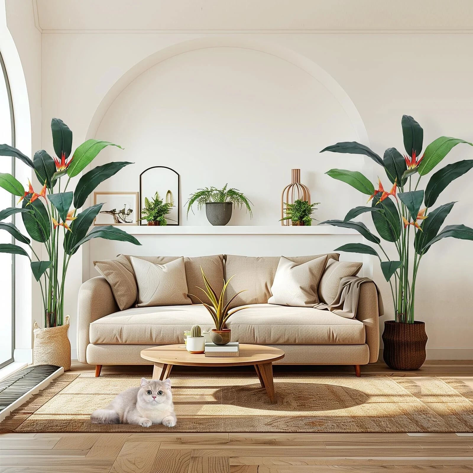 【Easy to Assemble】This pre-assembled Bird of Paradise plant is easy to assemble; simply arrange different-sized leaves according to your preference to create a complete Bird of Paradise plant. The branches are equipped with sturdy metal wires inside, allowing you to adjust them to your desired shape without easily breaking or shedding. Even the height of the leaves can be adjusted according to your liking, ensuring you have a unique and eye-catching Bird of Paradise plant in your home.