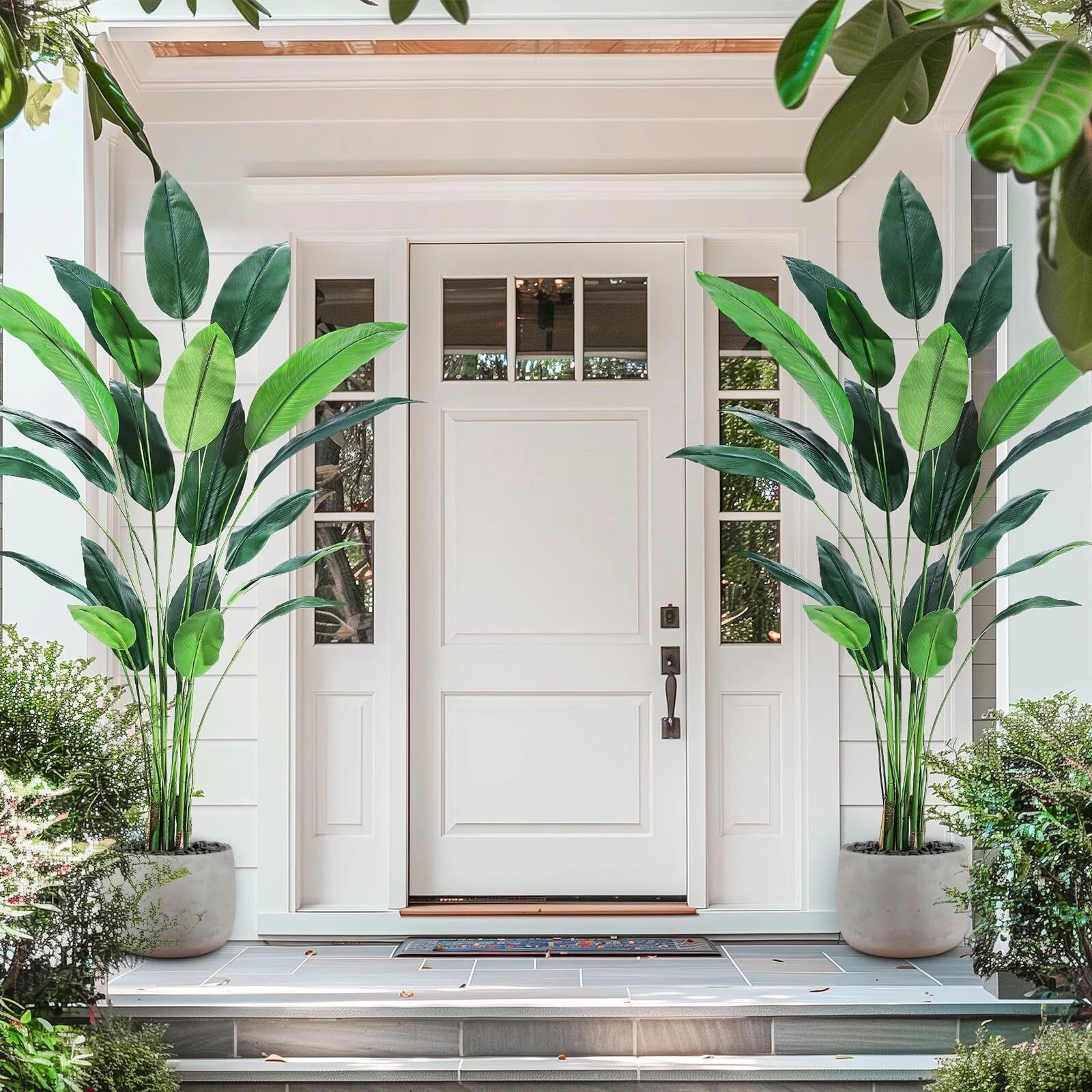 【Safe Materials】All materials used in our artificial plants are flame retardant treated, ensuring safety even when placed in enclosed environments. Through multiple layers of packaging and cardboard box transport, this artificial plant will maintain its height, color, and shape for years without the need for trimming or styling, ensuring it remains beautiful and creates a tropical/natural atmosphere in your living space.