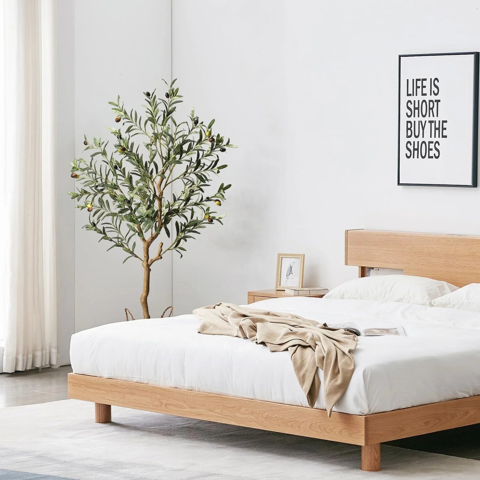 【Realistic Olive Tree】This 4.25/5/6FT artificial olive tree features a lifelike PE trunk, giving it a sculptural appearance, complemented by lifelike leaves and fruits for an artistic and authentic look. The single trunk splits into several branches, adorned with dozens of olives made of rubber fabric. The clear texture of the olive leaves and vibrant colors make this faux tree an ideal home and office decoration, creating a tropical atmosphere in your living environment.