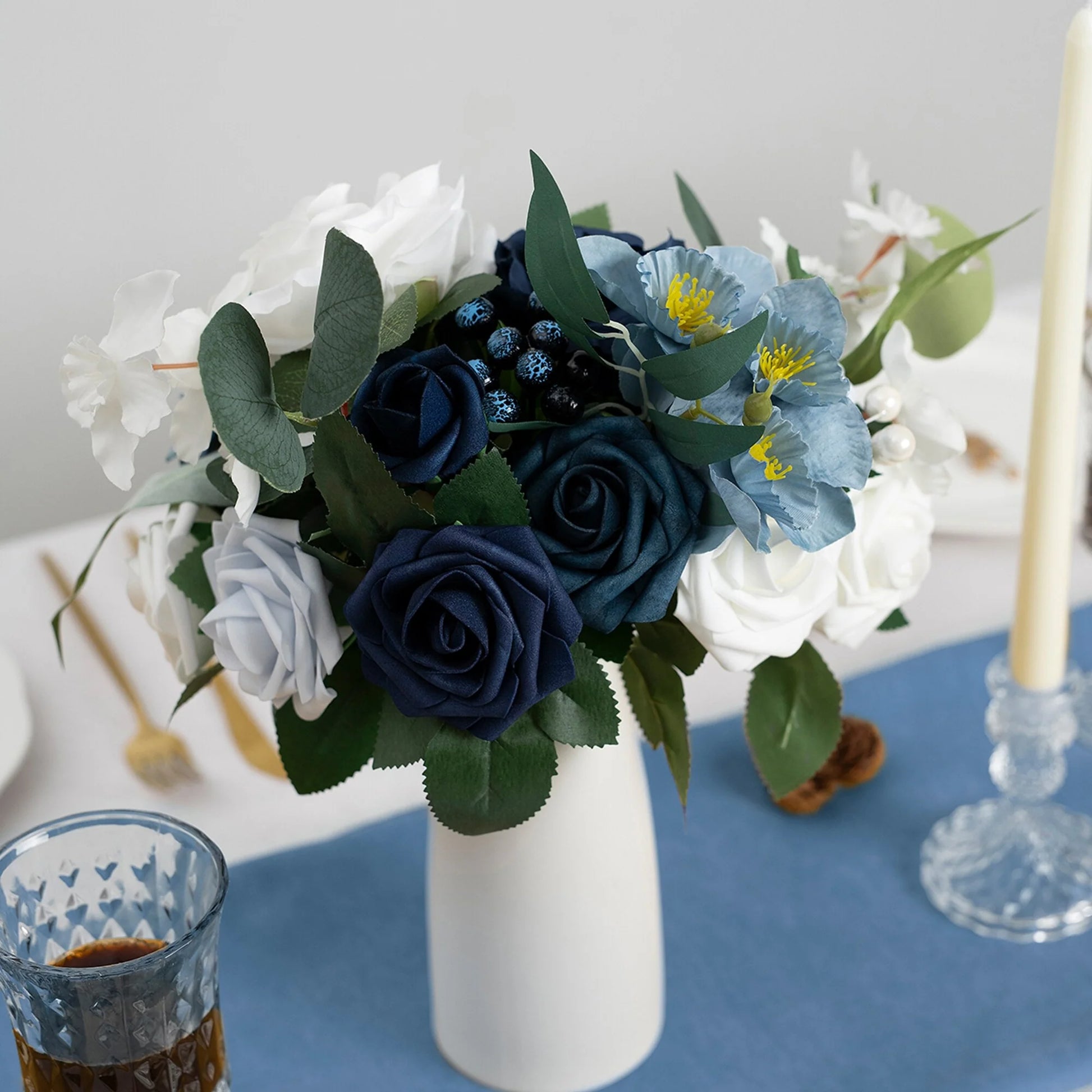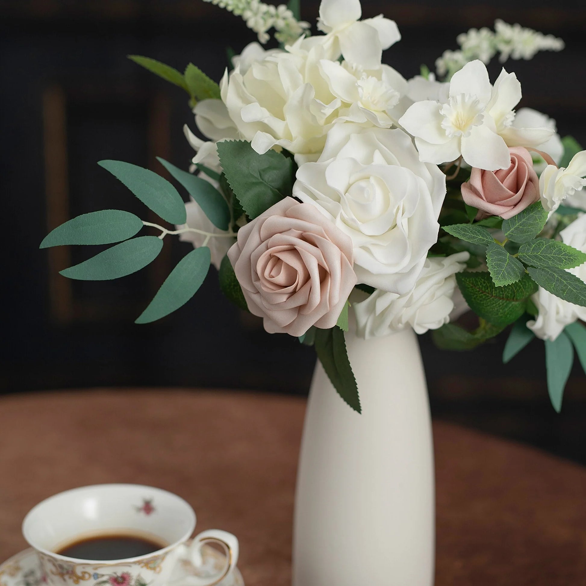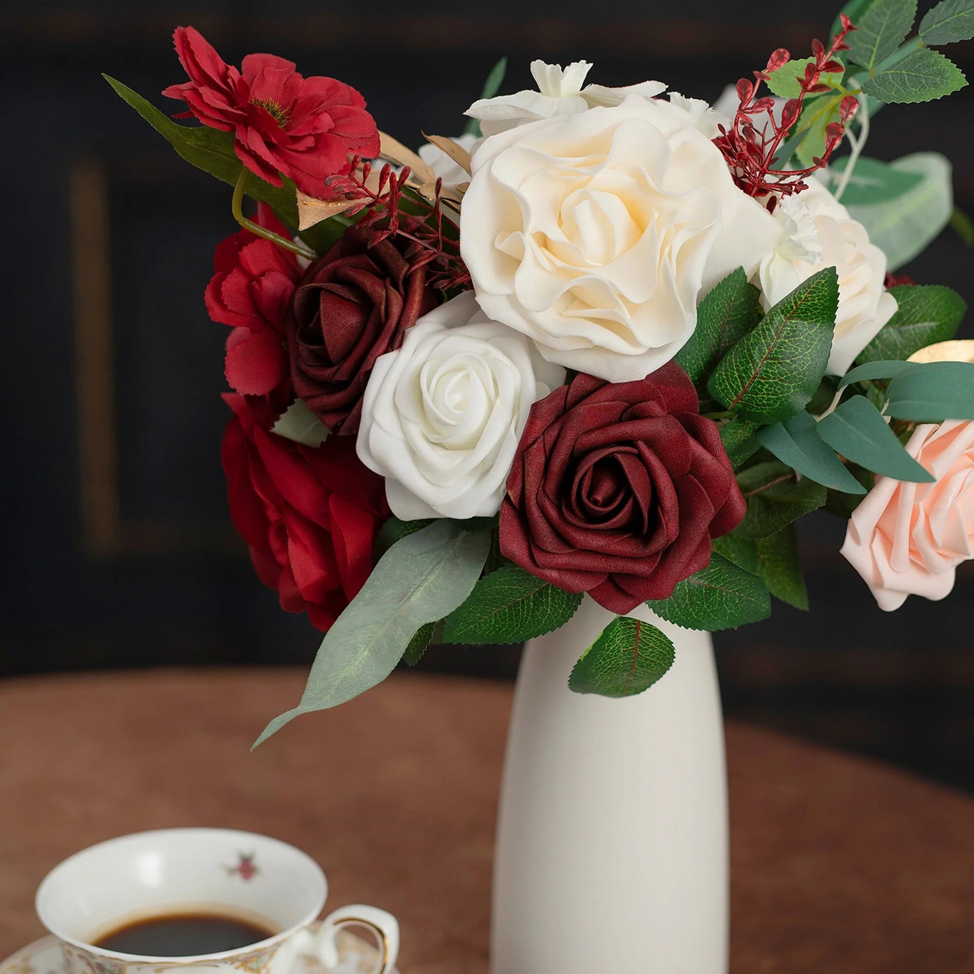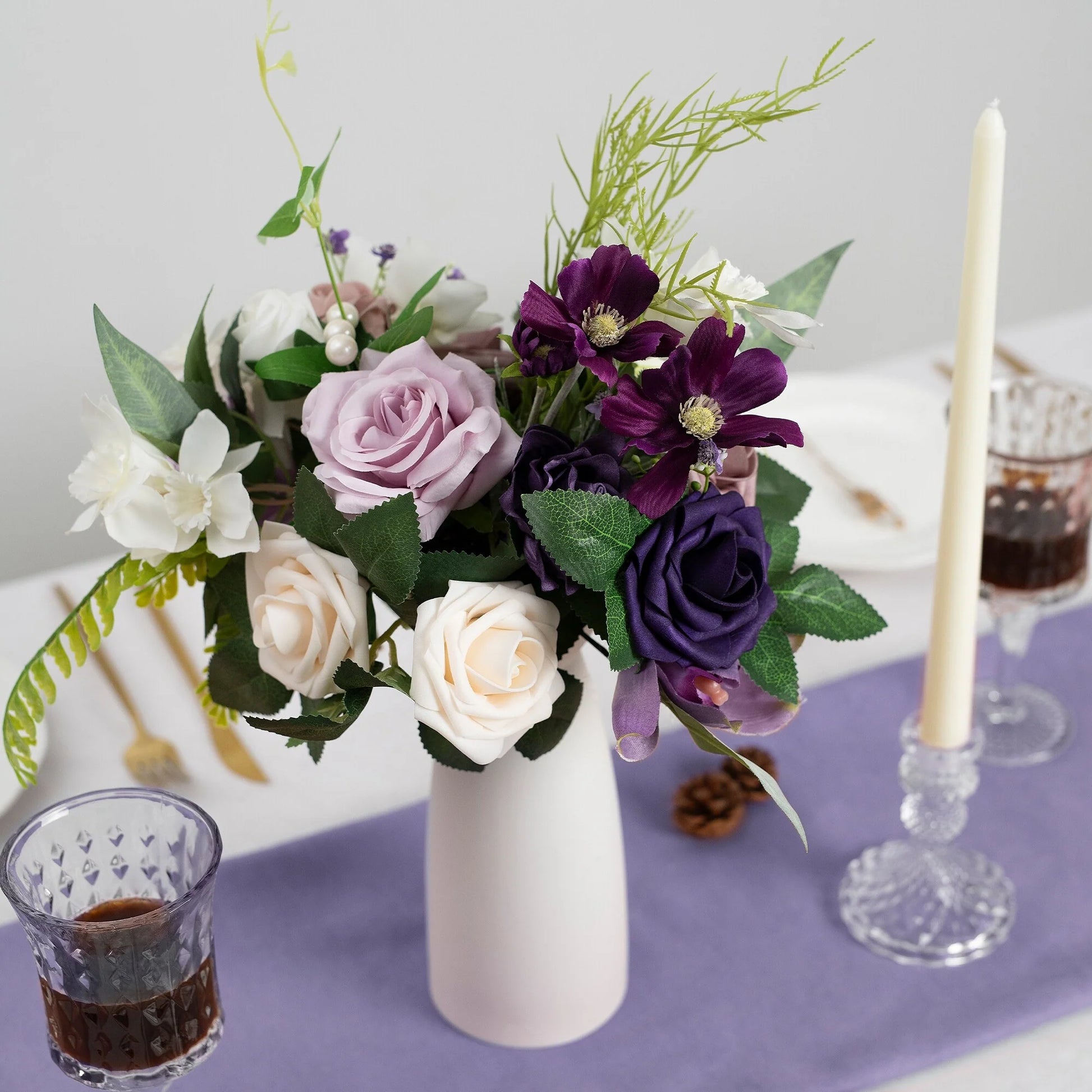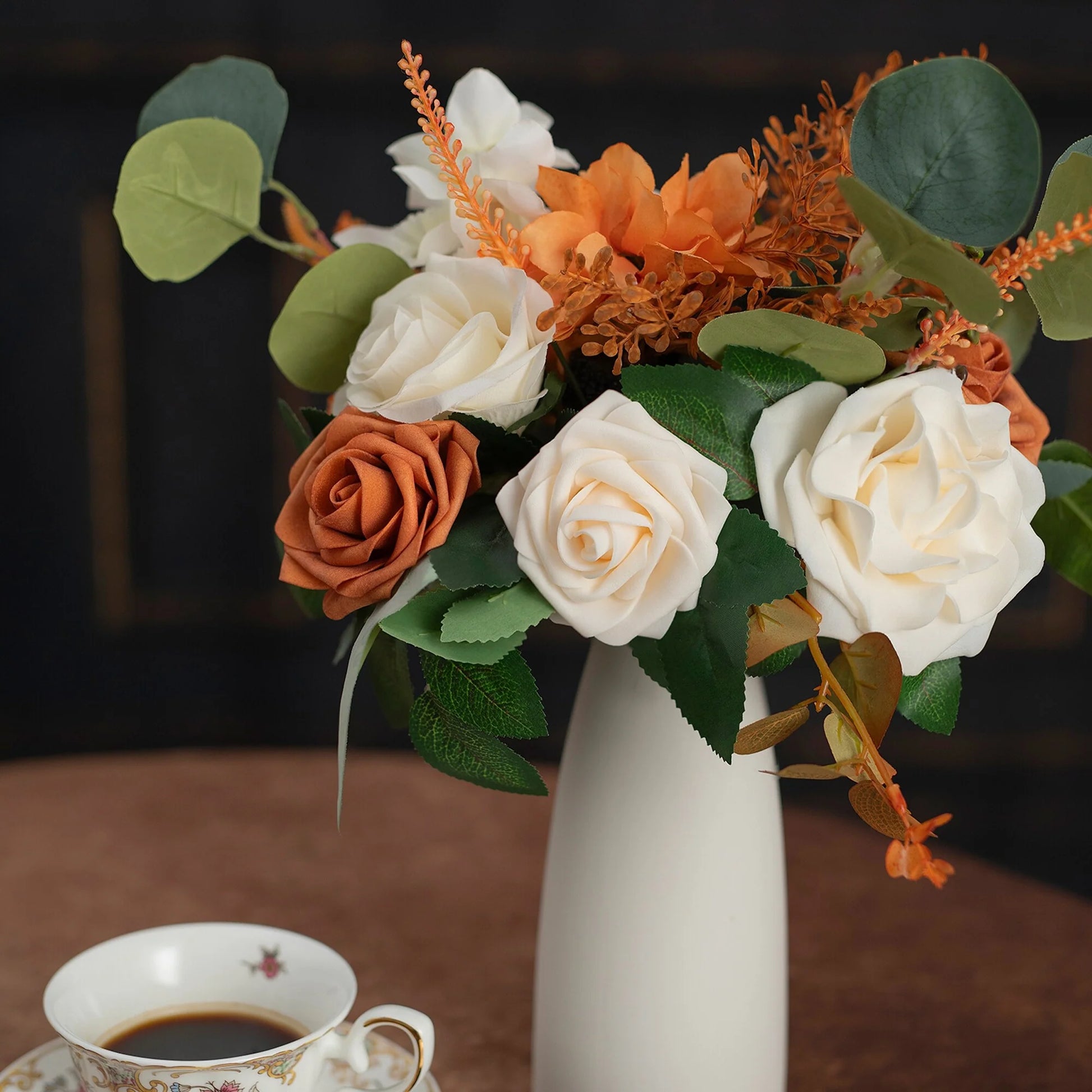 This bouquet is expertly designed using highly realistic foam/silk flowers and lush botanicals, meticulously capturing nature's intricate textures and vibrant hues. Each stem is hand-shaped to emulate the graceful curves and layered elegance of fresh blooms, seamlessly blended with diverse floral varieties and richly textured foliage. Together, they form a timeless botanical masterpiece, ideal for weddings, celebrations, or elevating everyday spaces with enduring, maintenance-free sophistication.