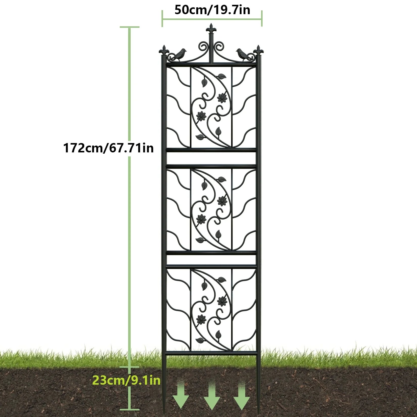 Beautiful metal garden tall trellis. The trellis fencing is built with thicken pipe and welded with thick wires and is an architectural structure that is durable and sturdy.Designed metal fence adorned with classic arch top and scrolls, lovely pattern of birds,leaves and flowers, that add style to yard garden landscaping decorations; Get them and build your dream garden.Pack of 2 garden trellises used as outdoor decoration or support frame for holding climbing plants flower vines, like rose clematis apios morning glory bougainvillea lily honeysuckle or climbing vegetable cucumber chayote hardy kiwi.