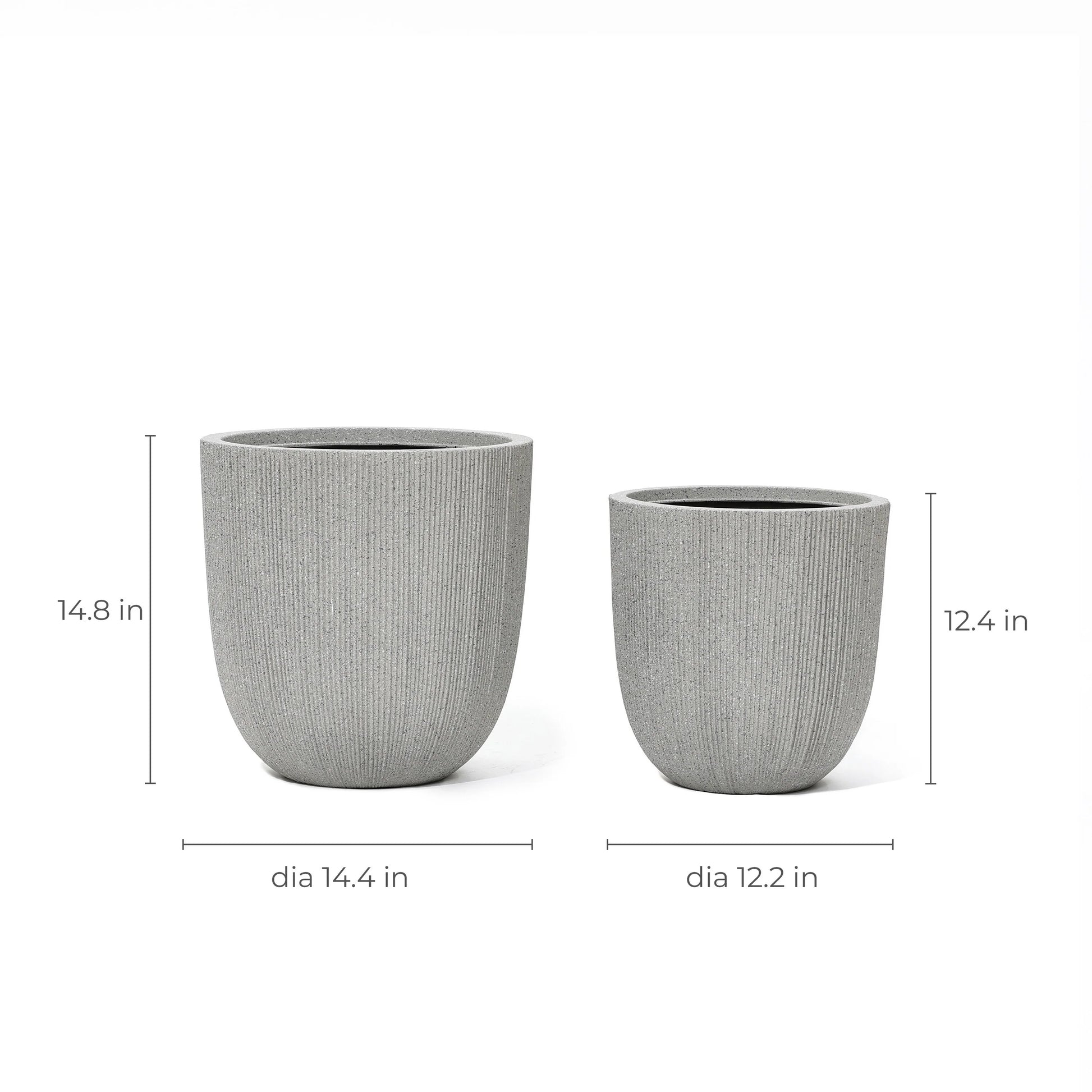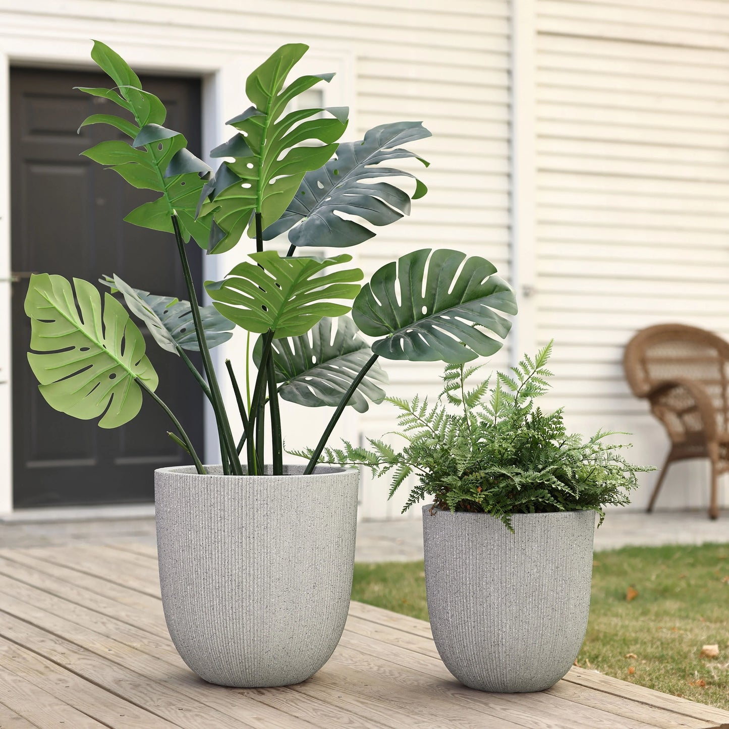 2-Piece Tapered Round Plastic Planters Set, Mediterranean Style