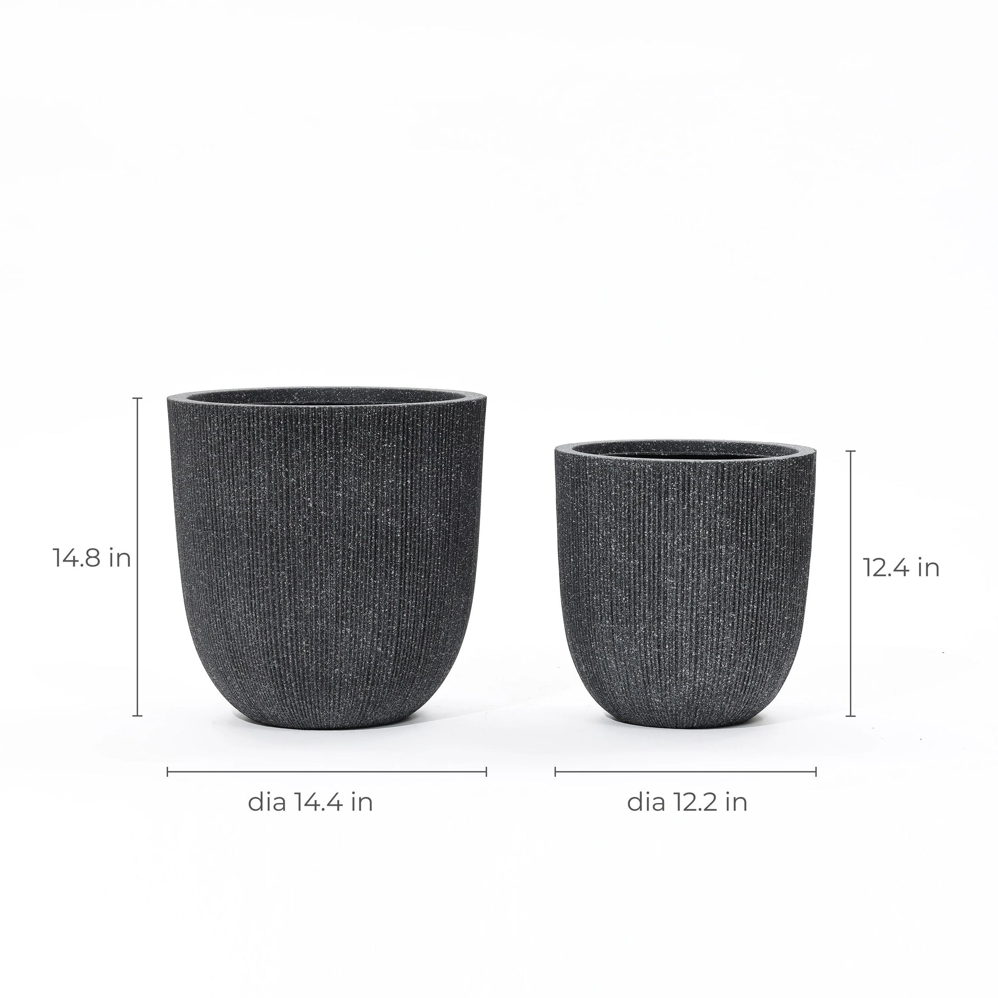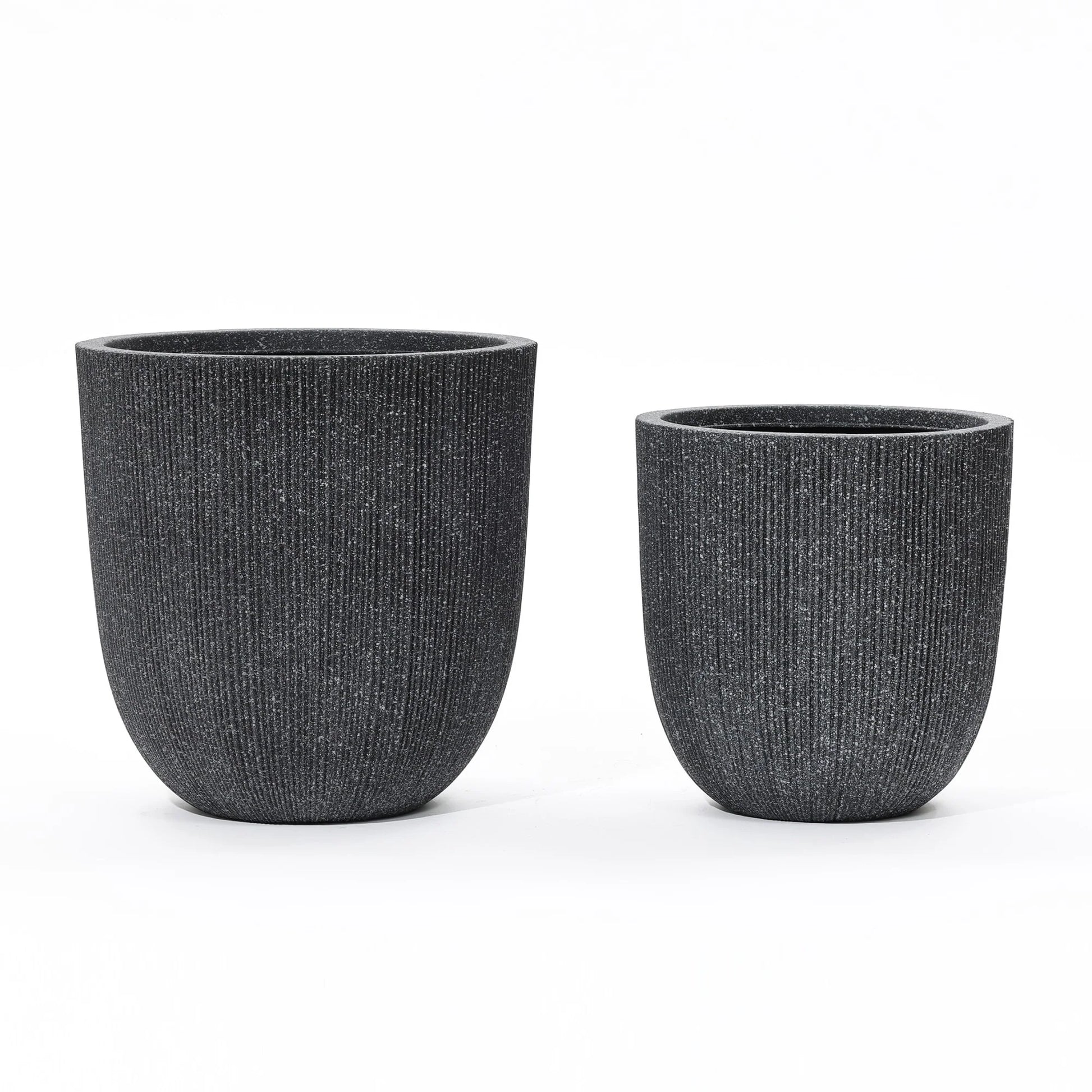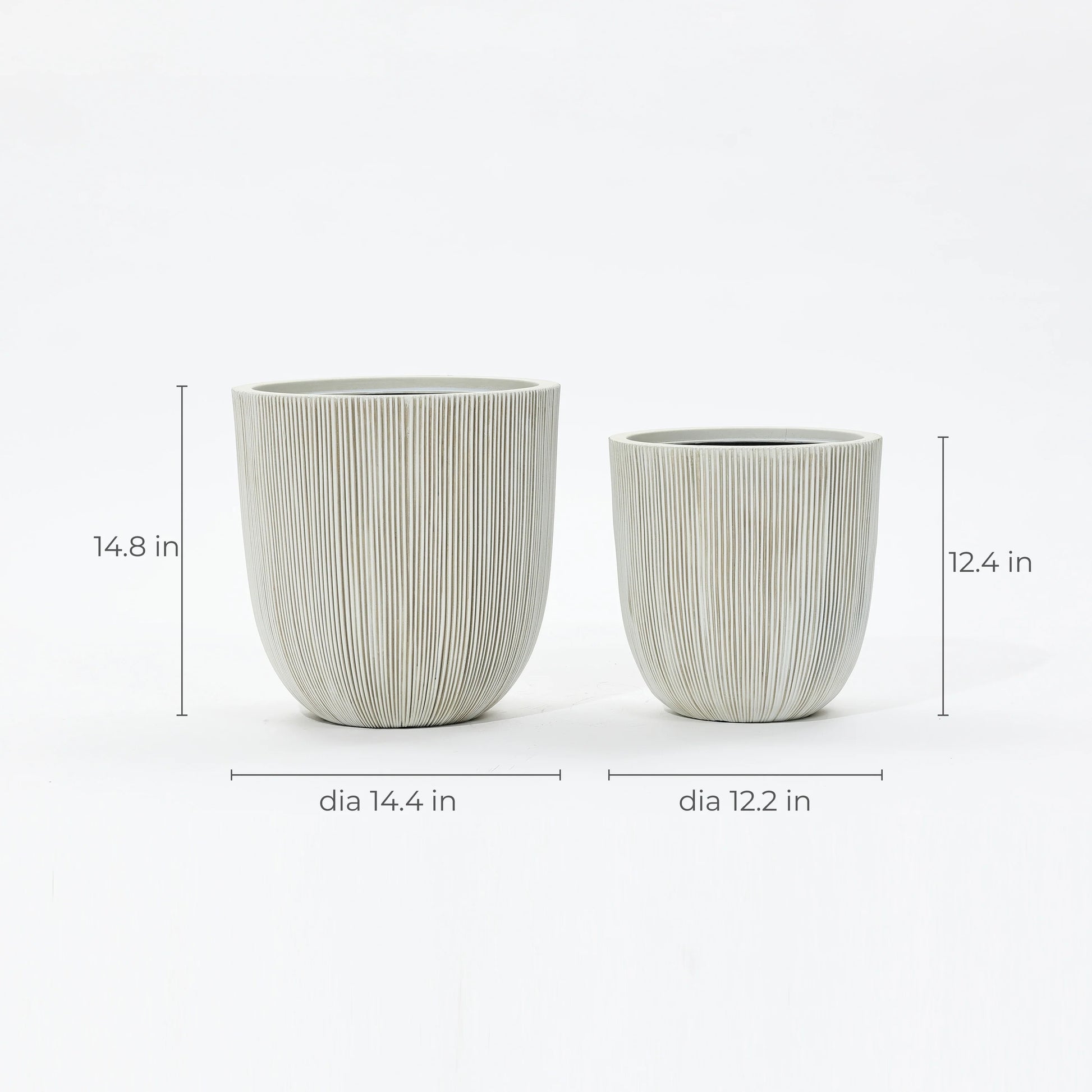Transform your home and garden with the modern striped pattern planters. Made from durable polyethylene material, these planters are perfect for indoor and outdoor use and can withstand even the harshest weather conditions. The concrete-like finish and striped pattern not only add a stylish touch but also make the planters practical. Each planter includes a drainage hole and rubber plug to ensure your plants can breathe easily. The minimalist design of these planters makes them versatile enough to complement various decoration styles, such as contemporary, mid-century, or Mediterranean. Whether you place them on your entrance, patio, porch, or living room, these planters will add a touch of nature to your home. Don't miss out on this opportunity to elevate your space with these elegant and functional planters.