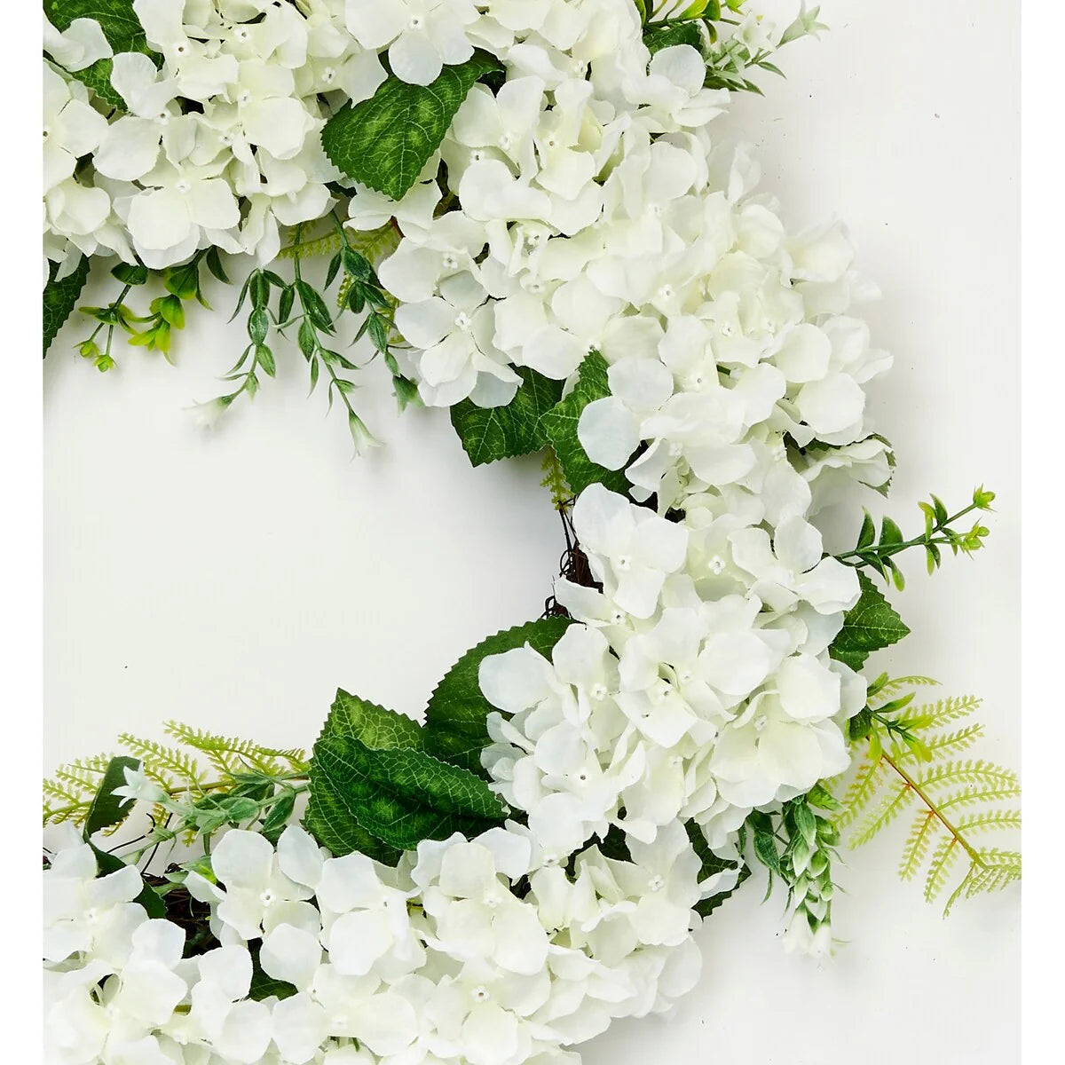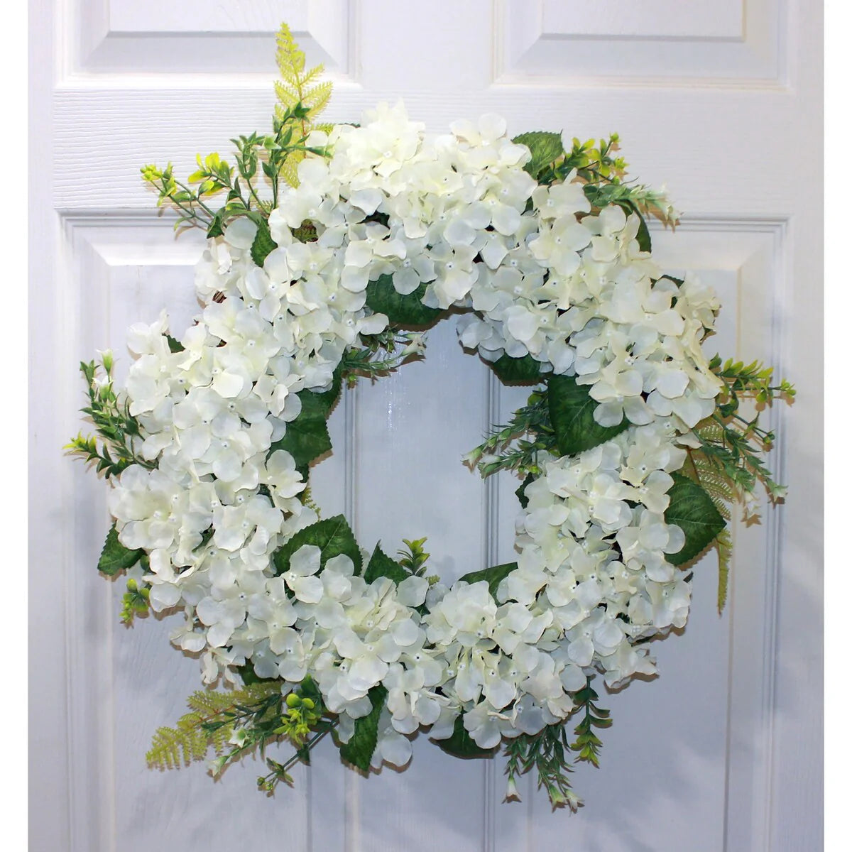 Get ready to be amazed by the stunning 24" Artificial Hydrangea Wreath. It's a real showstopper for your home. This wreath is made with natural twigs, and the flowers, leaves, and fern look so real, you won't believe your eyes. Hang it on your door, above your fireplace, or anywhere you want to add some charm.