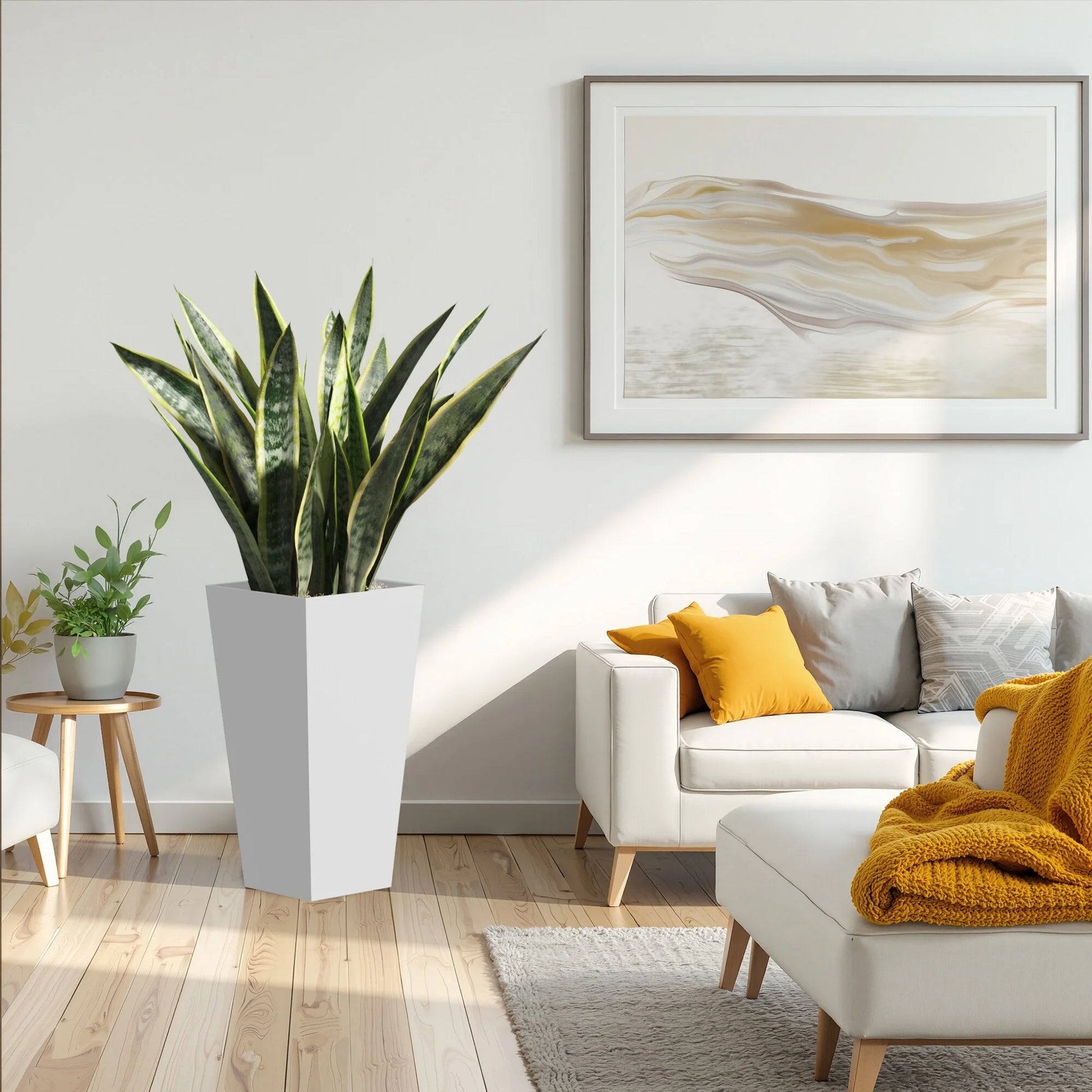 The 25" H Tall Tapered Planter is a striking addition to any home or patio decor. Its burnished white finish adds a touch of elegance while complementing various interior and exterior styles, making it a perfect focal point in any setting.