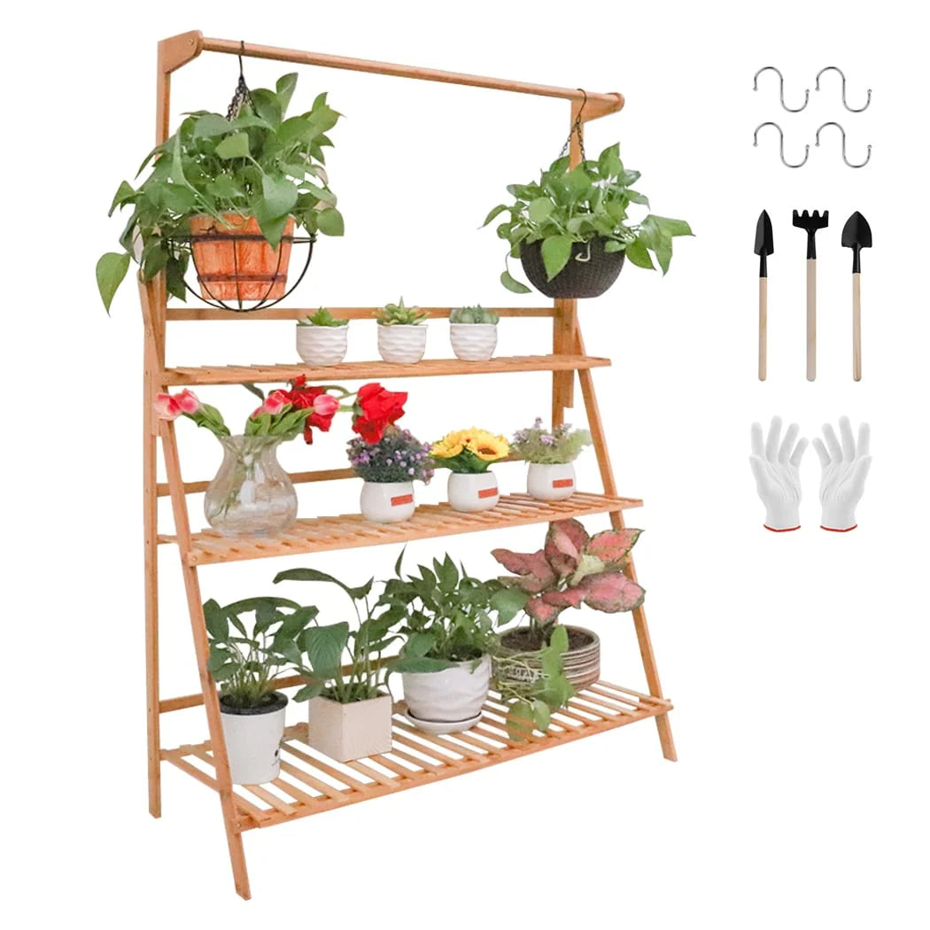 3 Tier Bamboo Hanging Plant Stand Ladder Flower Rack Hanging Baskets