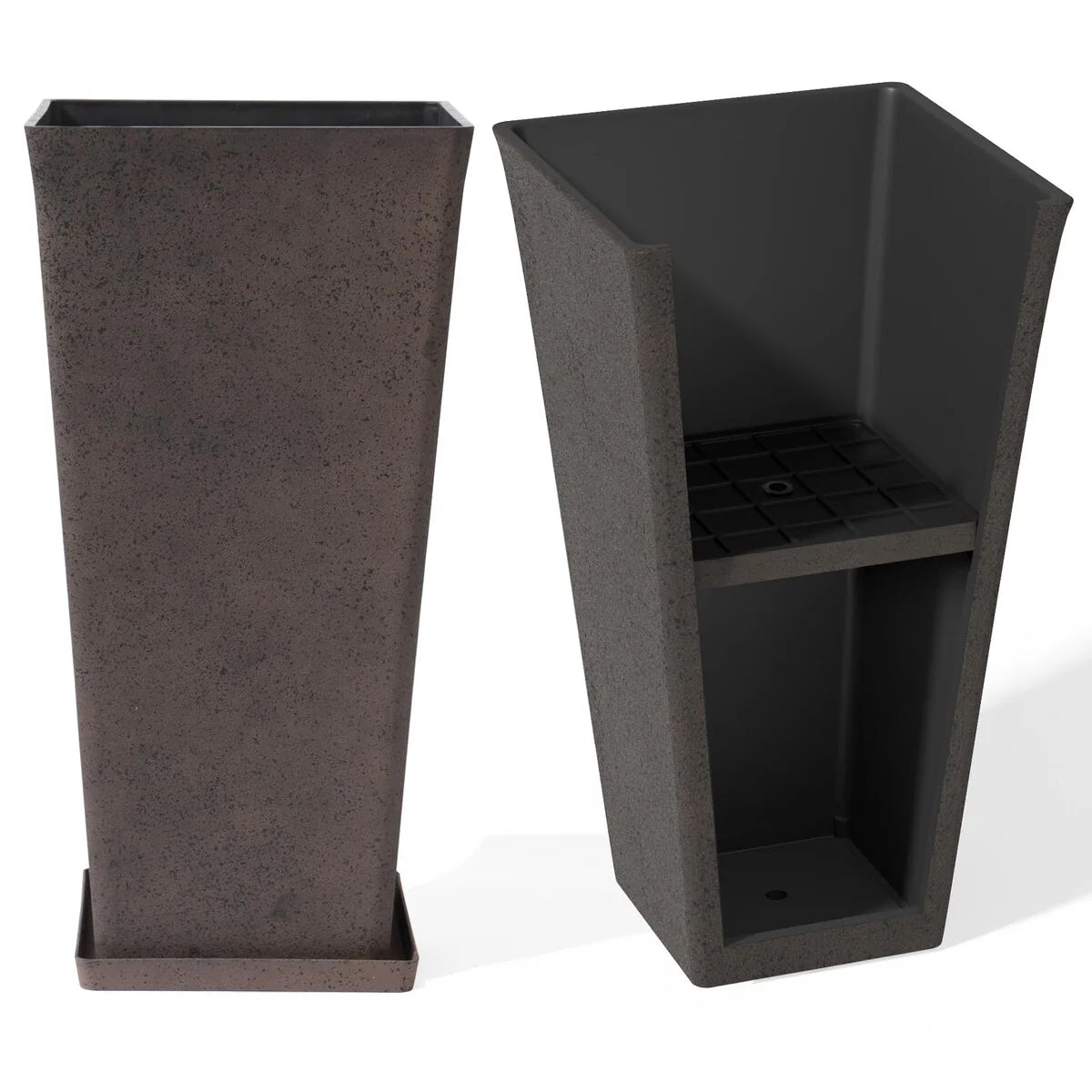 ENORMOUS TALL PLANTER - This spacious set of 2 outdoor planters gives you extra creative freedom for your different gardening needs. Your ferns, pothos, ivy, fiddle, or ficus trees will thrive in these big planters. Place them on the entrance, on your patio, porch, garden, or yard to add a sense of nature to your home. Size:15"(Upper D) x 30"(H). Soil Capacity: 19 gallons per planter. (Plants are not included)