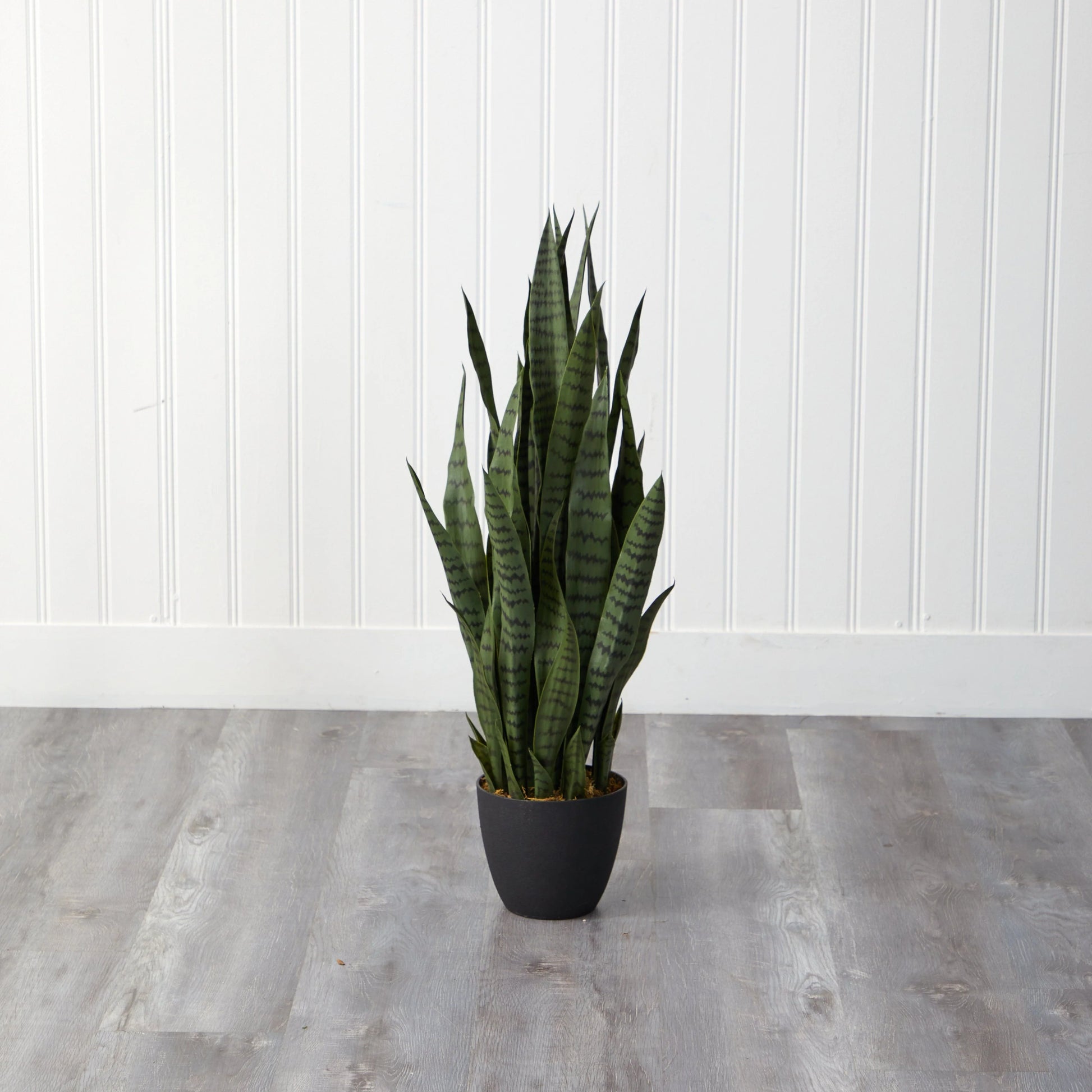 Add to your home decor with this 38-inch Sansevieria artificial plant. The straight-edged, upright leaves with dark green stripes turn this artificial plant into lifelike greenery, and moss accents add a touch of realism. A dark, sturdy base supports this decorative accessory, which is suitable for indoor use.