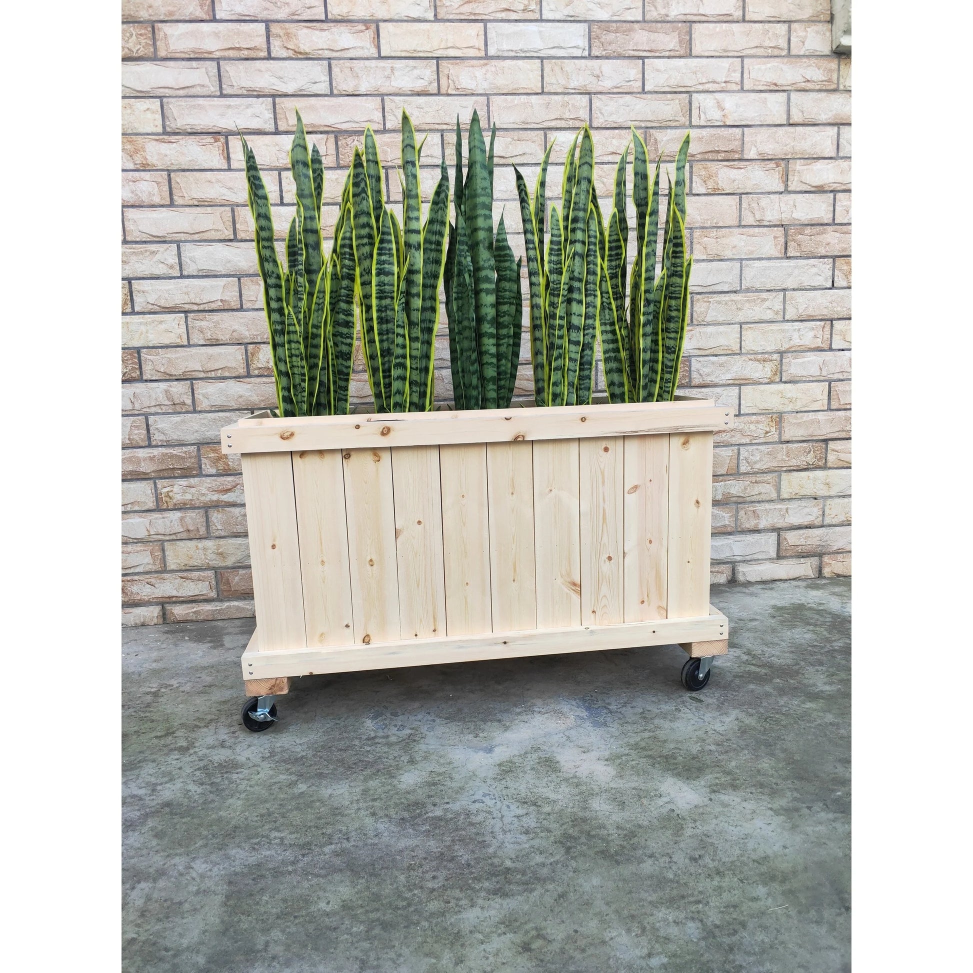 45inx25inx14in Solid Wood Rolling Planter Barrier