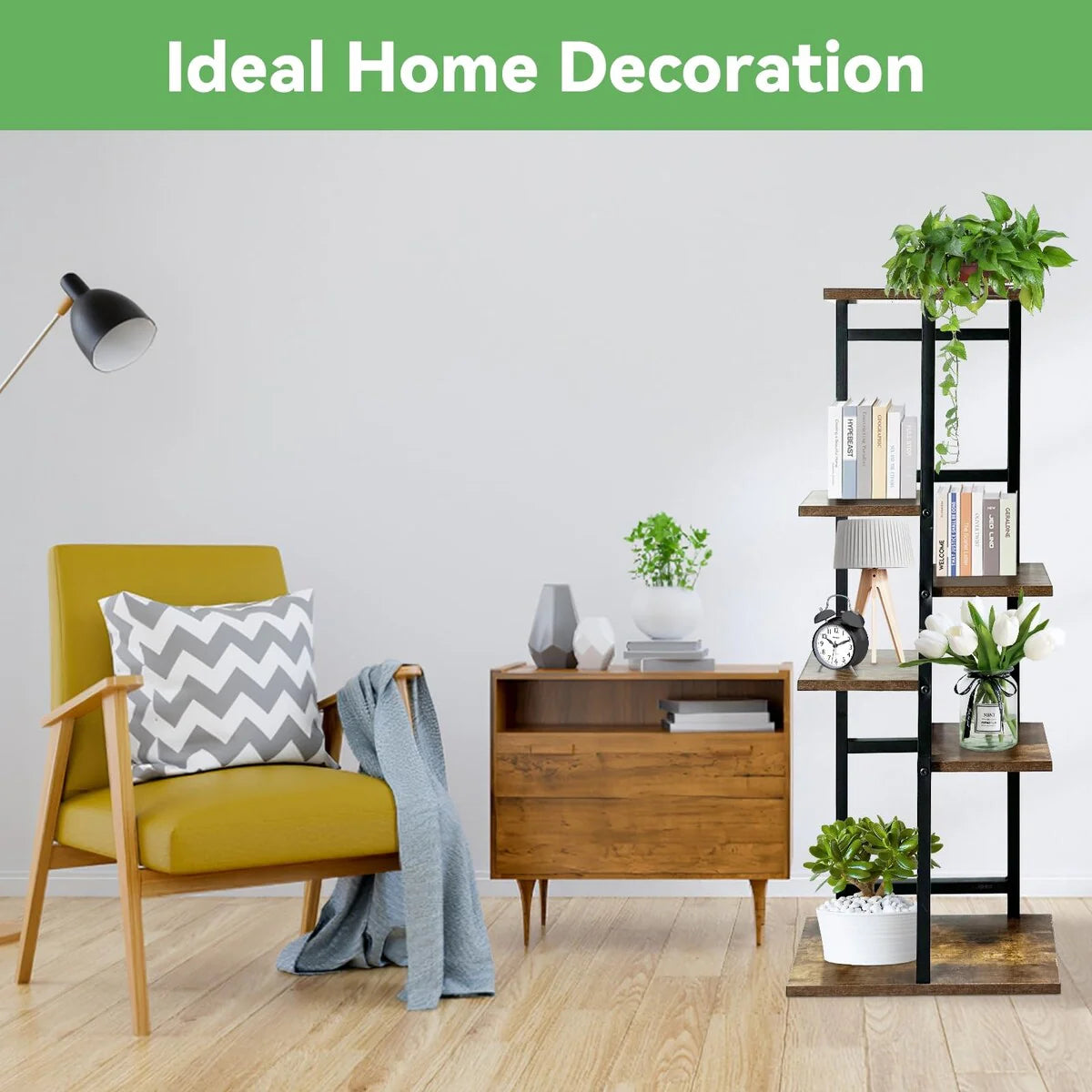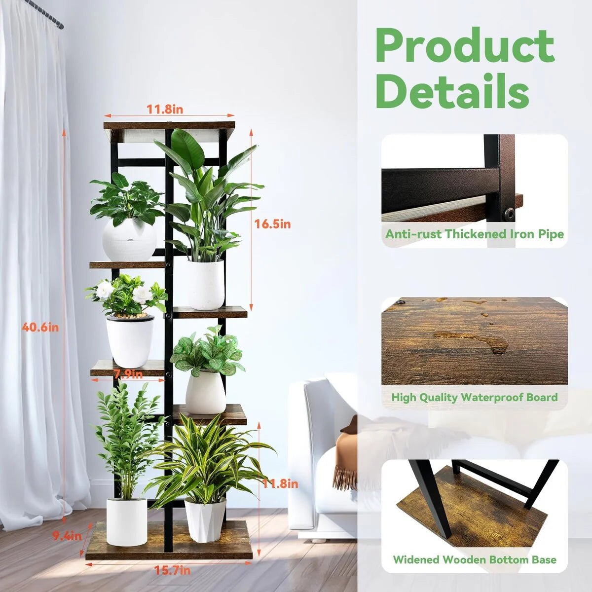 This wooden potted plant display shelves was made of natural wood with black metal frame,natural color flower pot bottom frame and measuring 15.7*9.4*40.6, this simple yet practical stand allows plants to get more sunlight and grow better without shielding each other. With 6 tiers, you can display multiple plants and other decorative items.
