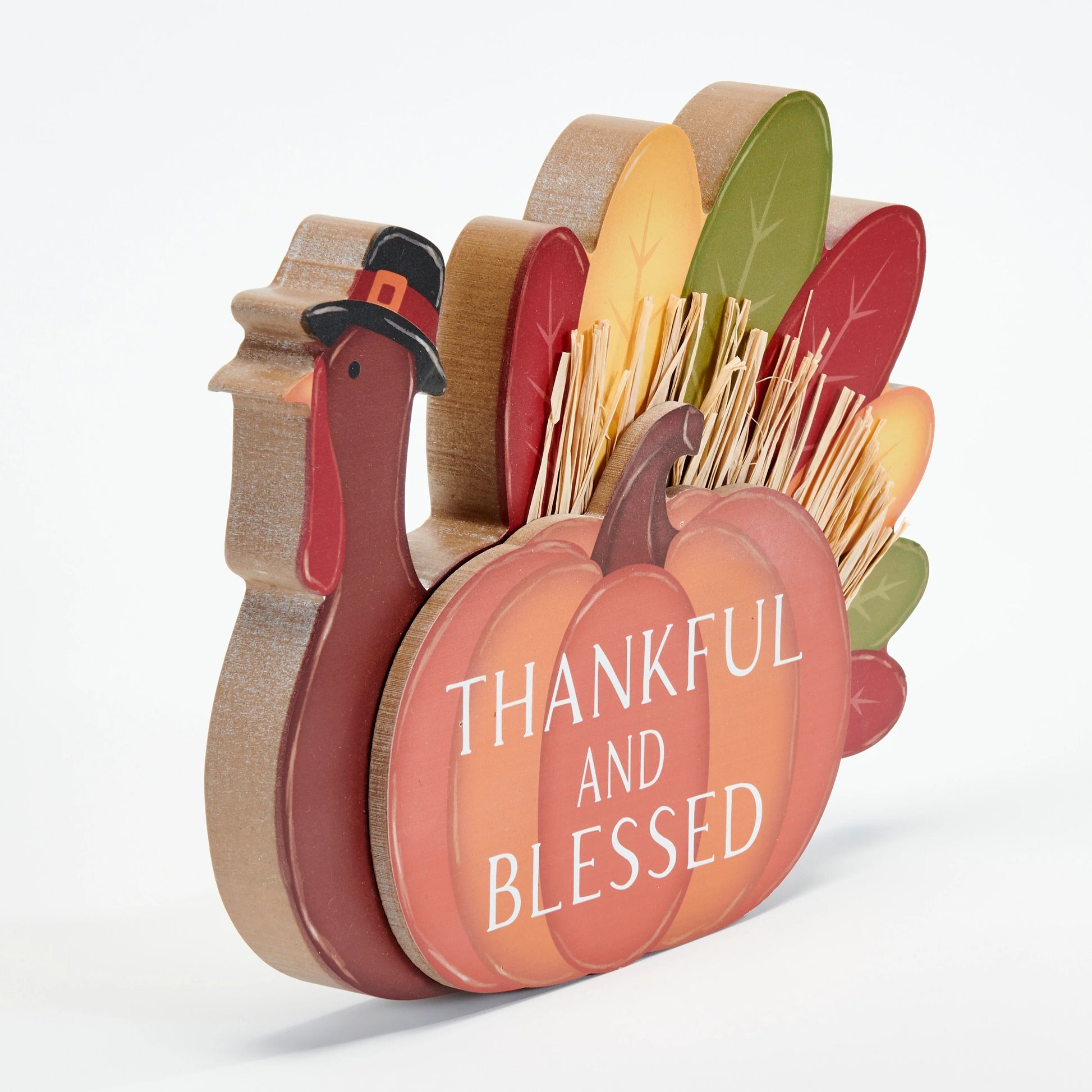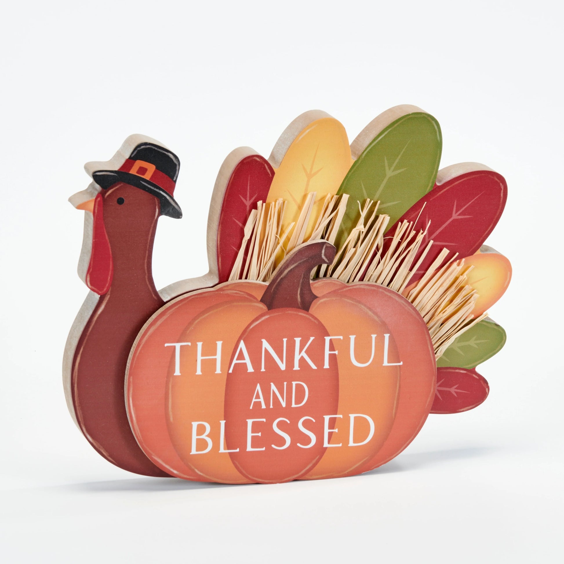 8.5" Tabletop Wood Thanksgiving Turkey Decoration And Centerpiece - 8.5