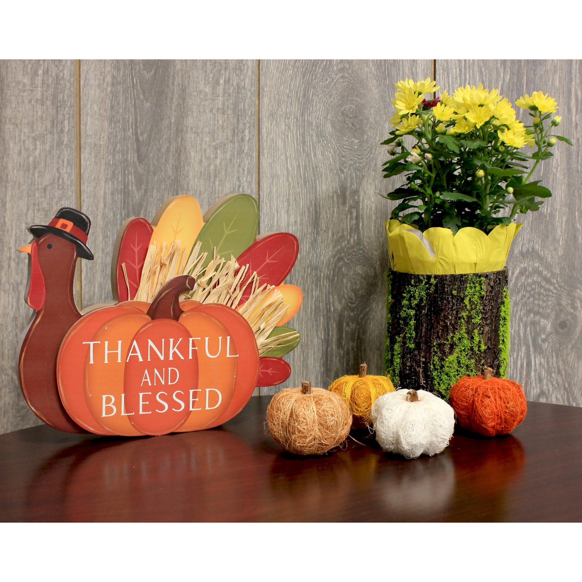 Add a festive touch to your Thanksgiving decor with this charming 8.5" Tabletop Wooden Turkey. Featuring a 3D pumpkin attachment design and detailed with straw, this delightful turkey decoration brings warmth and character to any tabletop or mantel. Perfect for adding a rustic vibe to your Thanksgiving celebrations, it embodies the spirit of the season. Whether you're hosting a family gathering or simply decorating your home, our tabletop wooden turkey is sure to be a conversation starter.