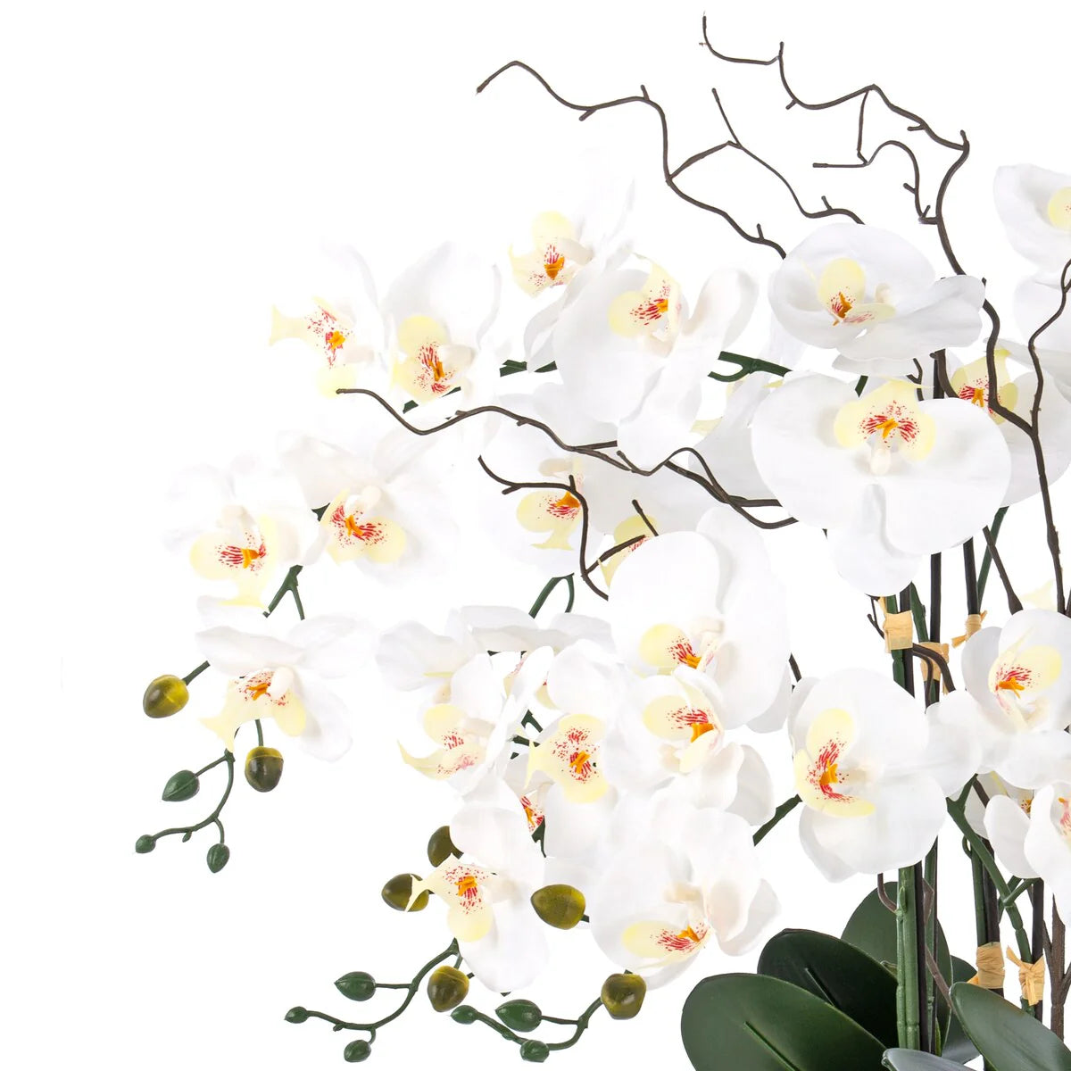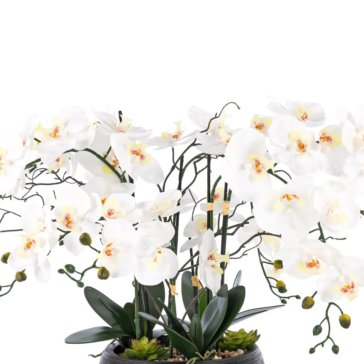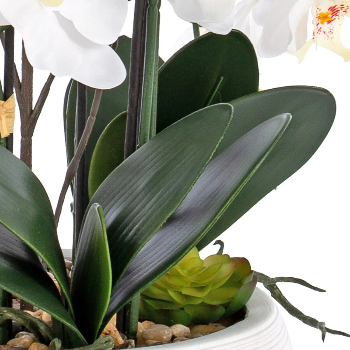 9 Stems Nearly Natural White Phalaenopsis Orchids with Succulents in White Magnesium Oxide Pot - 36.22" H x 35.43" W x 35.43" D
