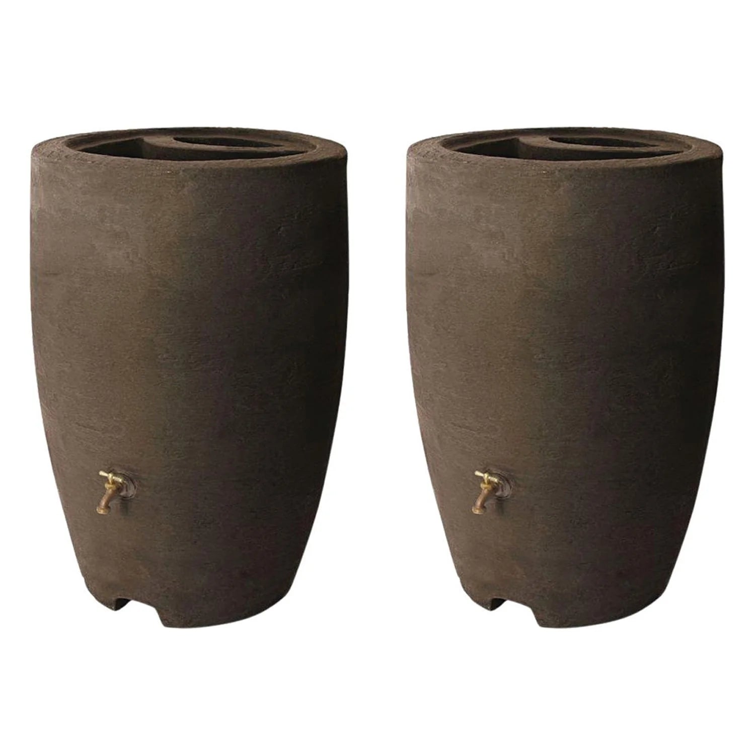 Algreen Athena 50 Gallon Plastic Rain Water Collection Drum Barrel (2 Pack) - 19