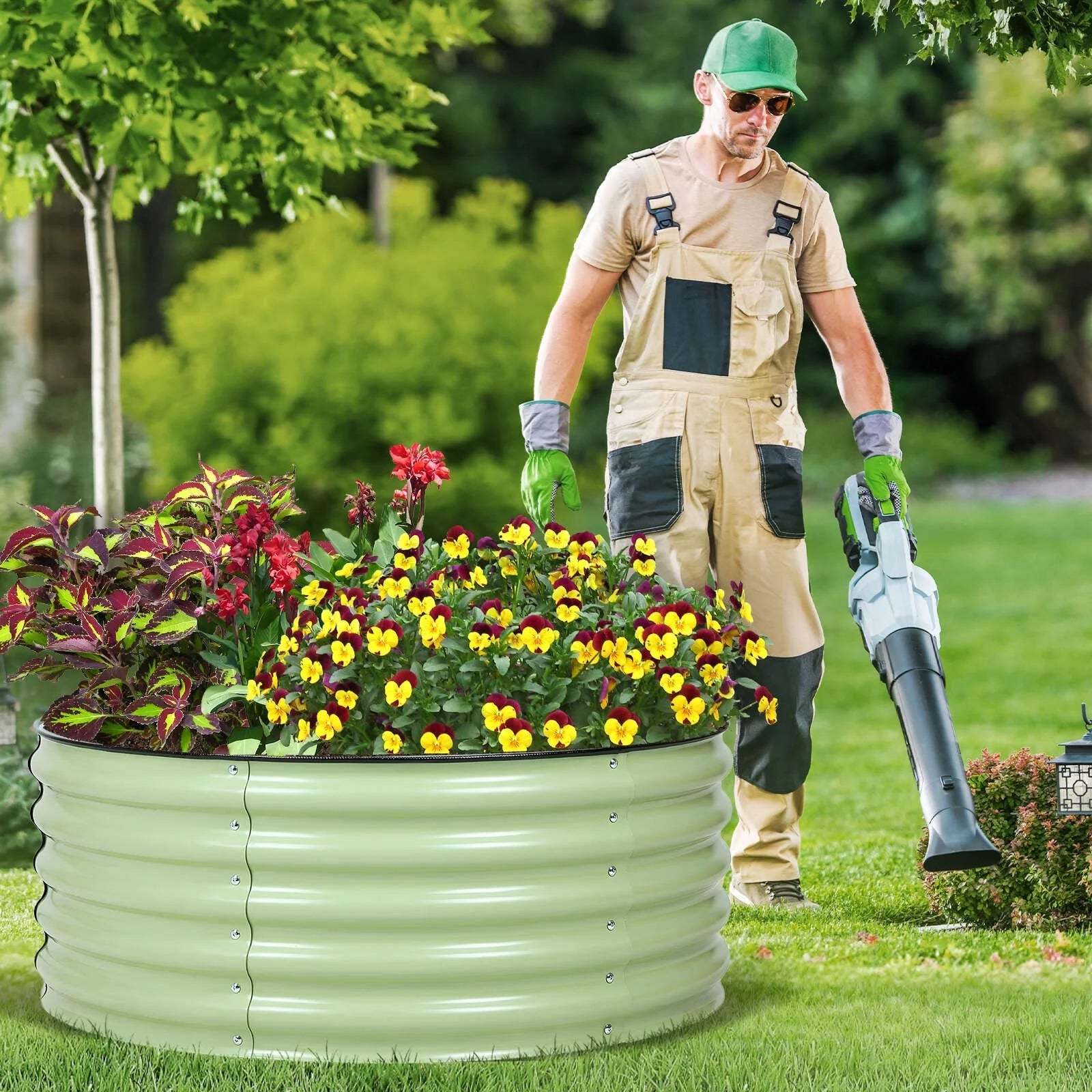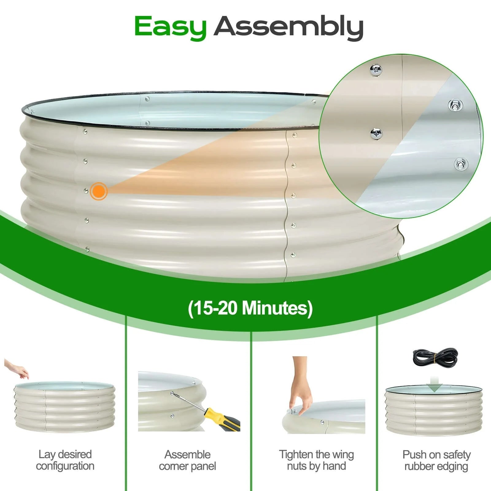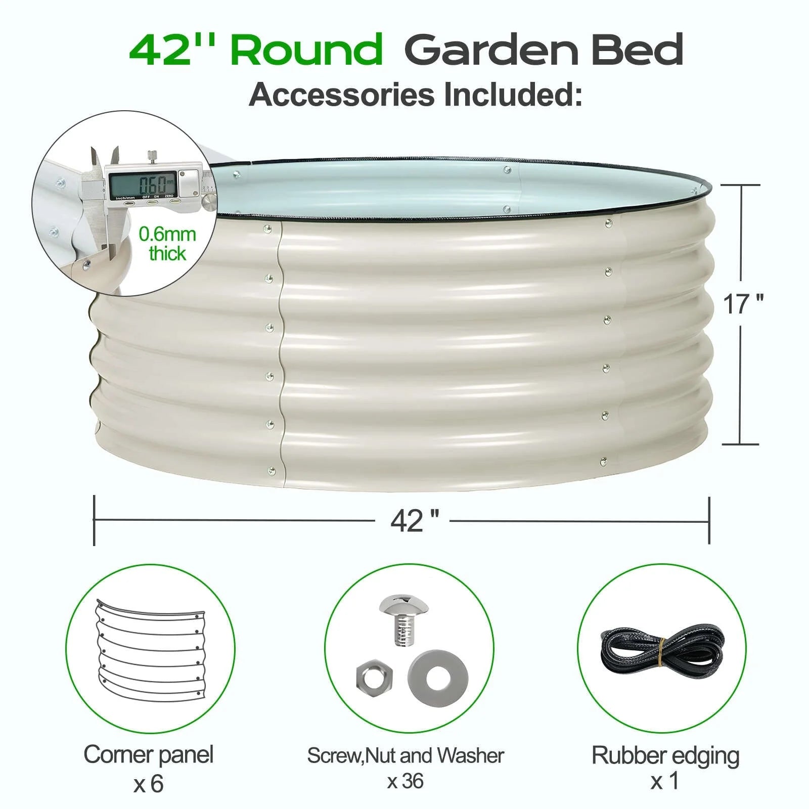 Aoodor 17'' Tall Aluzinc Metal Raised Garden Bed 42'' Round - Outdoor Open-Ended Base Garden Planter Box - N/A