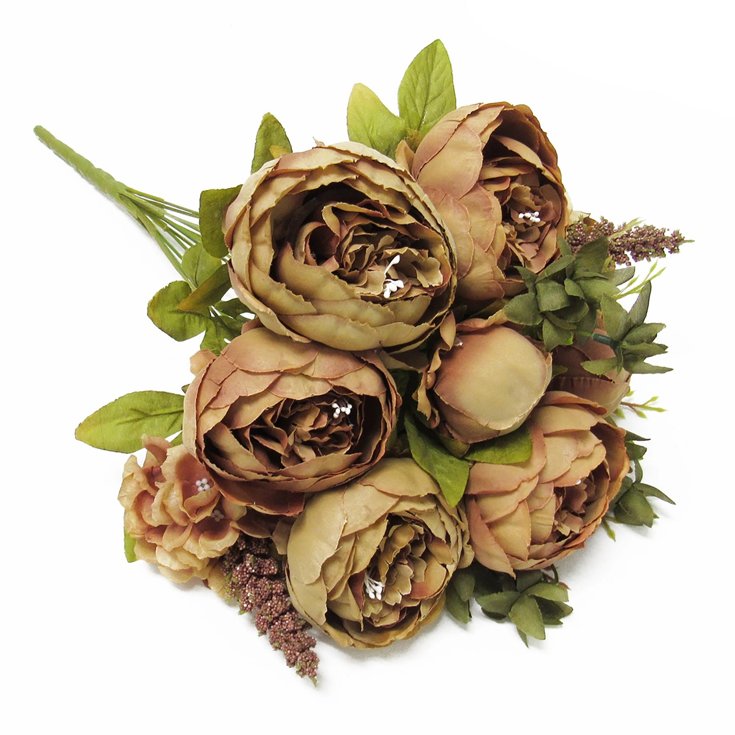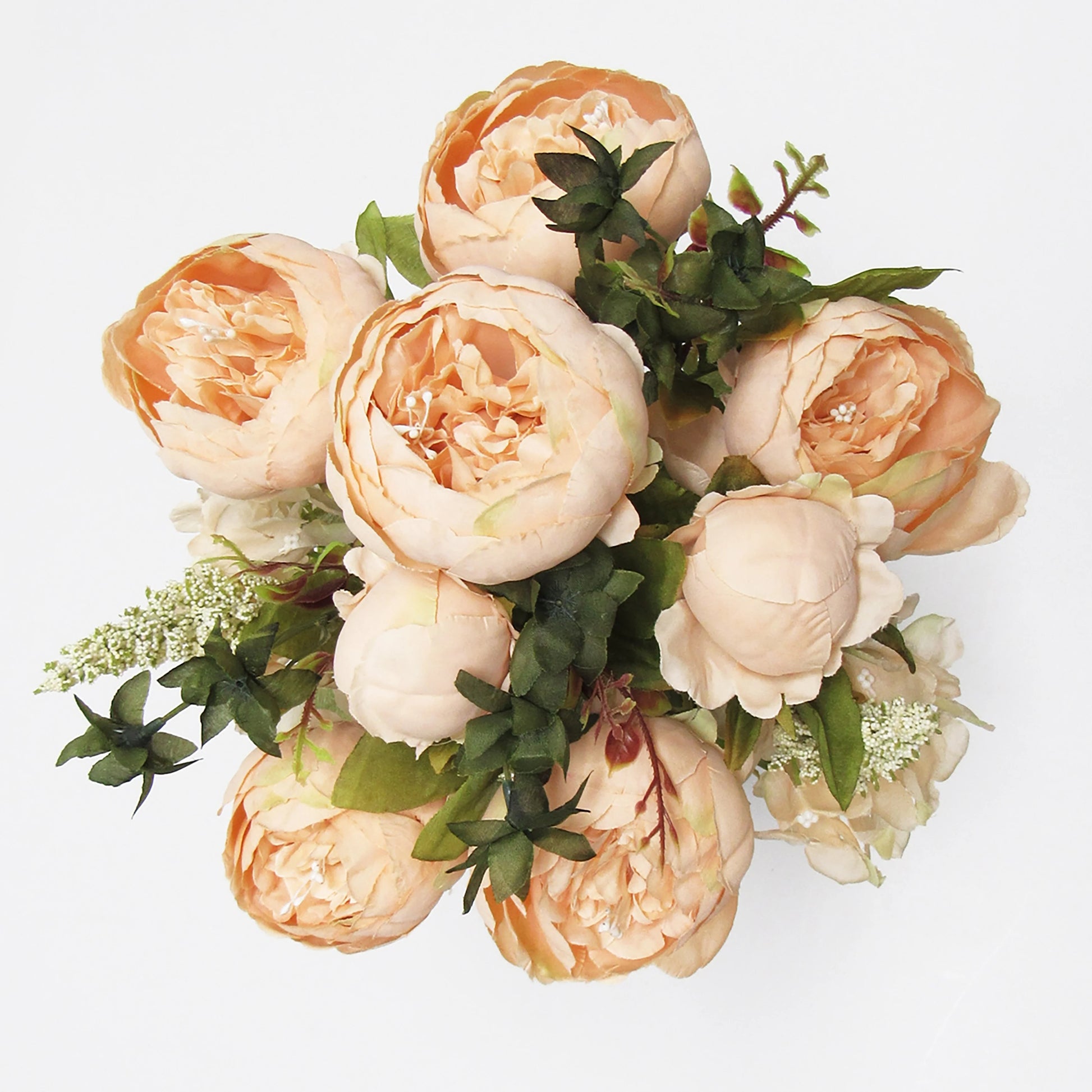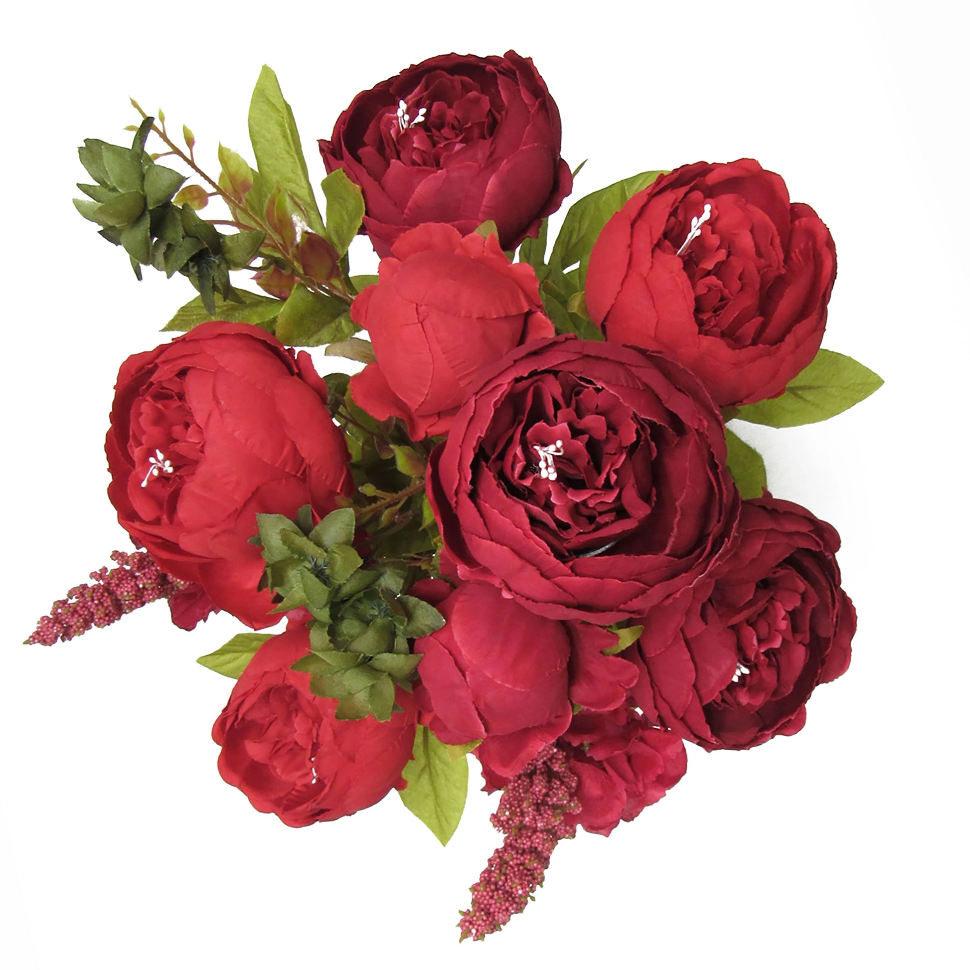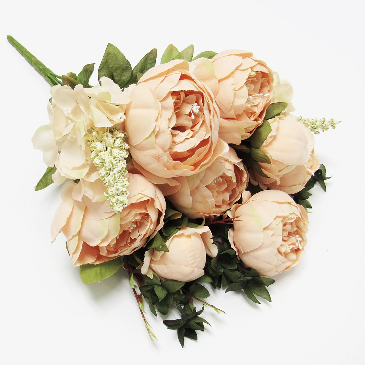 Bring the beauty of nature indoors with these stunning artificial flower stem bouquet bushes. With a mix of open full bloom peonies, peony buds, hydrangeas, filler flowers, and leaves, this bouquet exudes a natural and lively feel. Perfect for adding a touch of floral elegance to any space, without the need for daily maintenance. Each faux flower stem or bundle offers a practical alternative to fresh flowers and can easily be incorporated into flower arrangements, displays, or simply placed in a vase for a charming floral accent. The bendable wired stems allow for easy shaping, bending, and crafting, making it ideal for a variety of uses such as flower arrangements, bouquets, centerpieces, decorative accents, backdrops, crafts, boutonnieres, corsages, cake flowers, and more.