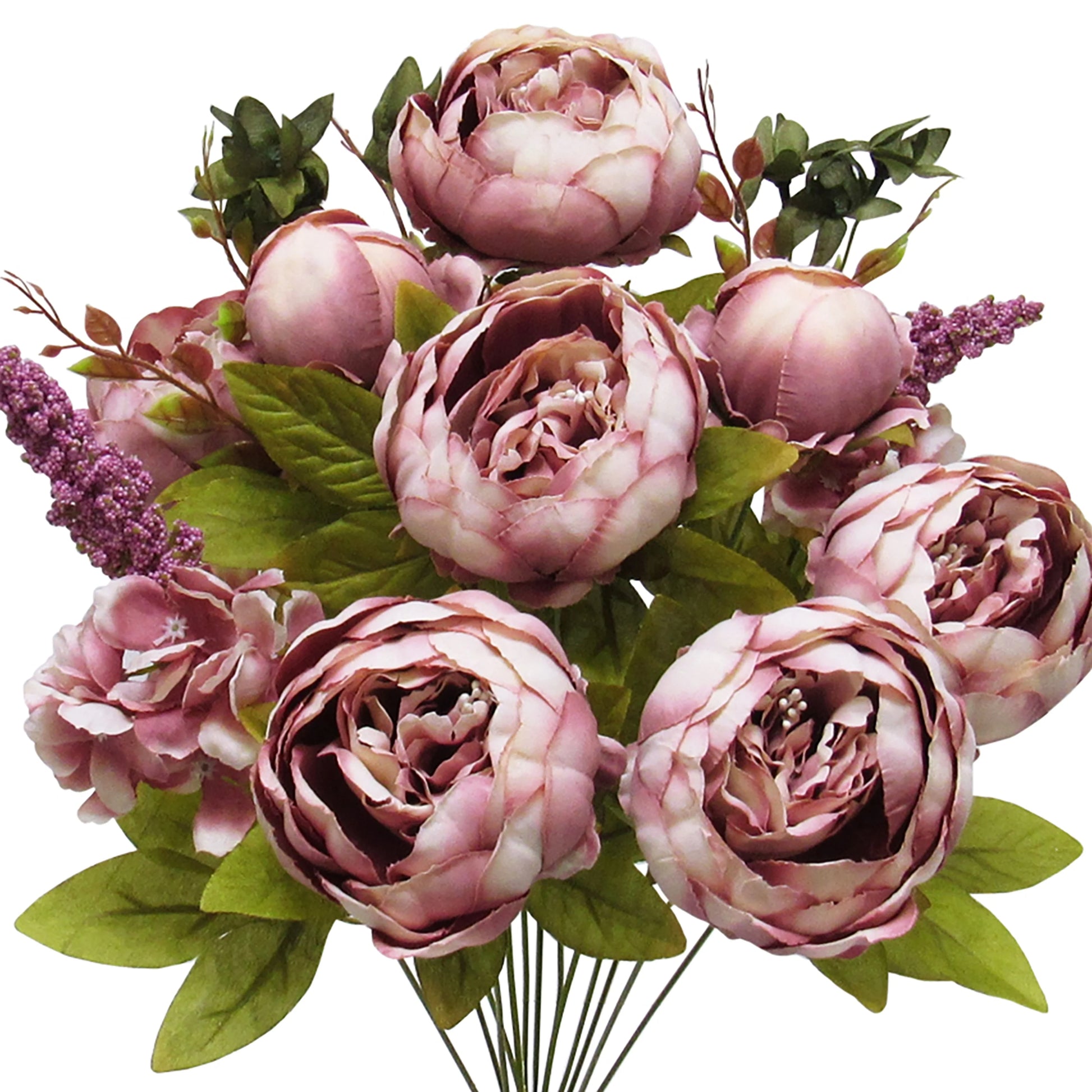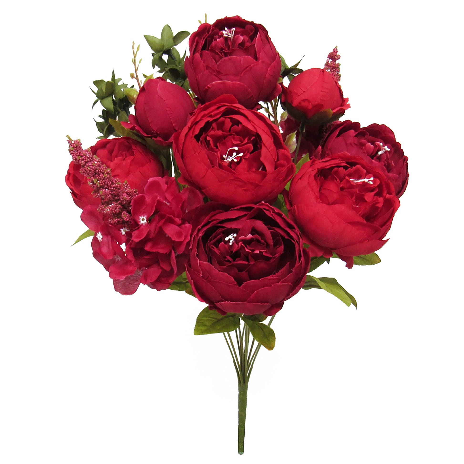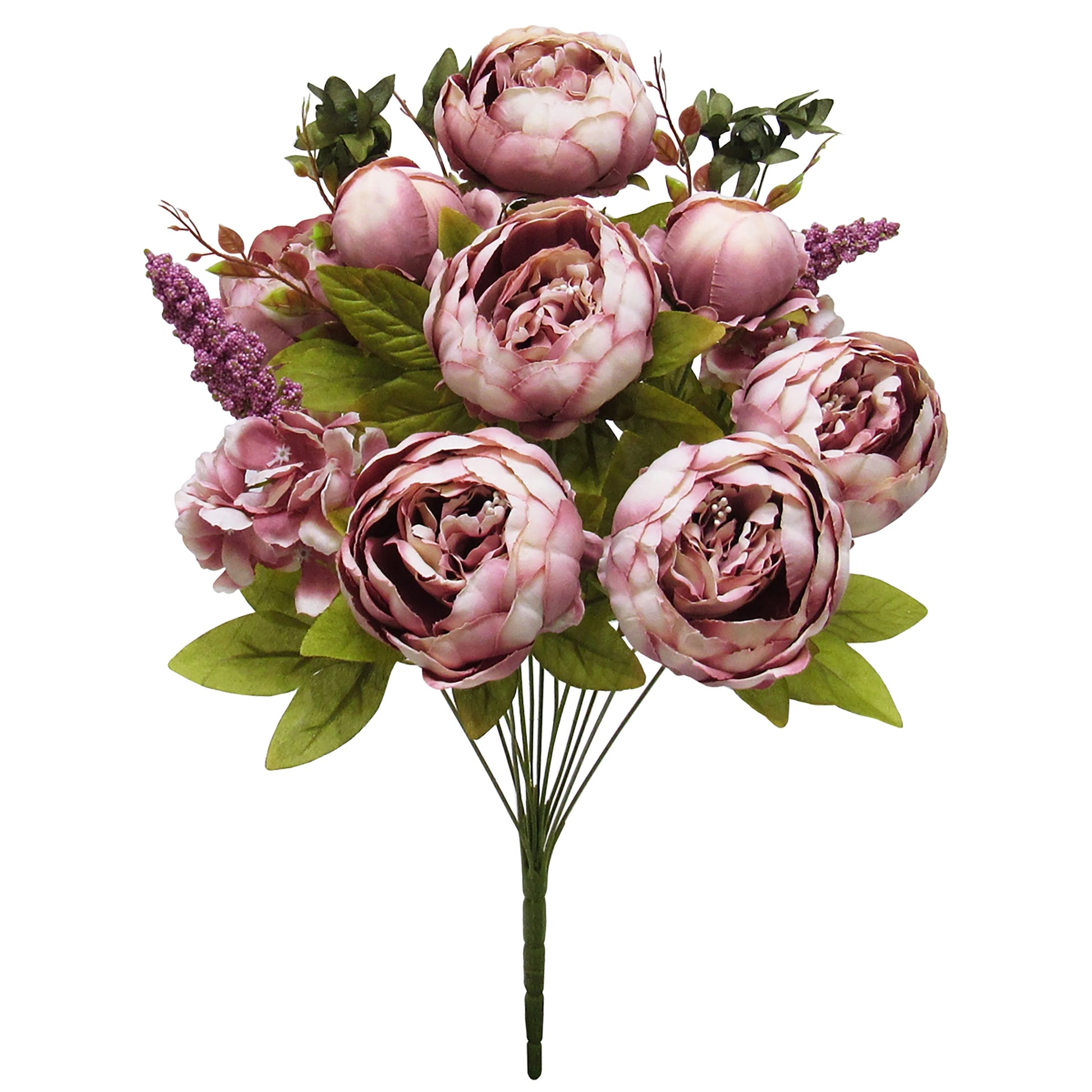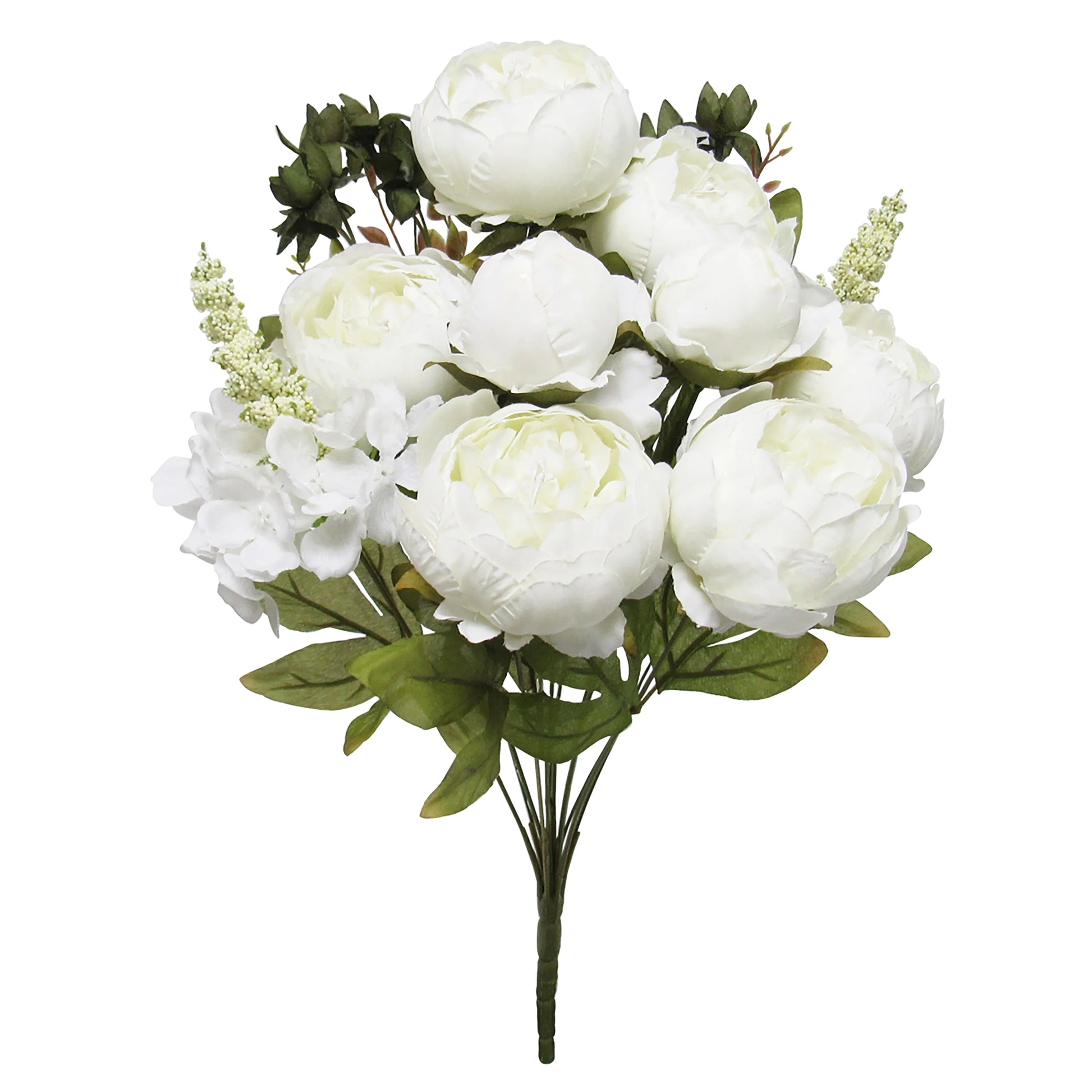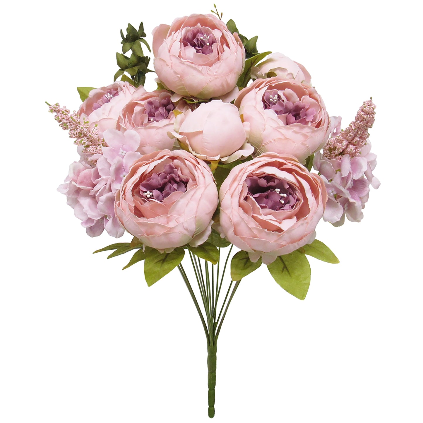 Artificial Mixed Peony Hydrangea Flower Stem Bush Bouquet 19in