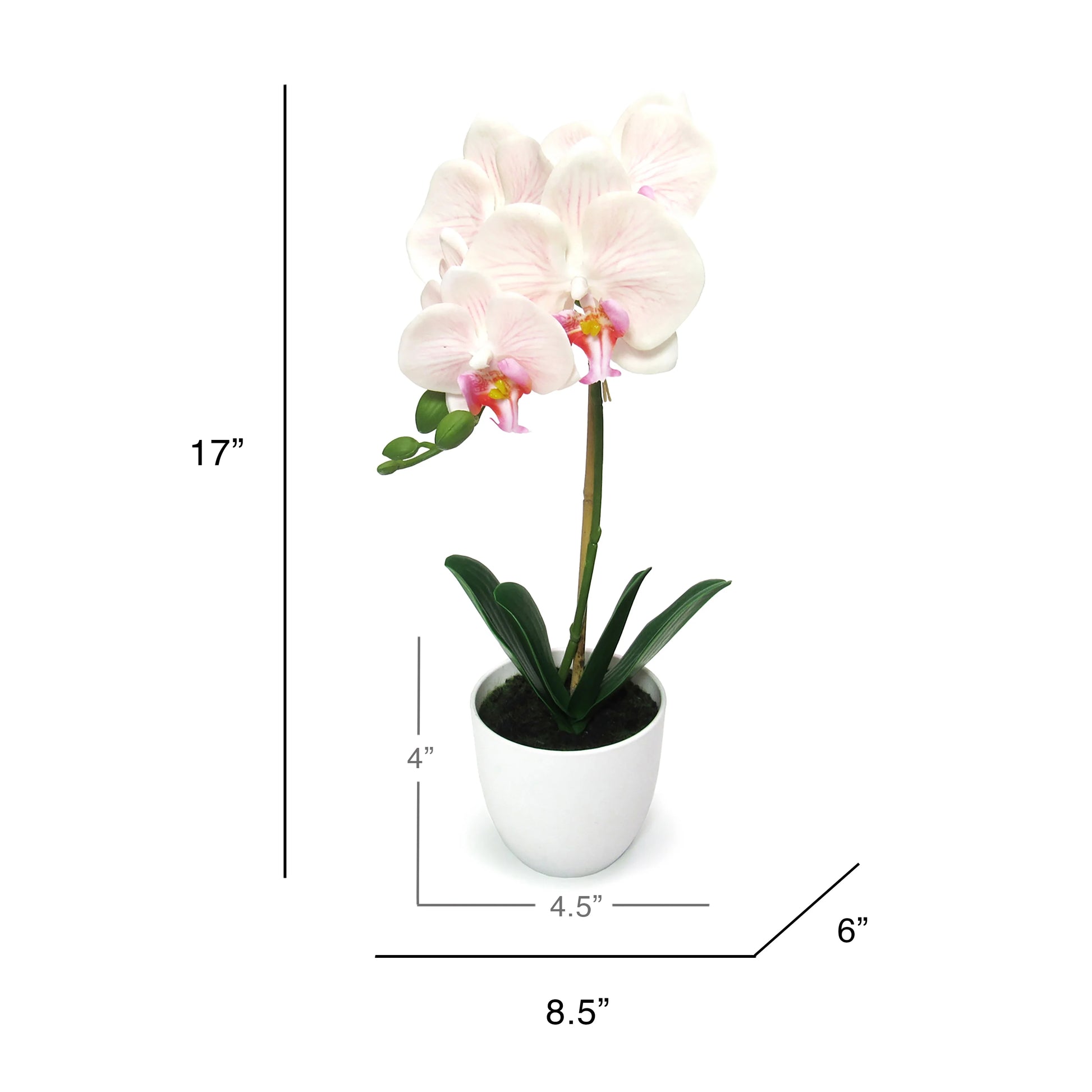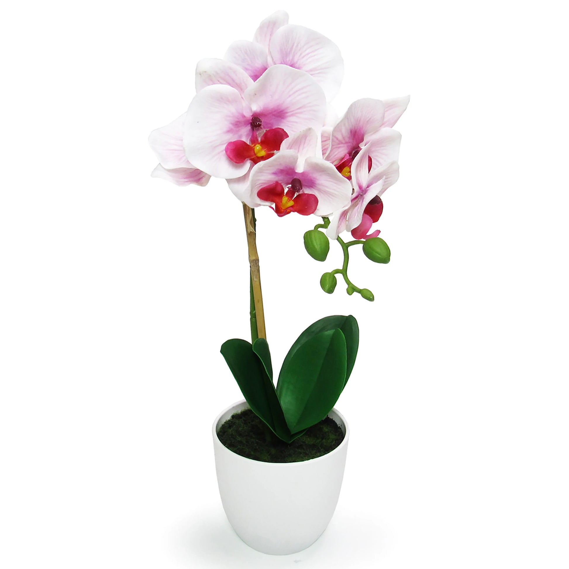 Artificial Phalaenopsis Orchid Flower Arrangement in White Pot 17in