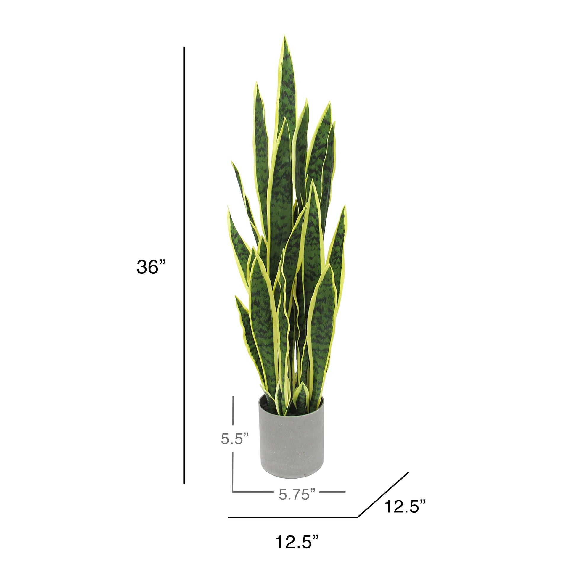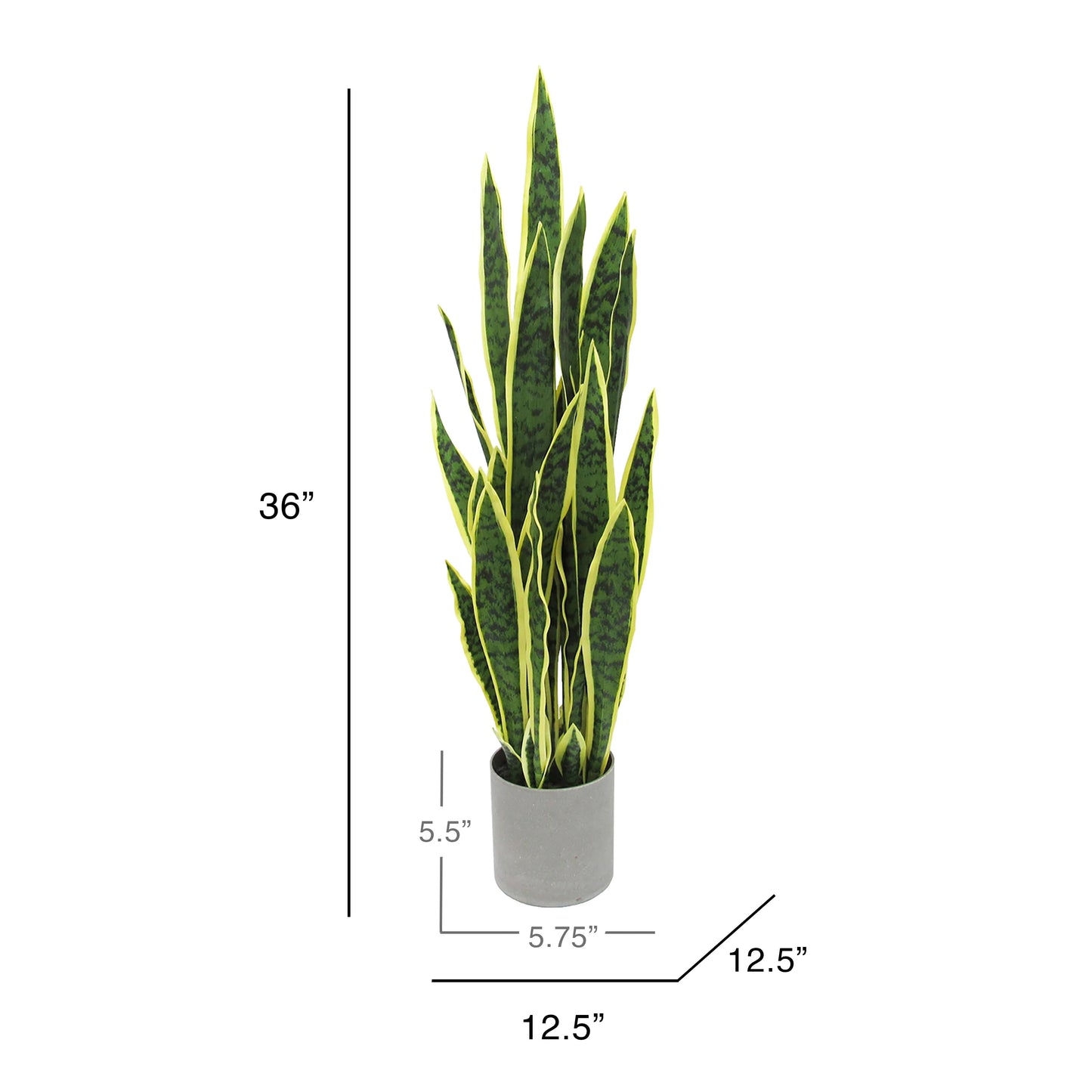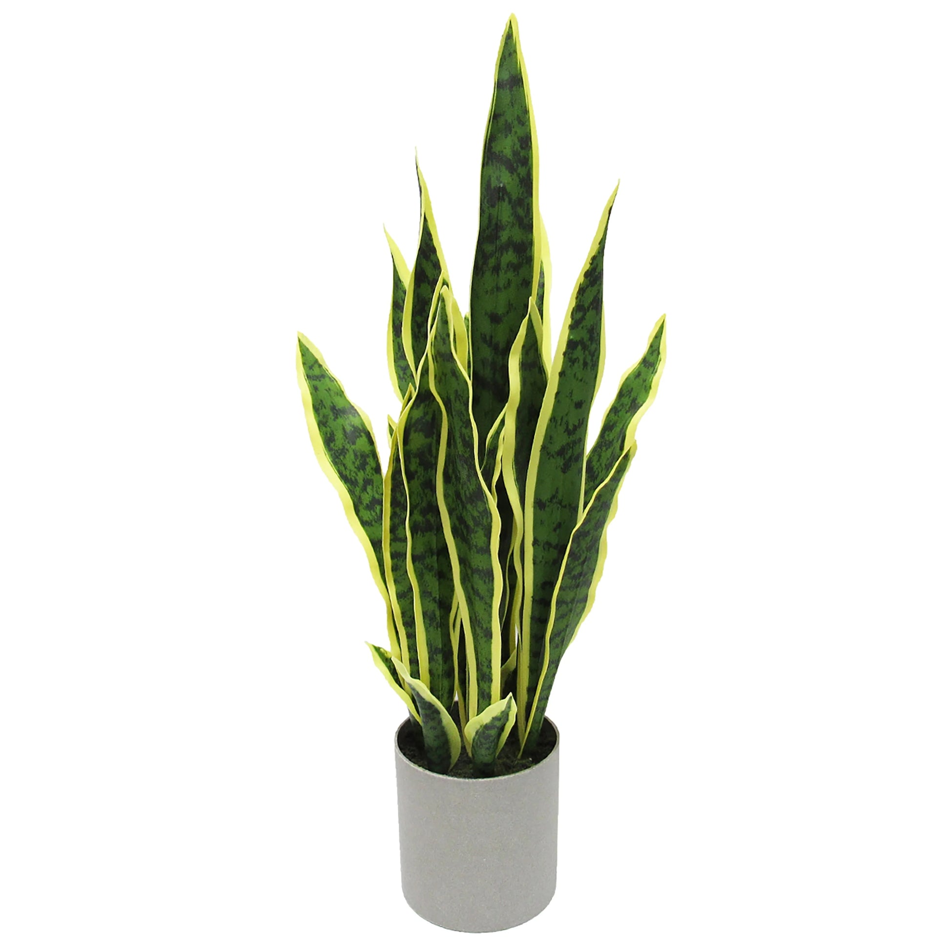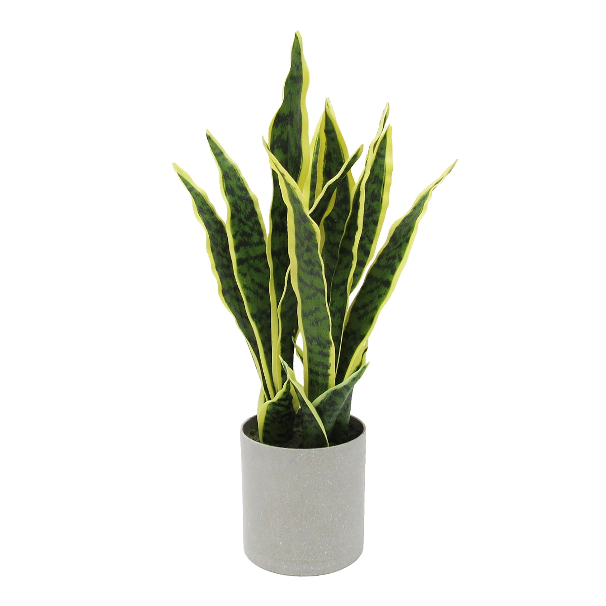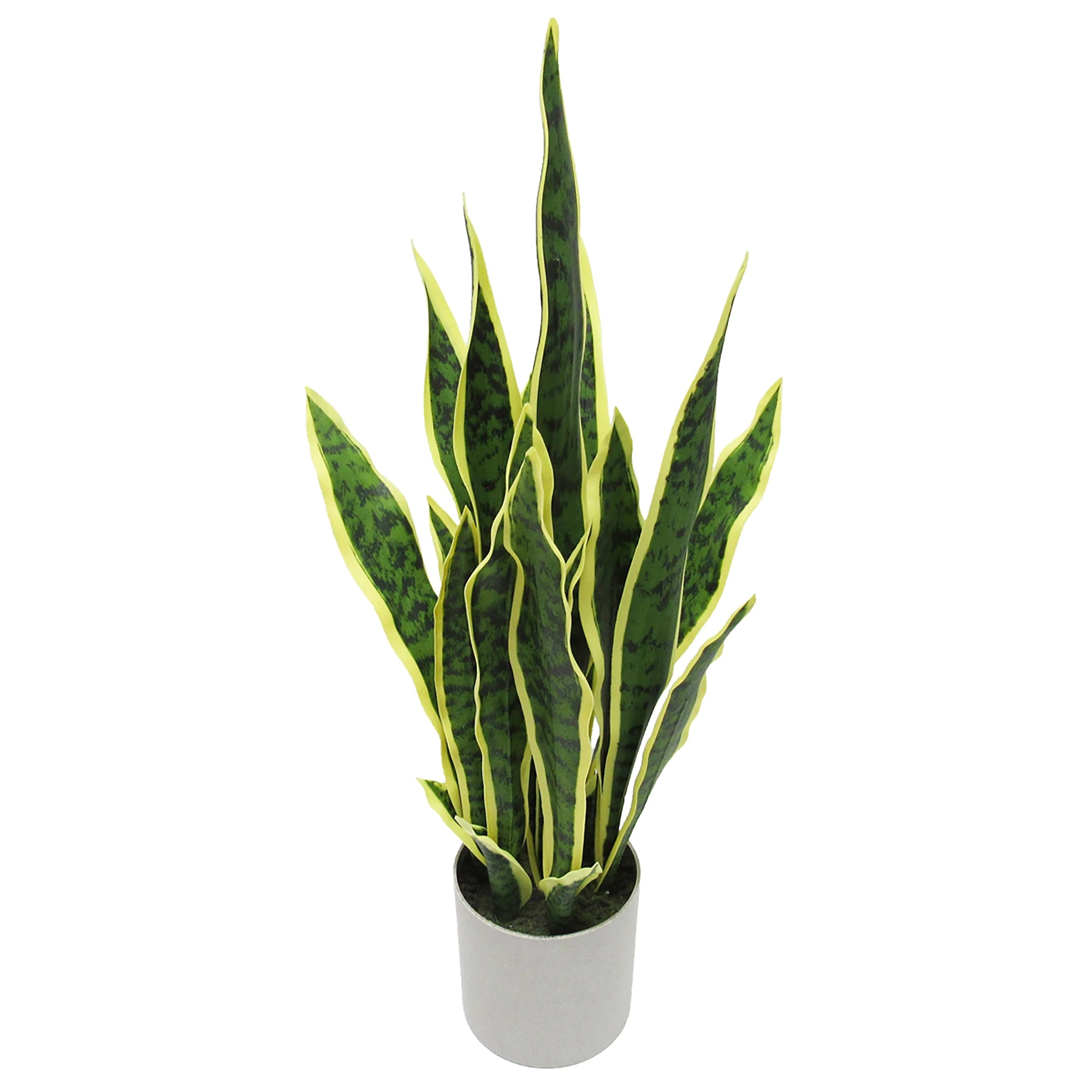Bring the beauty of nature into your indoor space with this Artificial Sansevieria Snake Plant. The vibrant and authentic greenery of this plant adds a touch of botanical feel, creating a relaxing atmosphere. With natural coloring and variegation, this plant features lush greenery that looks just like the real thing without the need for daily maintenance. Each plant comes pre-potted in a neutral pot for easy styling and convenience. Perfect for home, office, events, and more!
