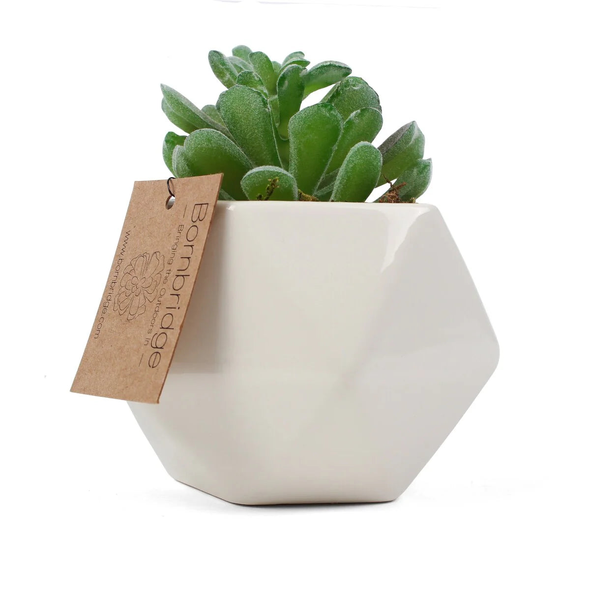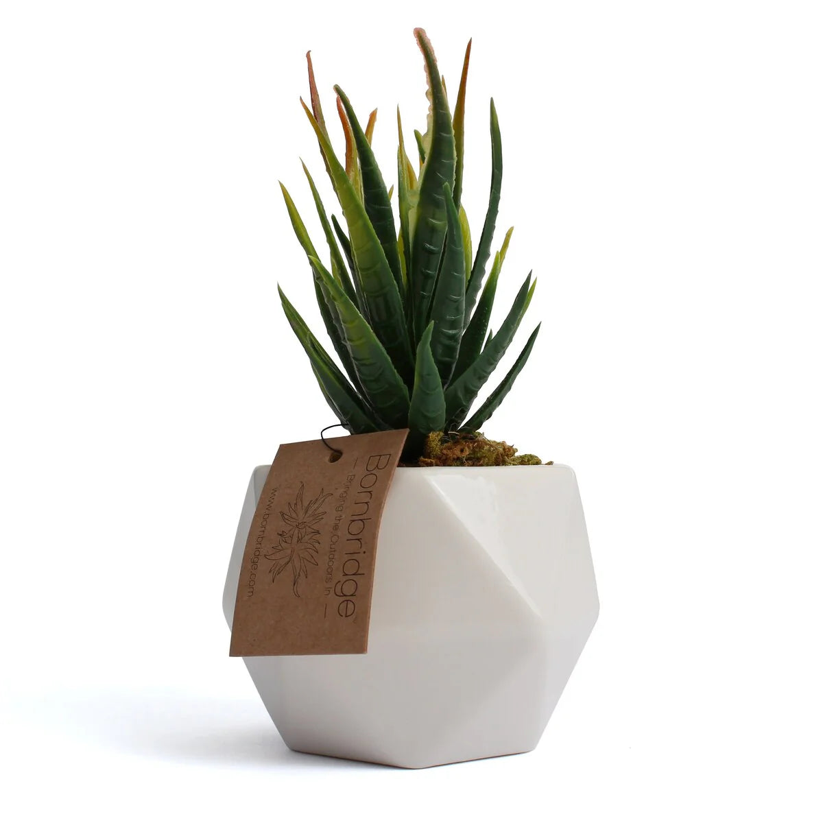 Bornbridge offers a variety of artificial succulents in lively and vibrant plant types. Bornbridge artificial succulents are available in Agave, Aloe, Echeveria, and Echeveria Cassyz Winter. All Bornbridge faux succulents come potted in a beautiful, ceramic, geometric vase.