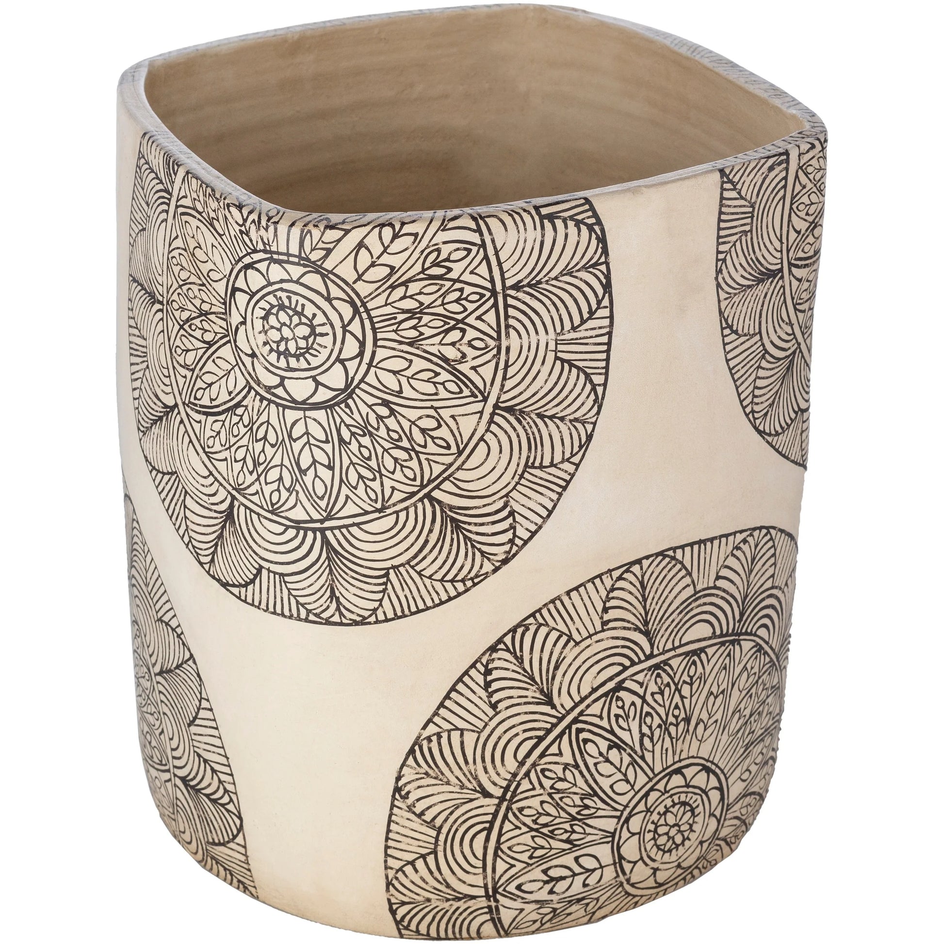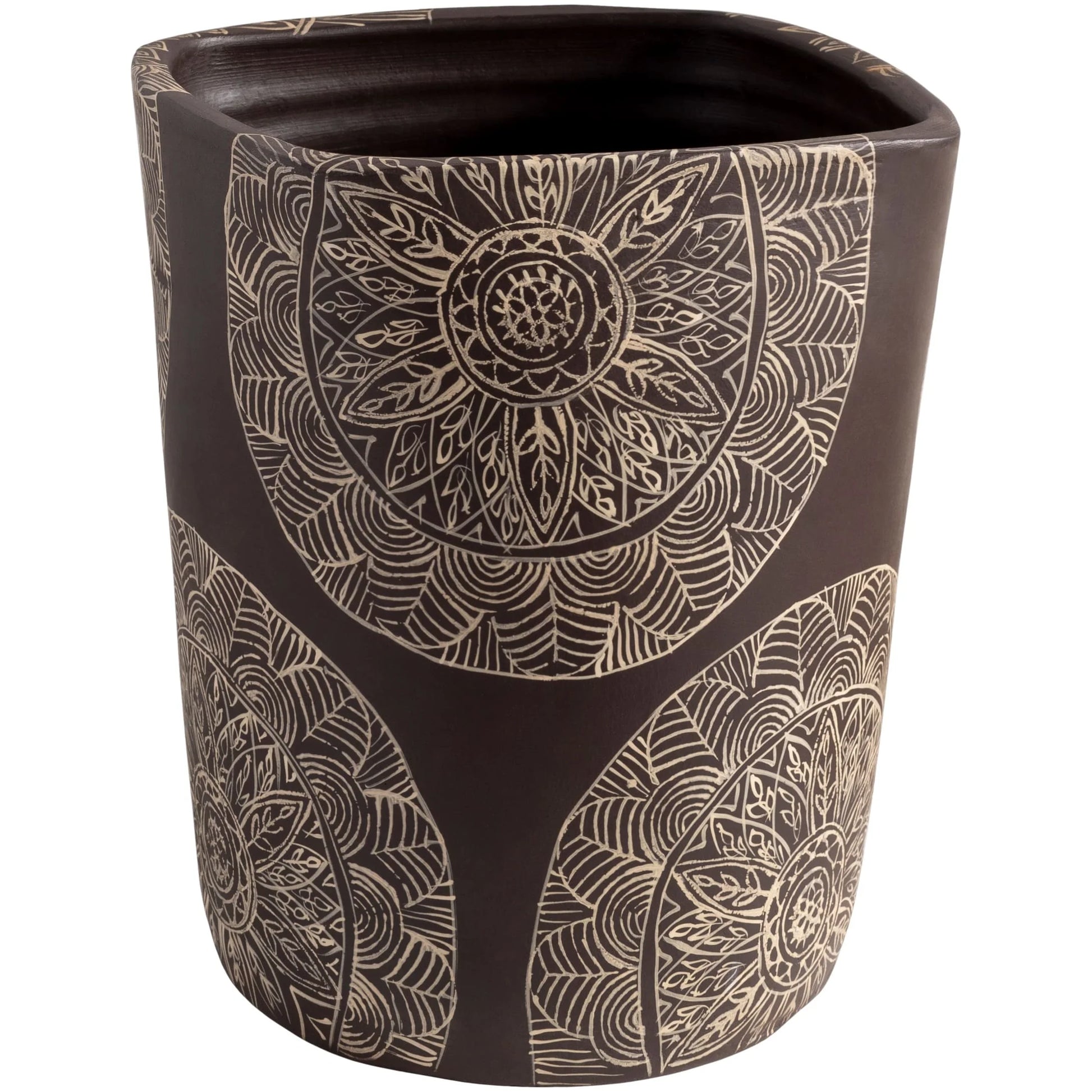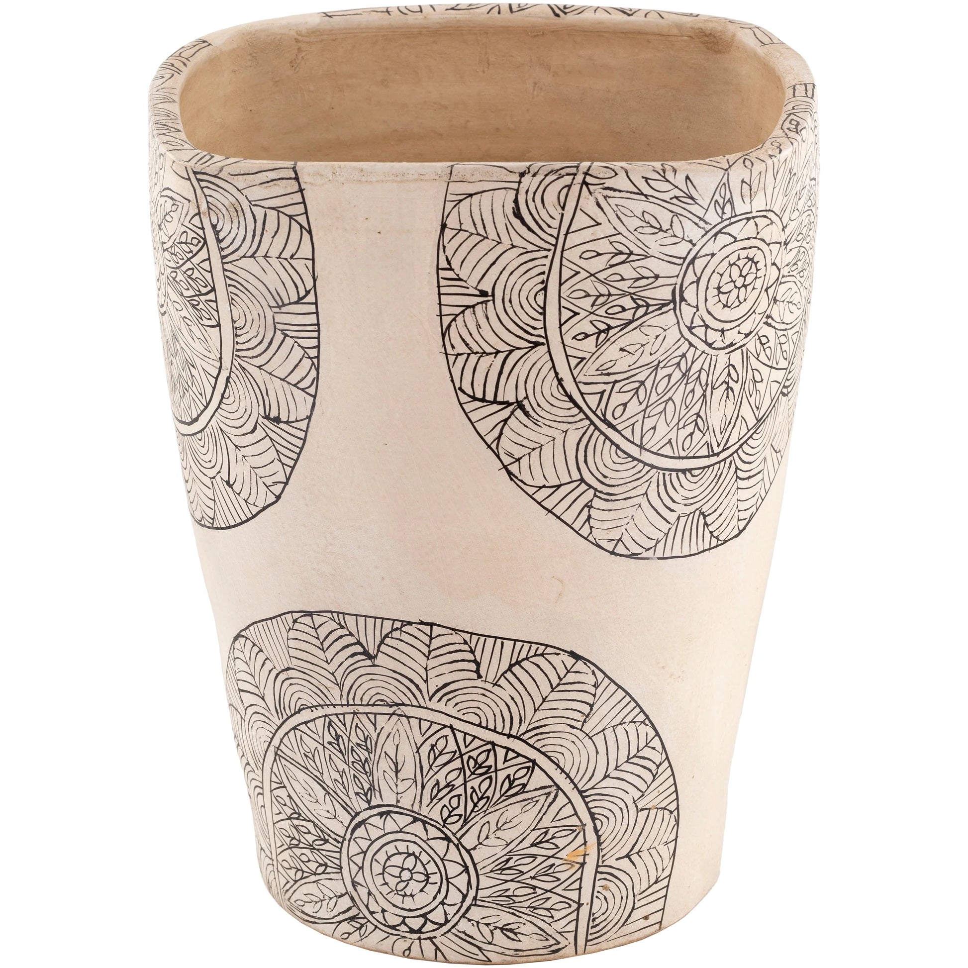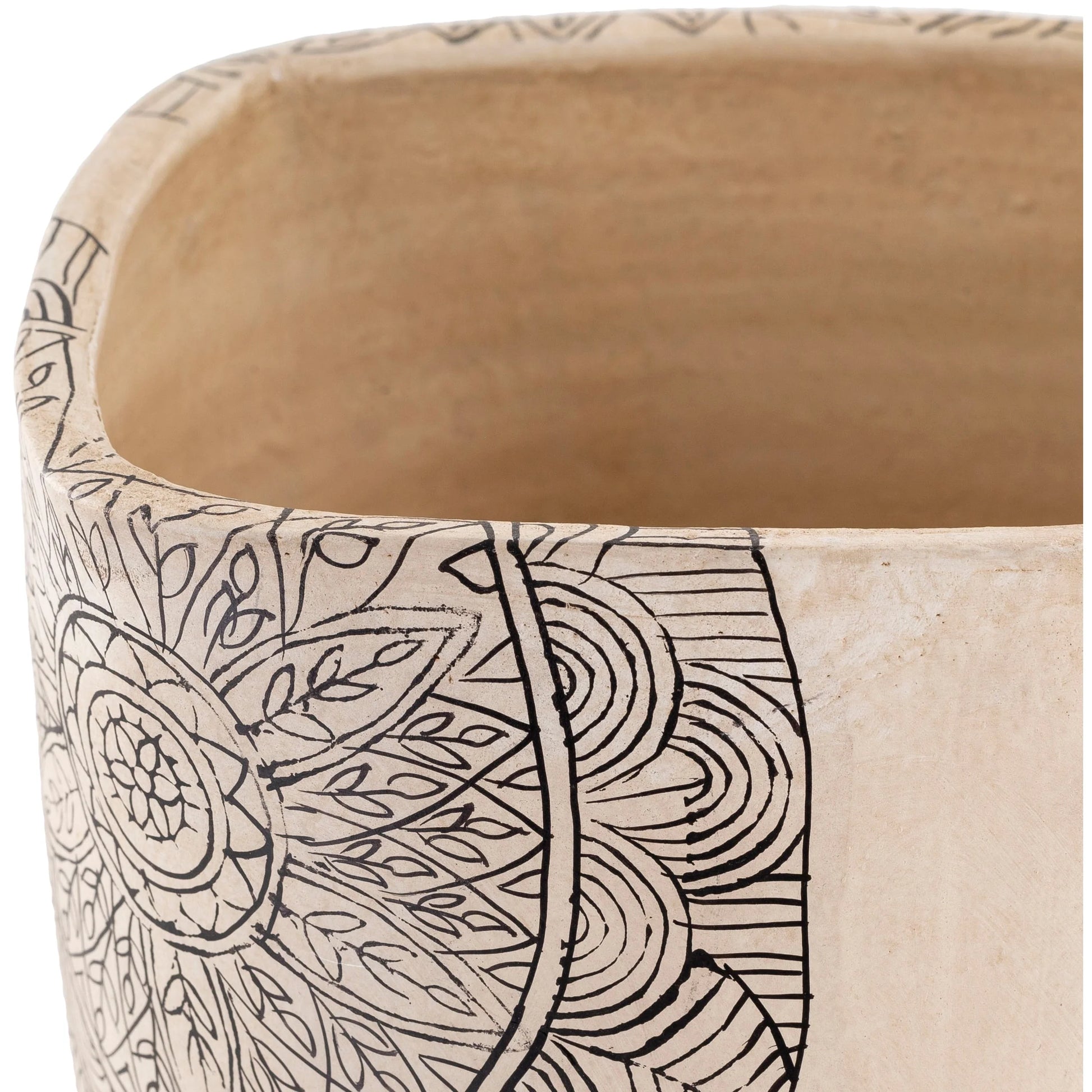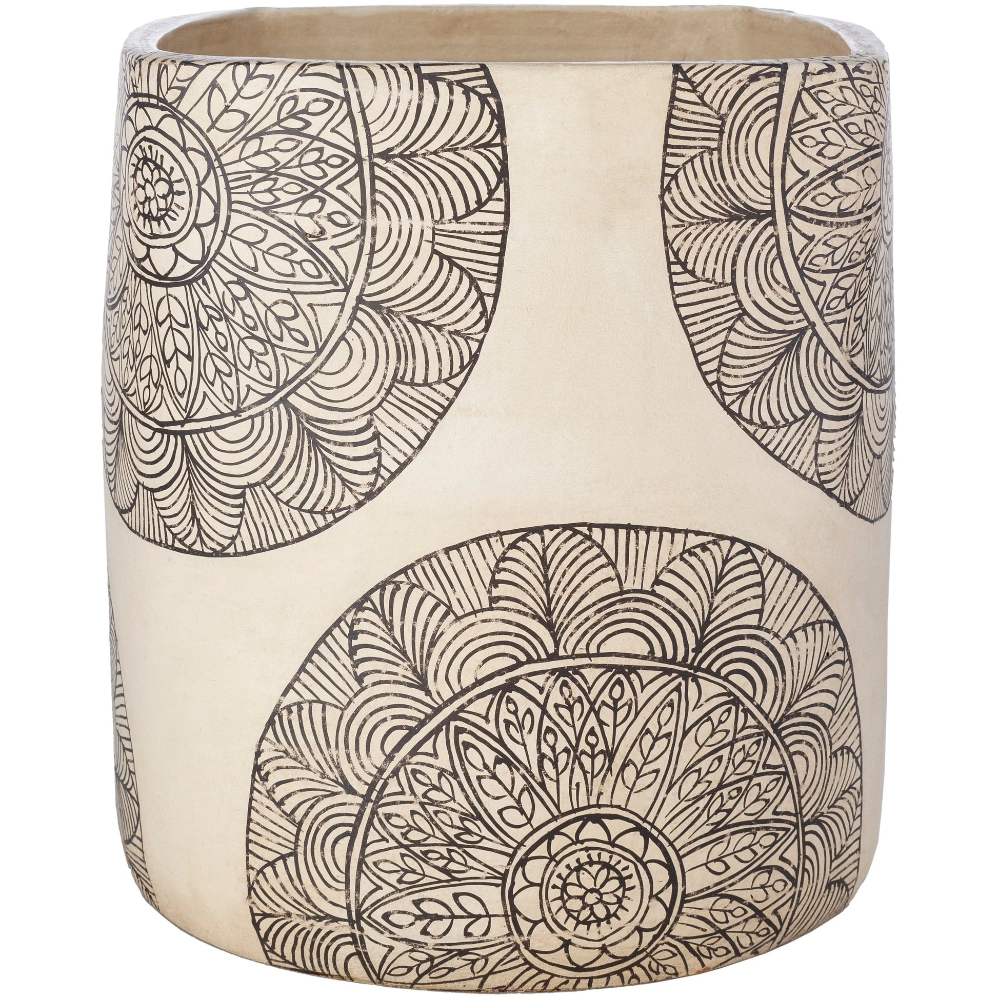 Introduce a touch of global elegance to your living space with our Gene Terracotta Mandala Indoor Planter. Crafted from 100% terracotta in India, this decorative planter features a modern form that's perfect for indoor use. With no drainage hole, it's easy to maintain - simply wipe clean with a dry cloth. Choose from three different sizes to suit your decor needs.