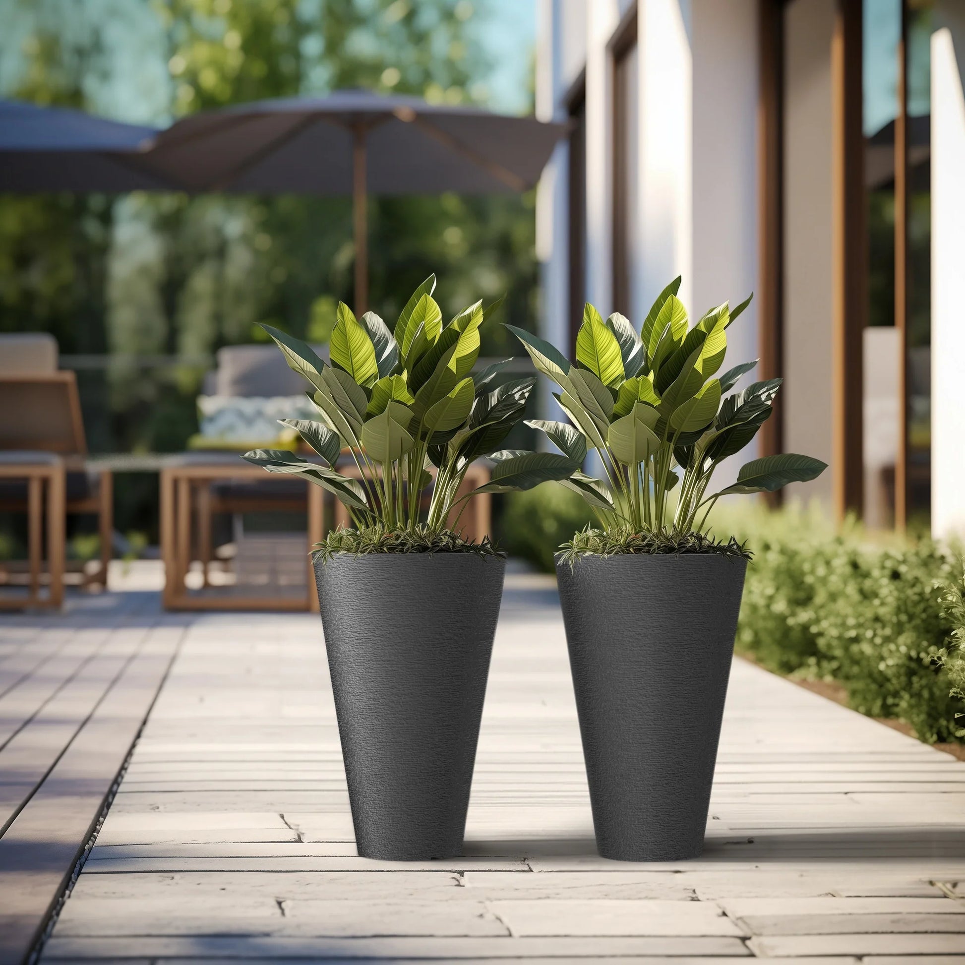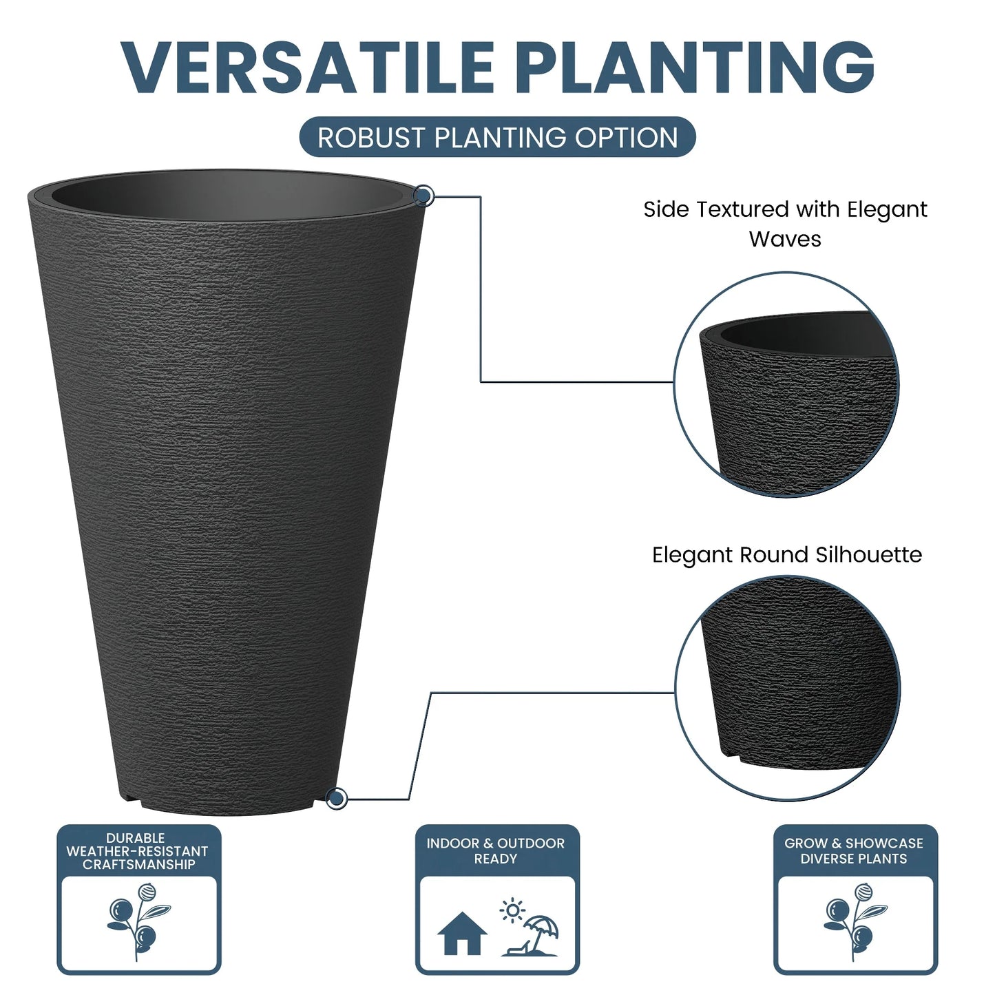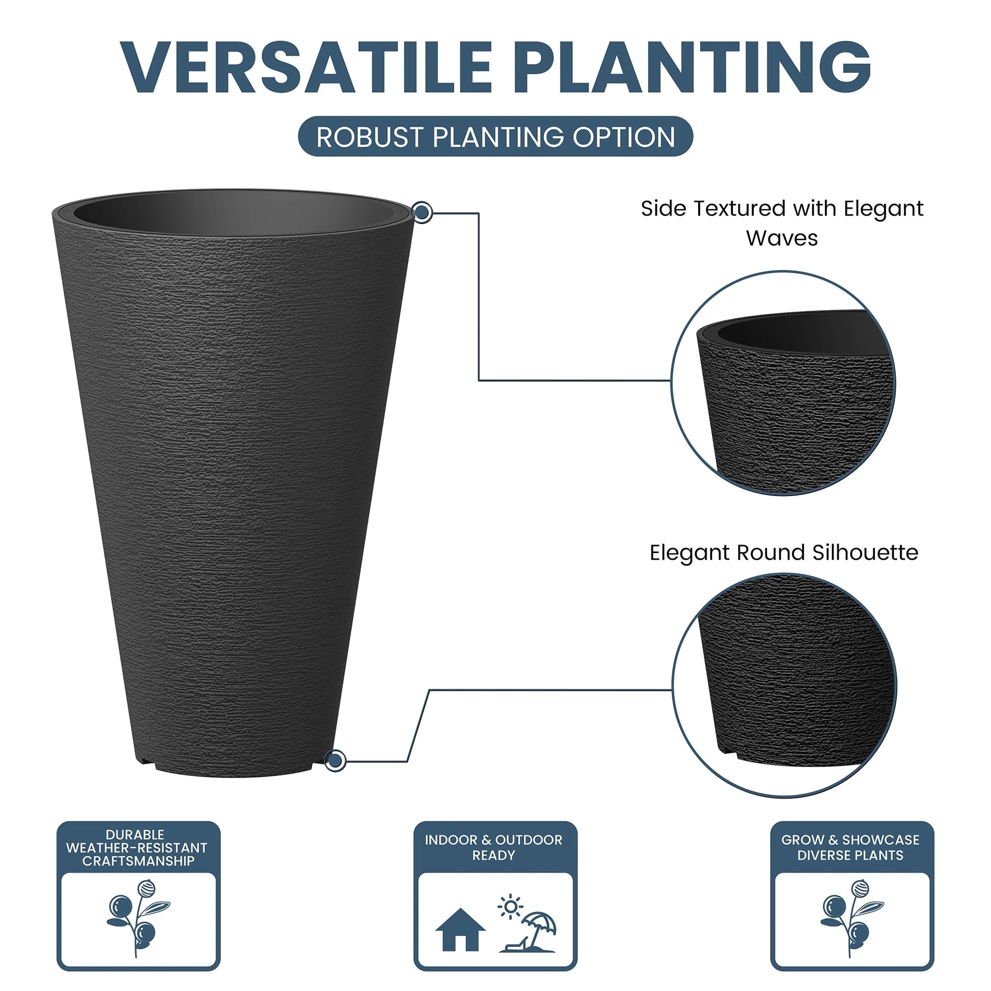 Black Tall Plastic Round Plant Pots / Large Indoor and Outdoor Flower Planters, 2 Piece Set