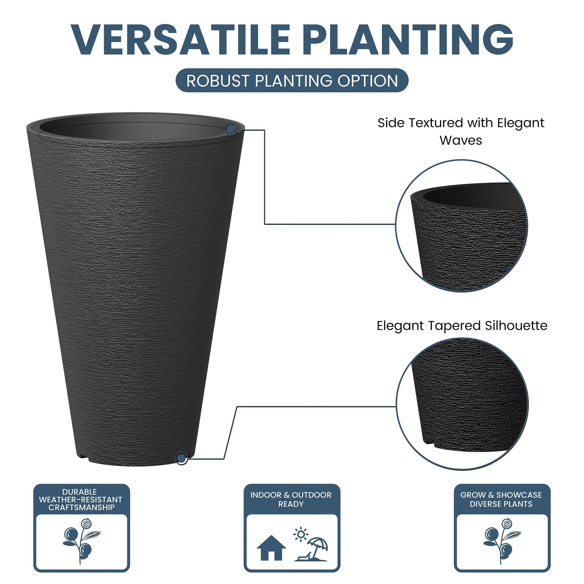 *Gardening Made Easy: Our collection, including the convenient outdoor Plant Pot set of 2, offers solutions for every gardener. Our plastic pots and planter options blend traditional aesthetics with modern functionality, while our planter boxes and tall planters provide structured elegance for your gardening projects