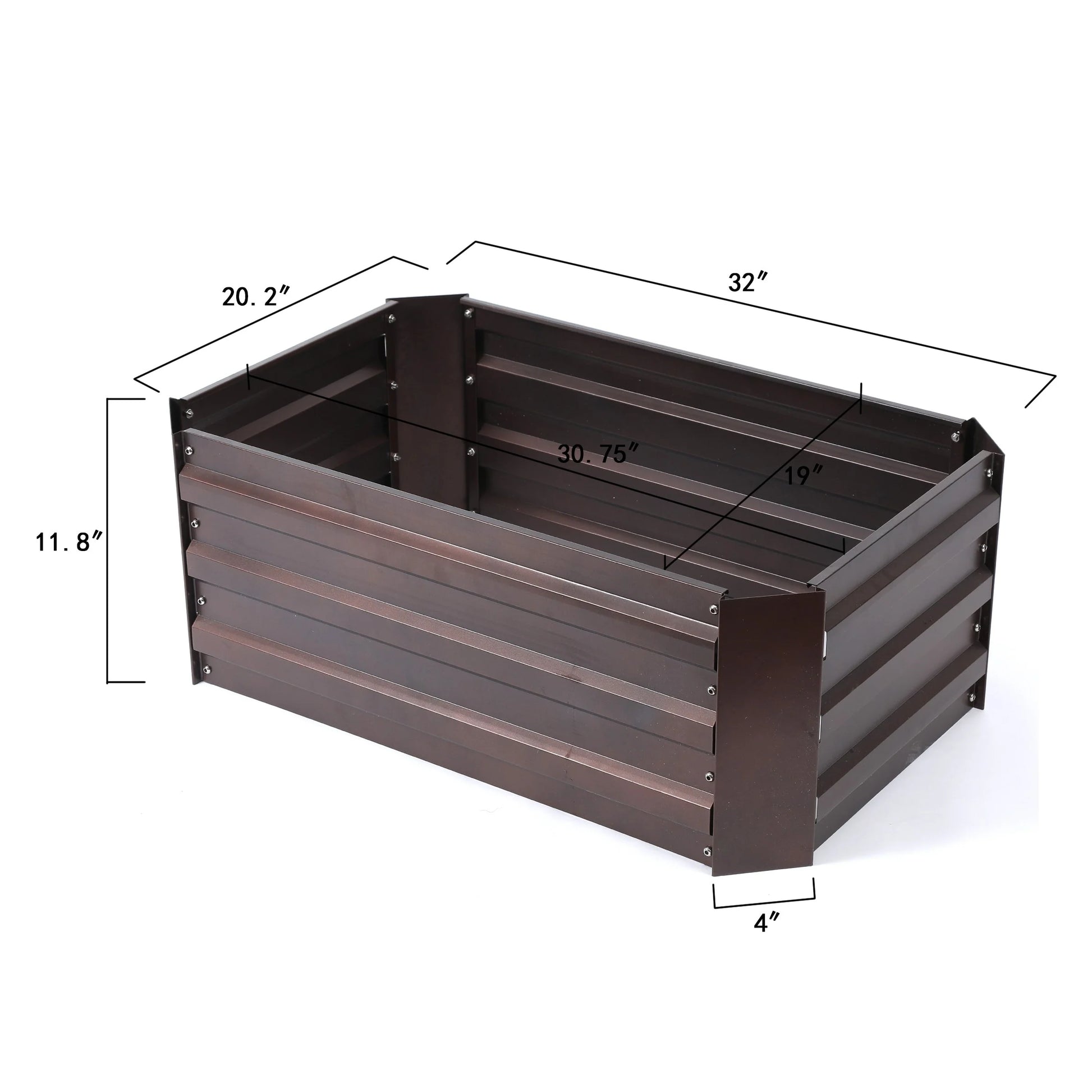 Brown Metal Rectangular Garden Bed Planter - 32" W x 20.2" D x 11.8" H