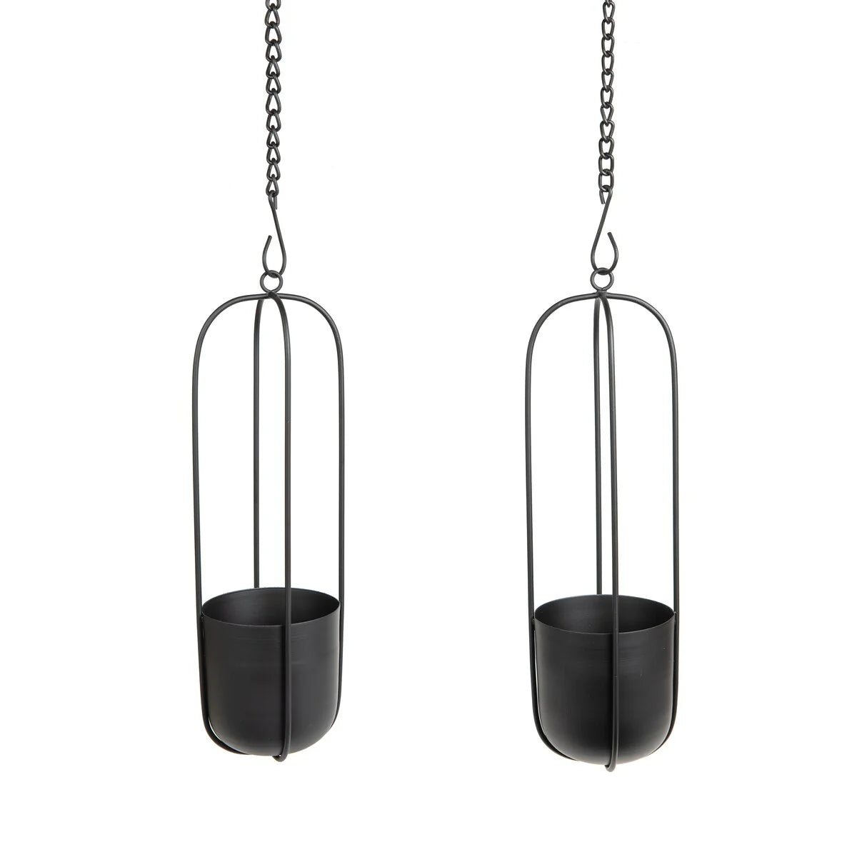 Danya B. Walter 2-Piece Modern Black Metal Oval Hanging Planter Set with Chain Hanging Option