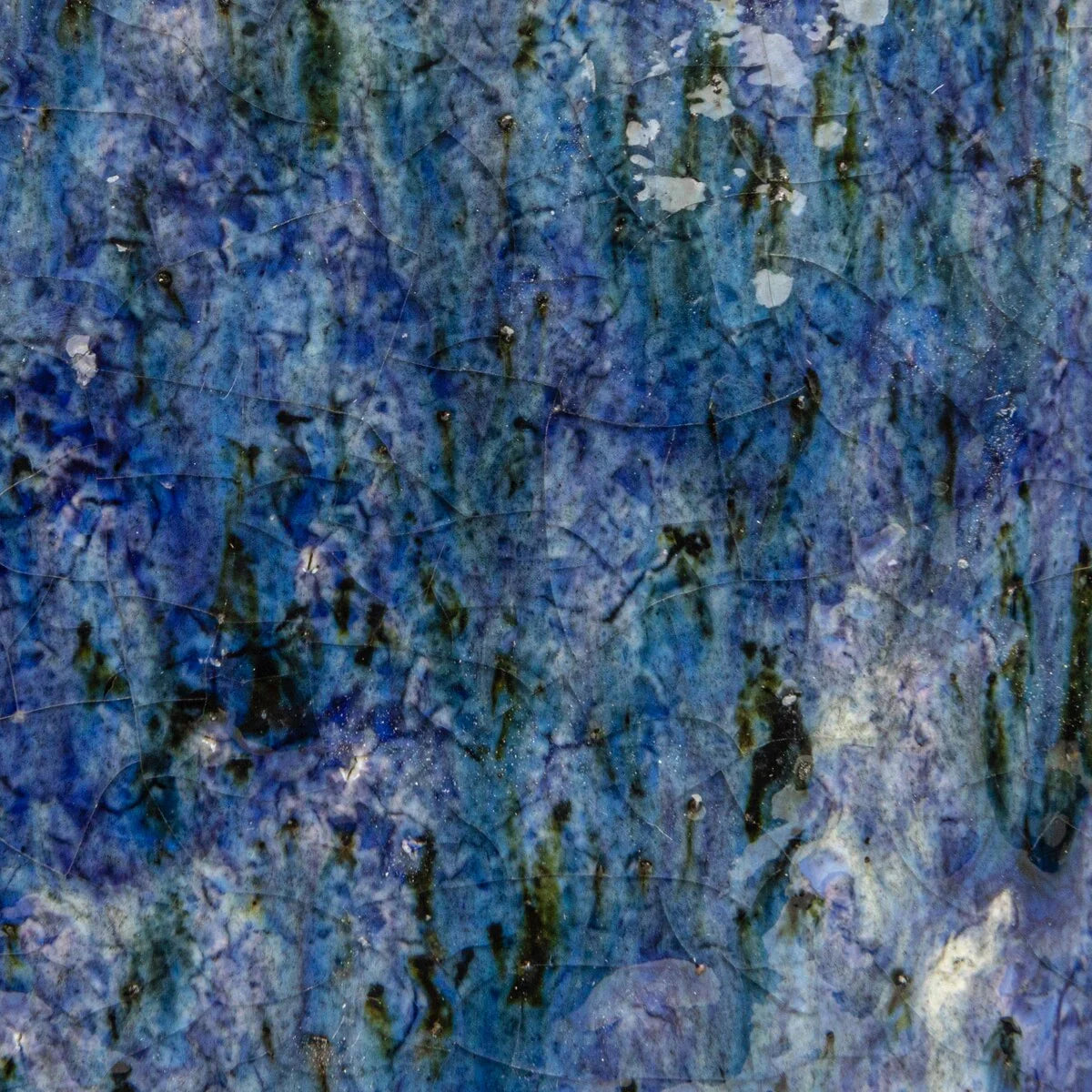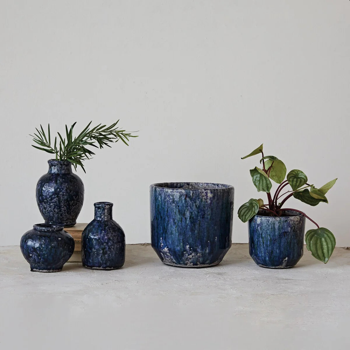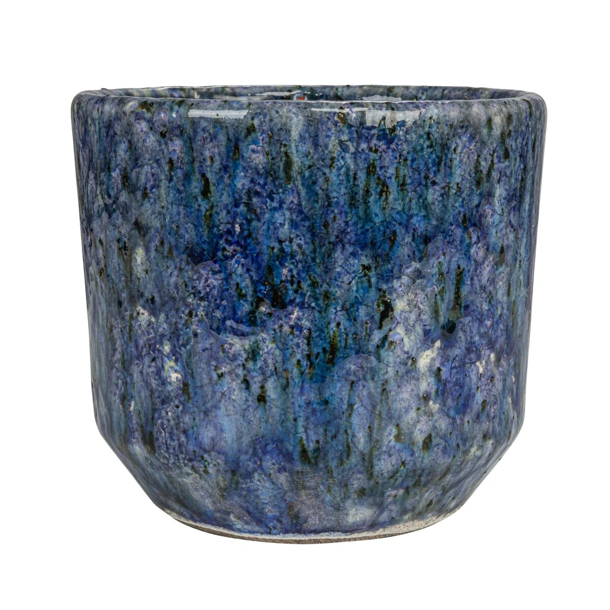 - A stunning terra-cotta planter with a crackle glaze finish in a blue color