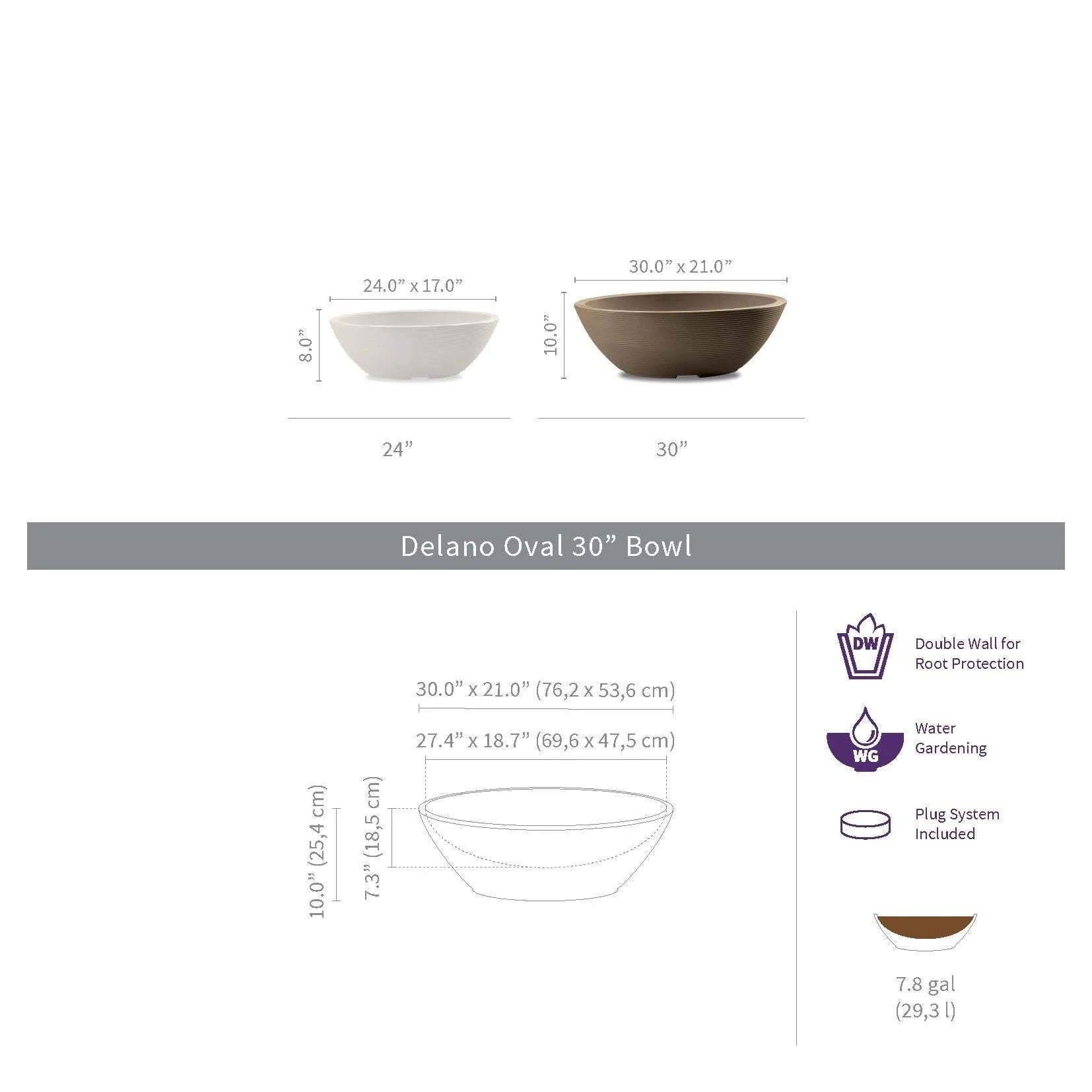 Whether you're showcasing succulents on your coffee table or creating a mini garden oasis on your patio, the Delano Oval planter bowl is your go-to. With a wide range of colors to choose from, it adds a pop of personality to any space, indoors or out, all year round! Plus, it's got a nifty 3-in-1 plug system: keep it open for drainage, seal it up for water gardening, or drill it for a sneaky fountain wire. So go ahead, let your creativity bloom!