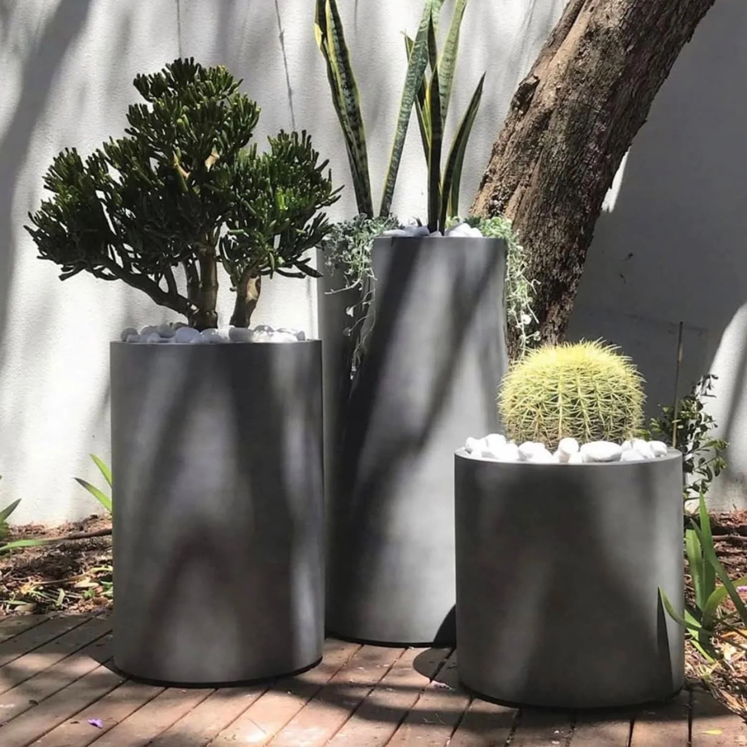 Enjoy the Fontana Cylinder Planter in your garden today! The Fremont Square planter range has been developed due to popular demand. The round simplicity of the design with the different available heights make it very desirable. These tall planters are used to great effect when height is needed to create impact and add structure in a garden or on a balcony or roof terrace. And since these modern planters are made from fiberglass and stone powder, they are lighter in weight yet ultra-durable, even in freezing and high-traffic conditions.