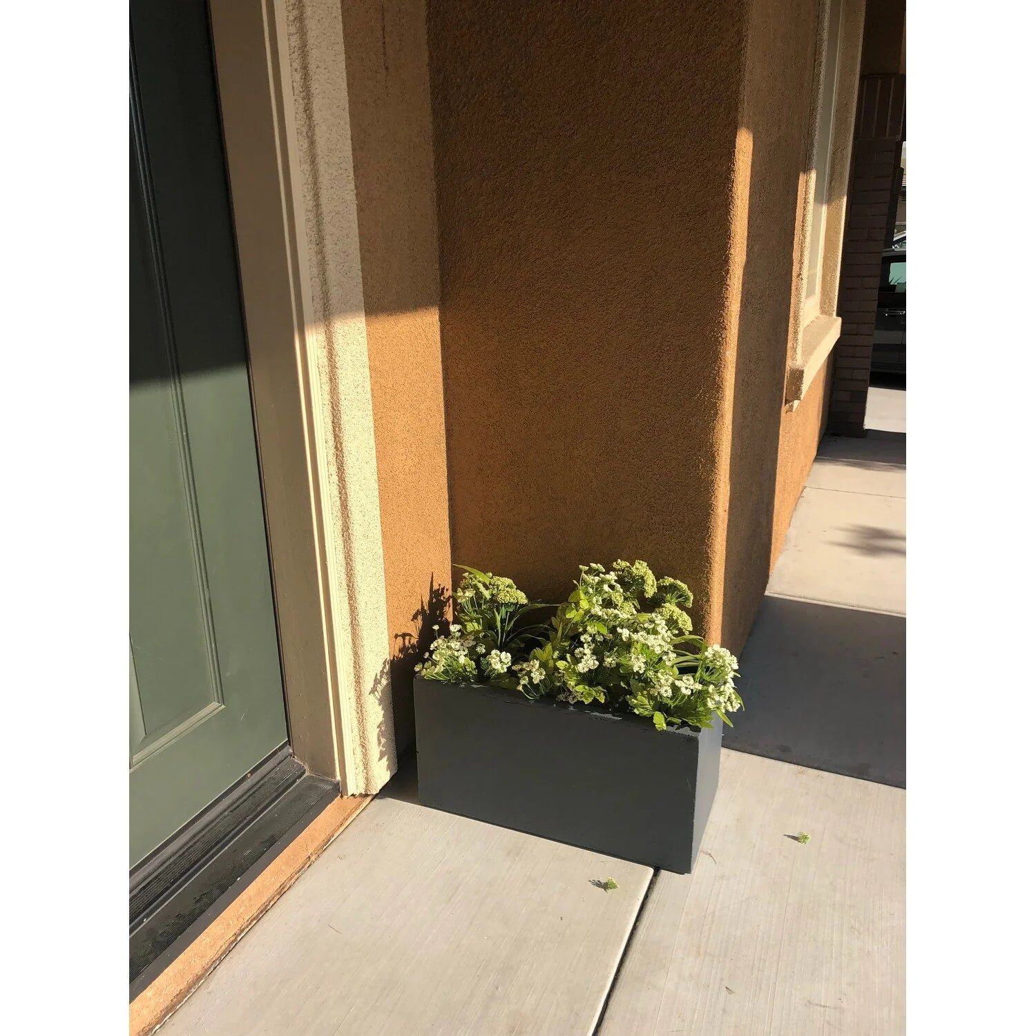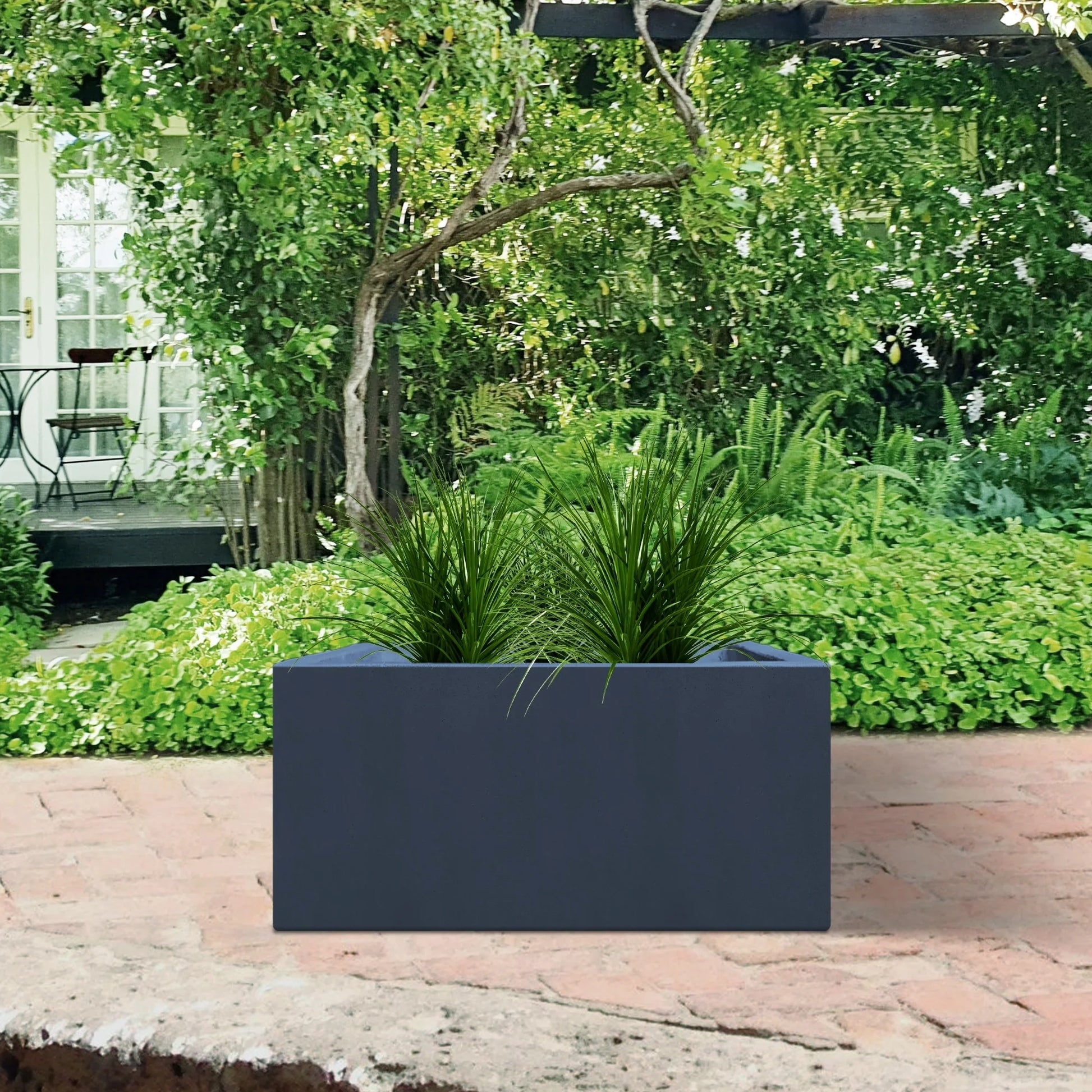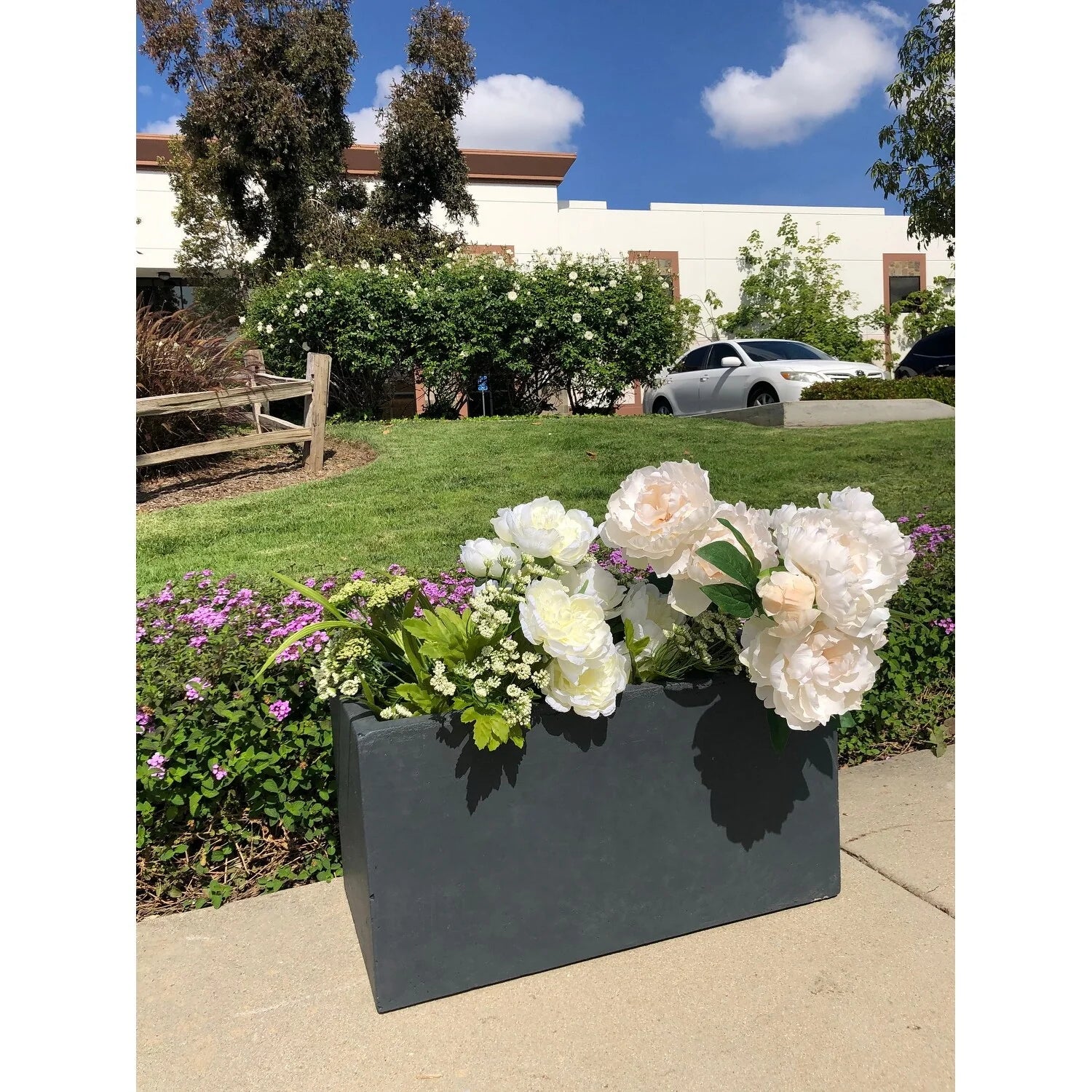 Create a modern space using these long low planters. The straight lines and solid grey finish are a hot trend in modern landscape designs. Ideal for succulents and delicate plants that need room to grow.Made of Lightweight concrete through an ecofriendly manufacturing process. This composite material has all the advantages of concrete such as strength, durability, weather and damage resistance, yet much easier to move around due to its lighter weight. Features: 1. Handmade; 2. Colors and patinas are hand applied; 3. Concrete and fiber composite; 4. Strong and durable; 5. Lightweight; 6. Weather resistant&Damage resistant; 7. Drainage hole; 8. Ecofriendly; 9. Long lasting color; 10. For indoor and outdoor use