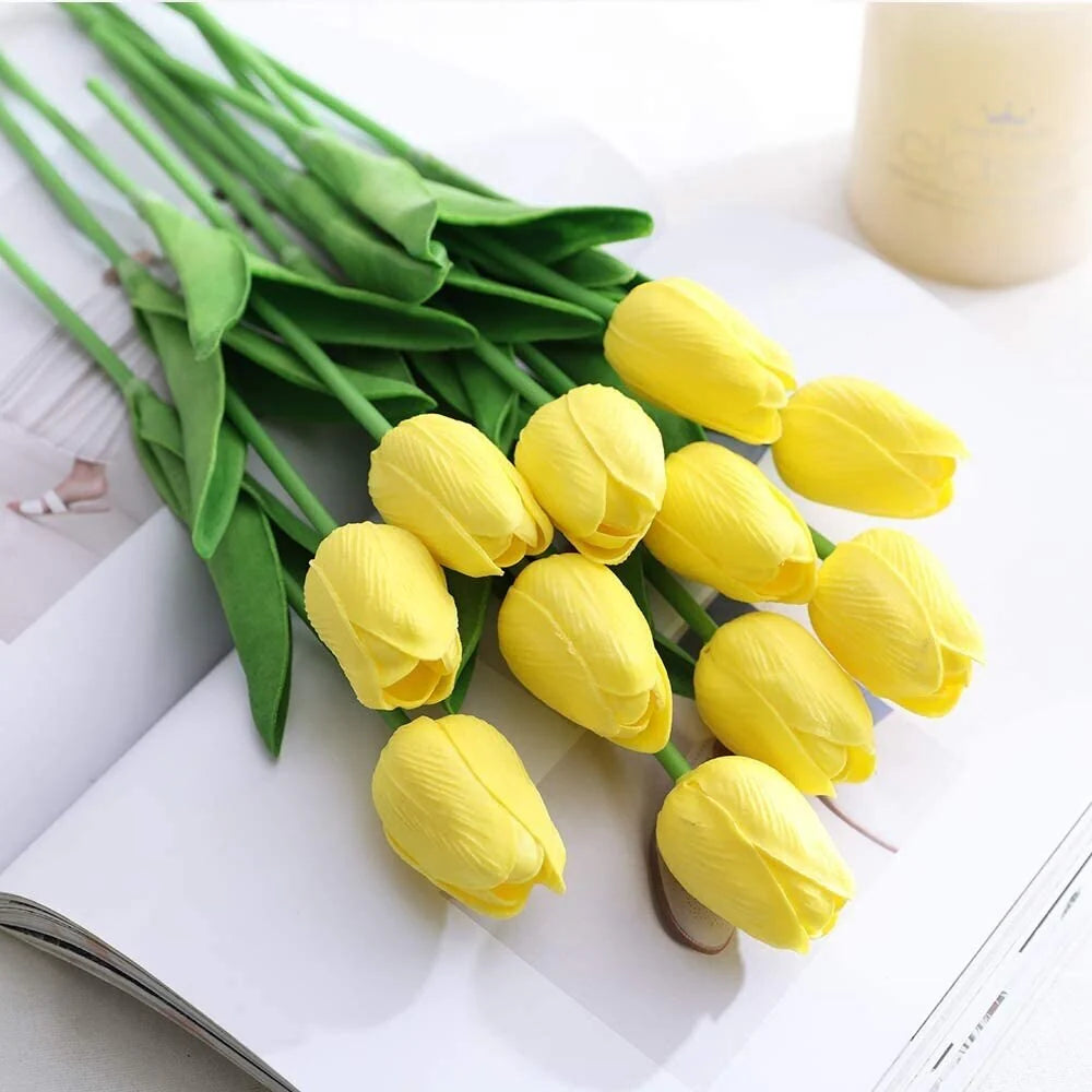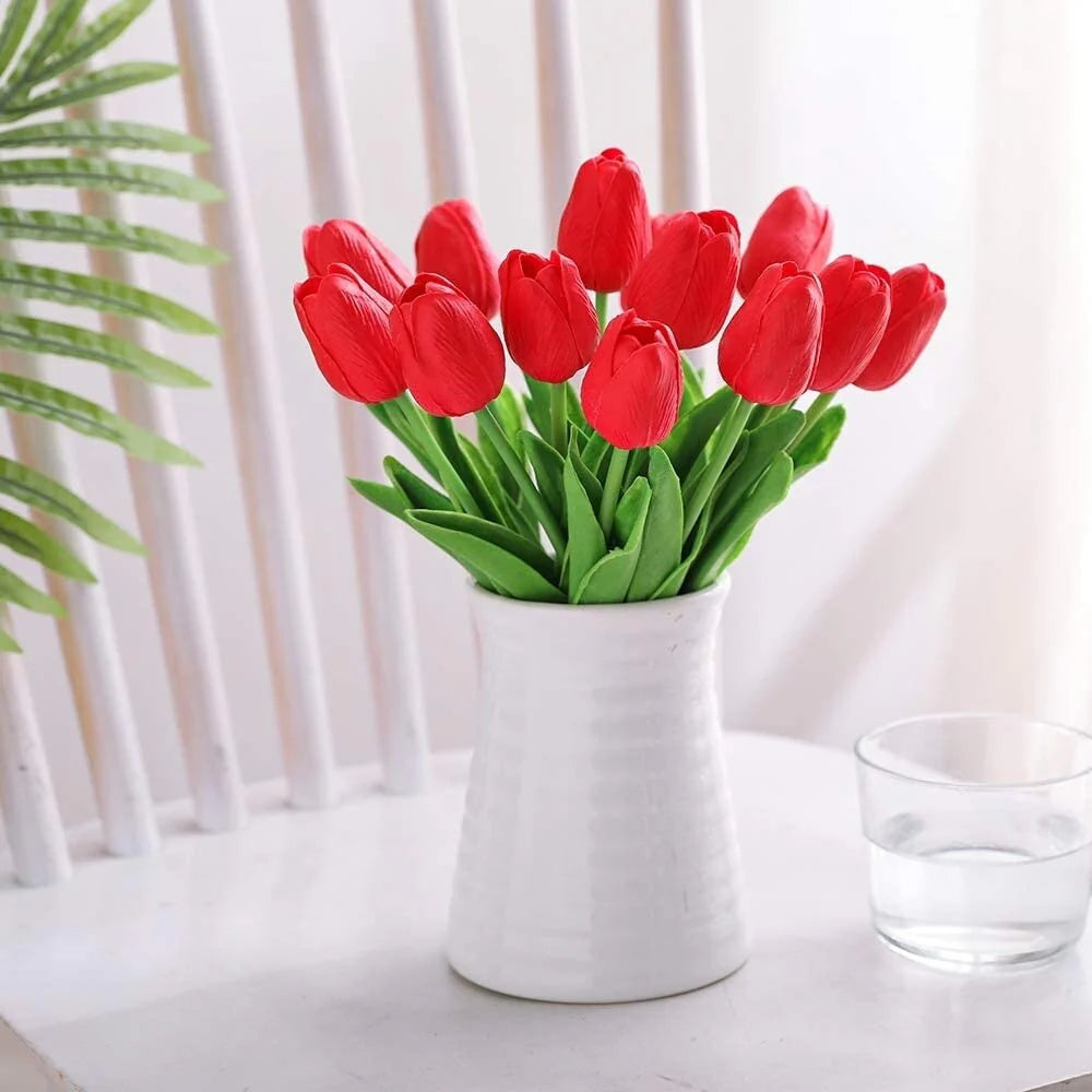 Enova Home 20 Pcs Artificial PU Real Touch Tulips Fake Silk Flowers Stems for Party Home Wedding Decoration