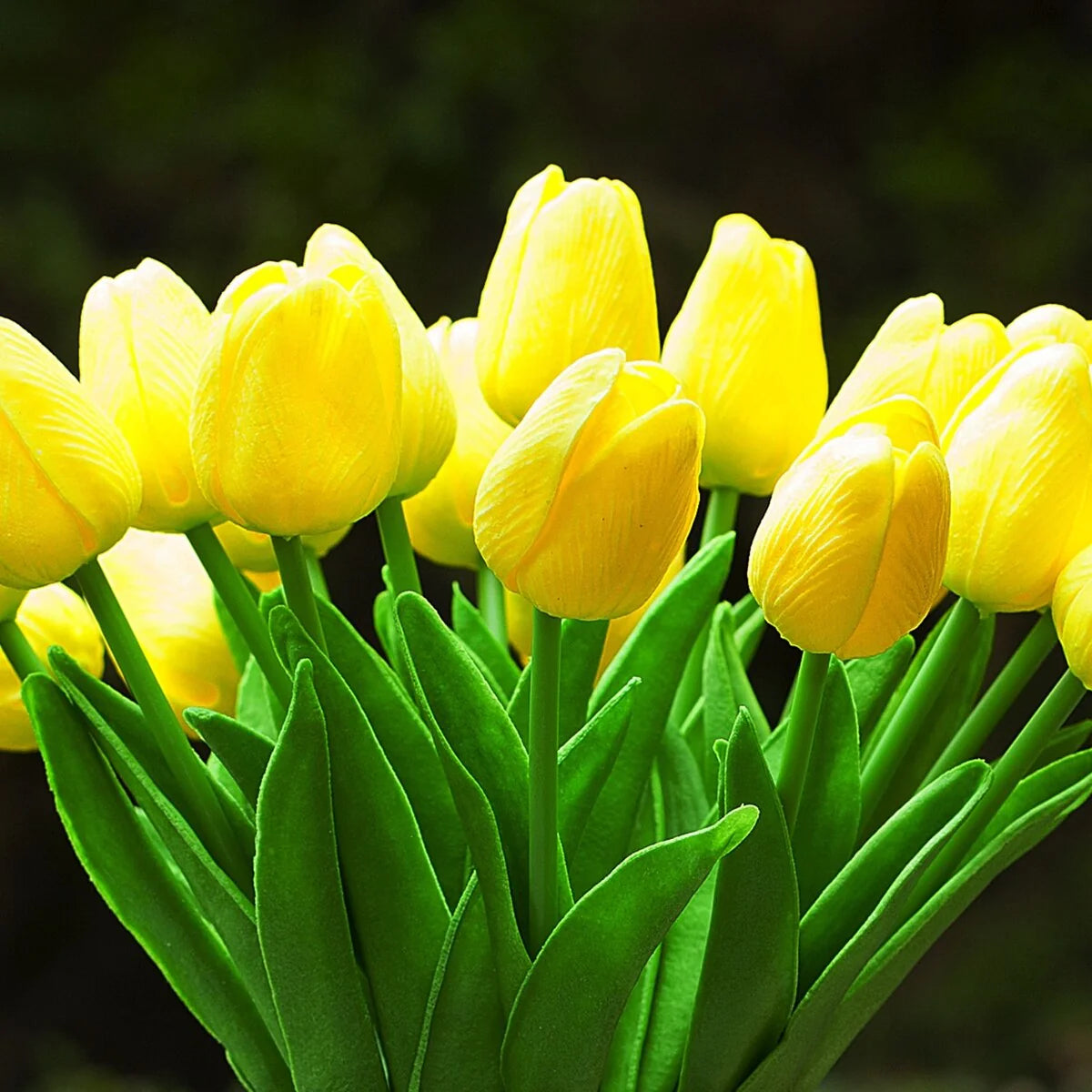 Add a touch of elegance to your home decor with Enova Home's 20-piece artificial tulip arrangement. Made with high-quality real touch material, these tulips feature soft stems and handcrafted blooms that give off an everlasting refreshing look and feel. The clear glass vase with faux water adds a realistic touch to the bouquet. Unlike fresh flowers, these silk blossoms will always stay colorful, vibrant, and blooming, making them a perfect addition to any room in your home.