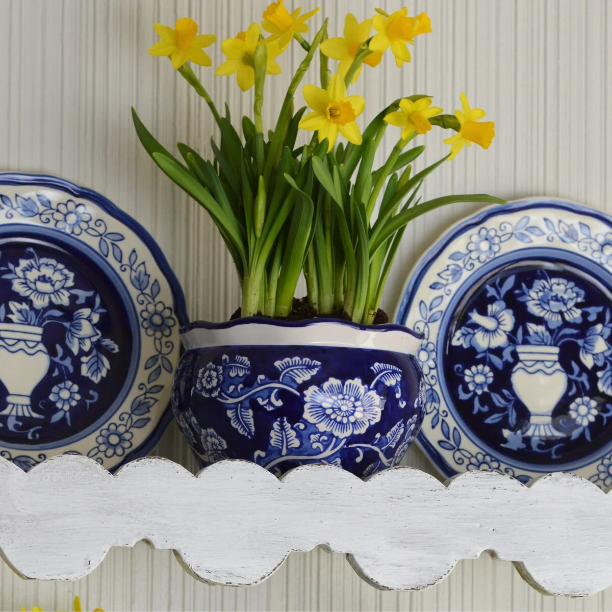 - Set of 3 ceramic planters with intricate blue and white patterns