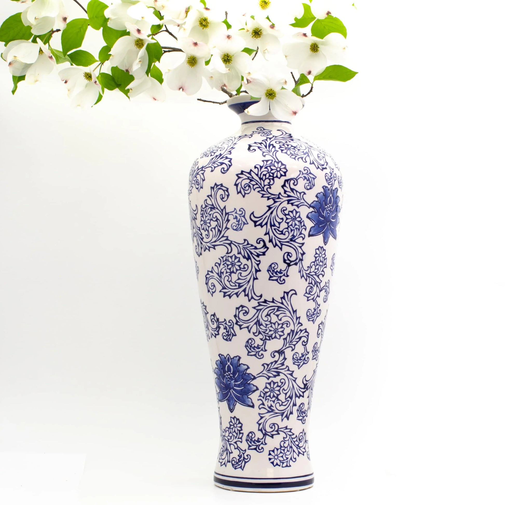 Euro Ceramica Blue Garden 20" White Tall Vase