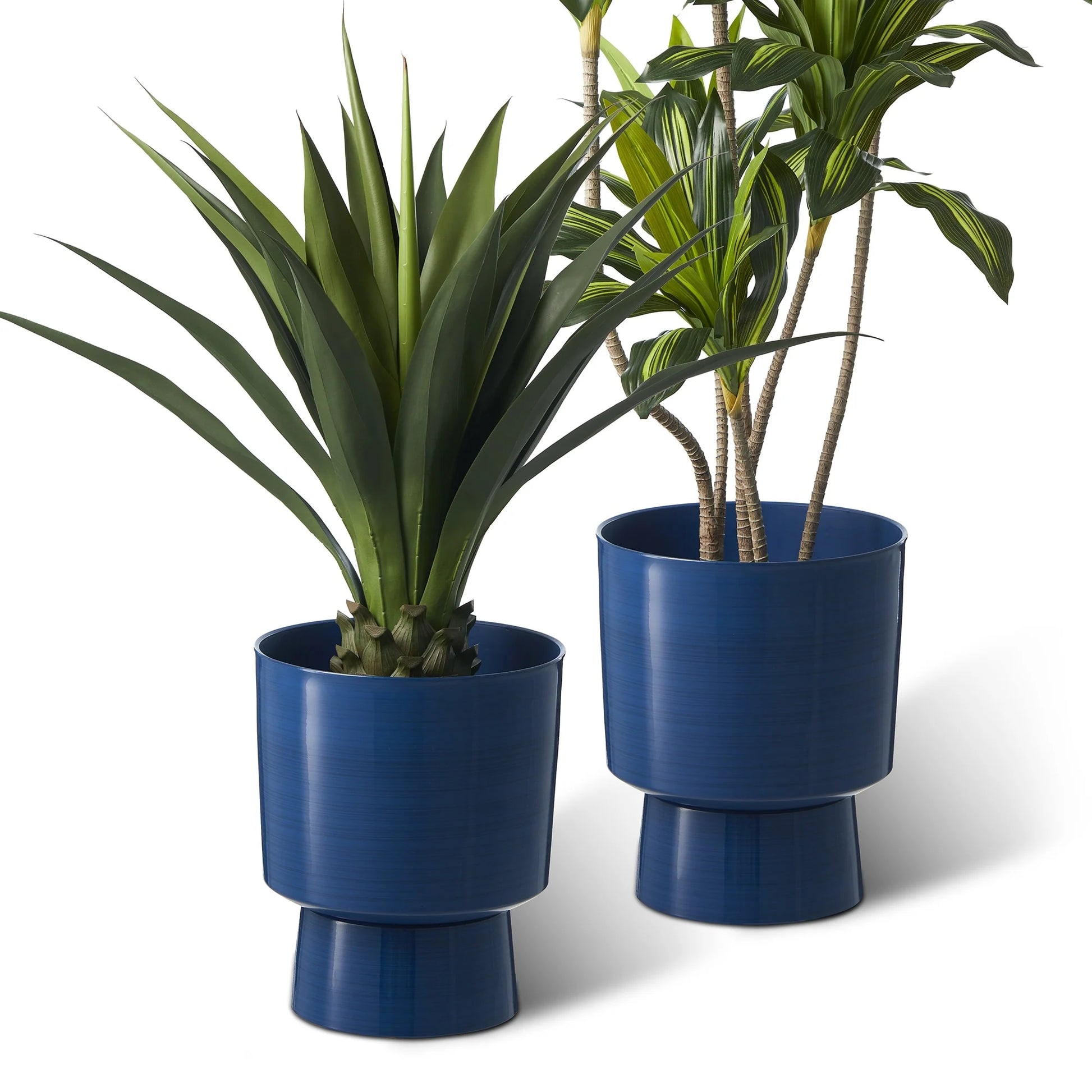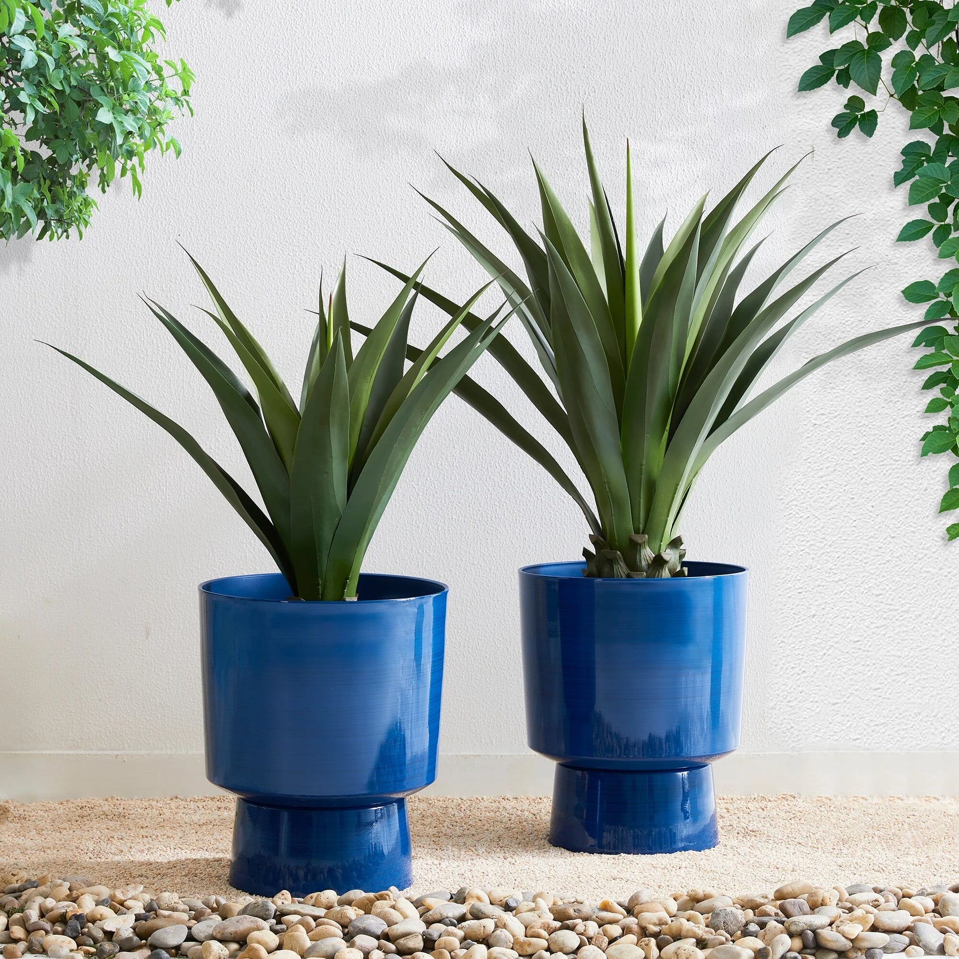 Glitzhome 16.75"H Set of 2 Cobalt Blue Faux Ceramic Urn Plastic Planter with Screw in Base