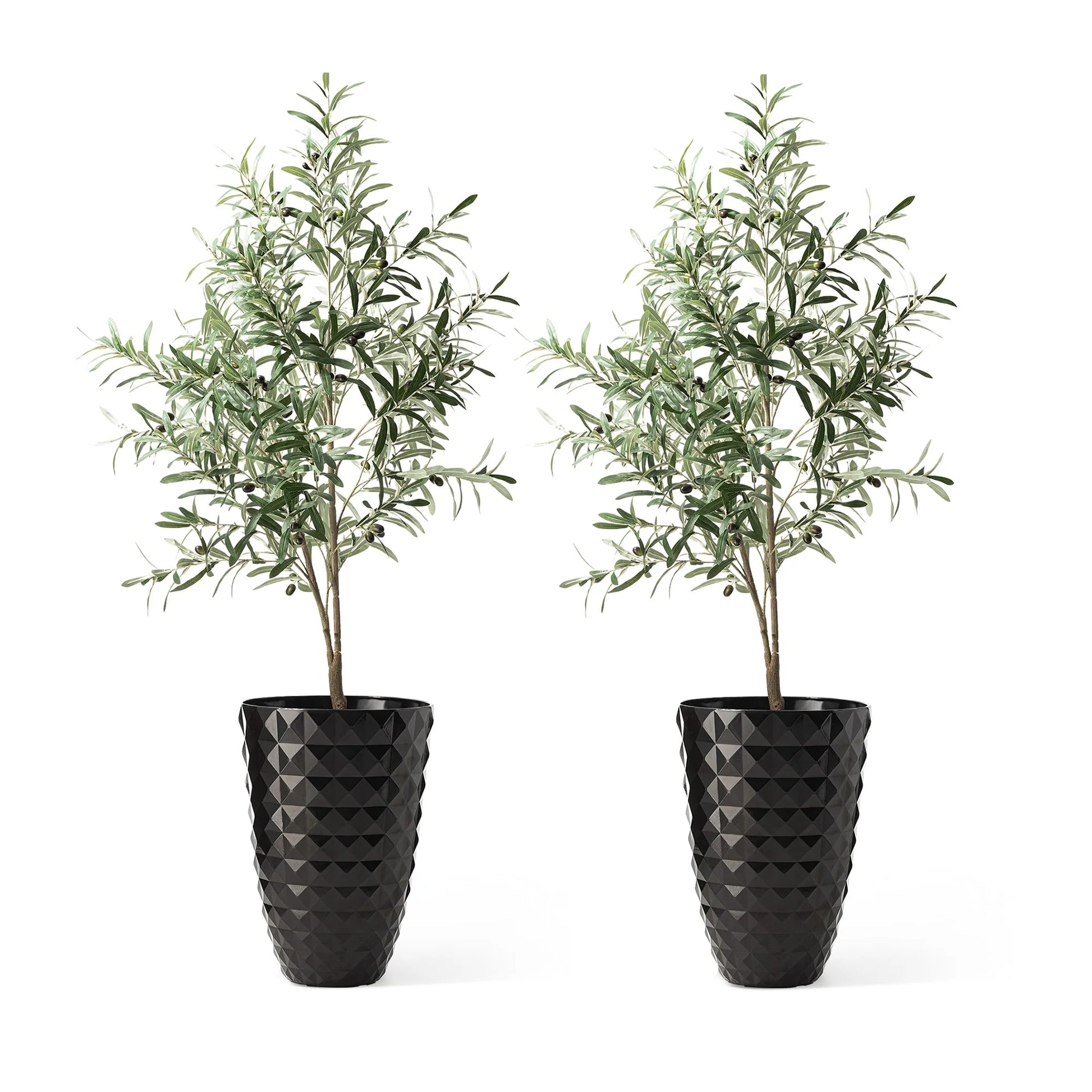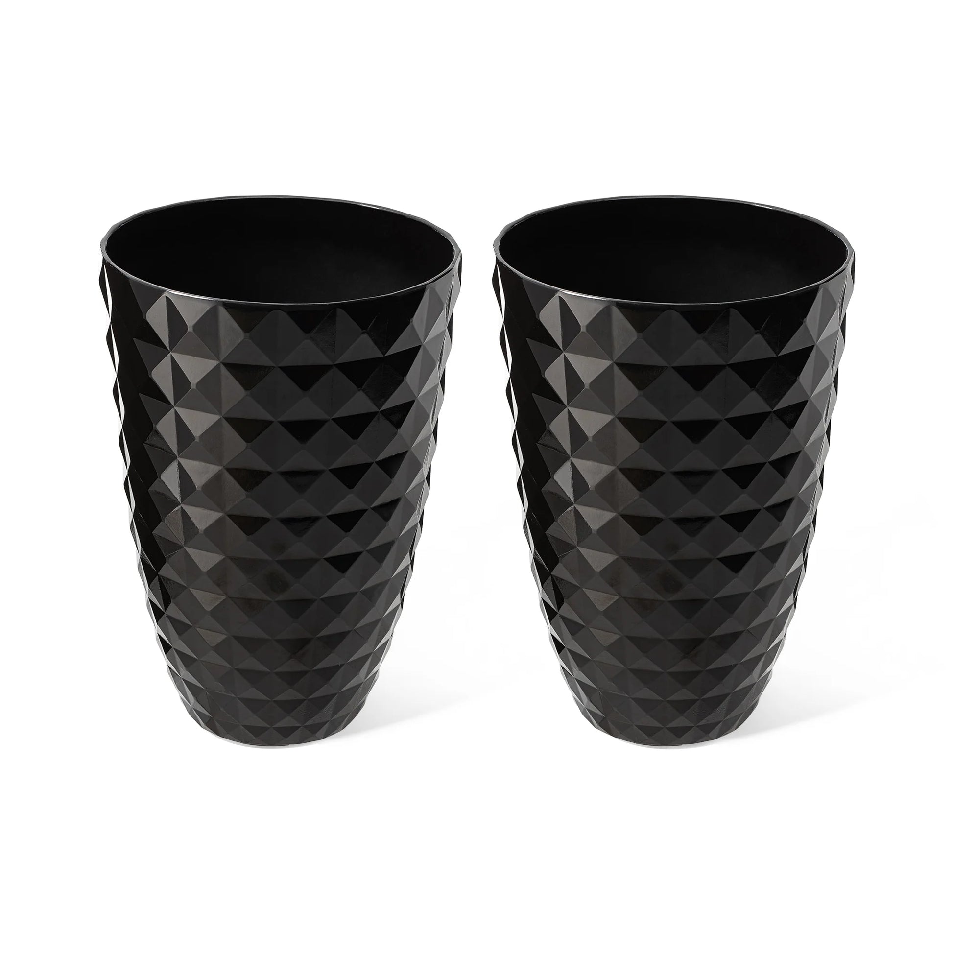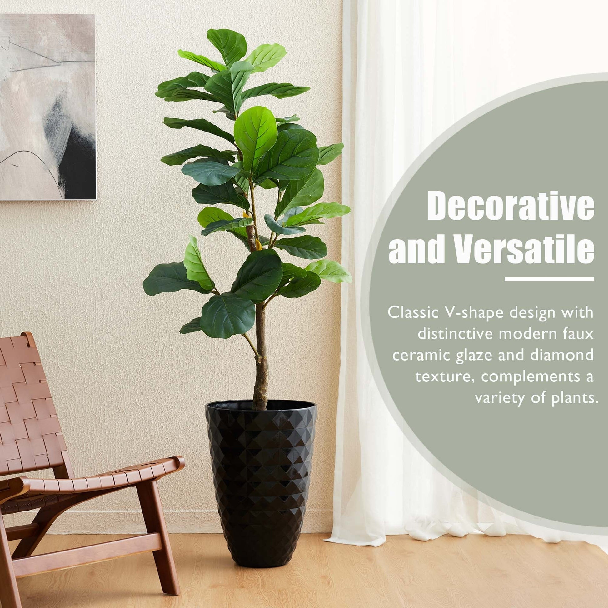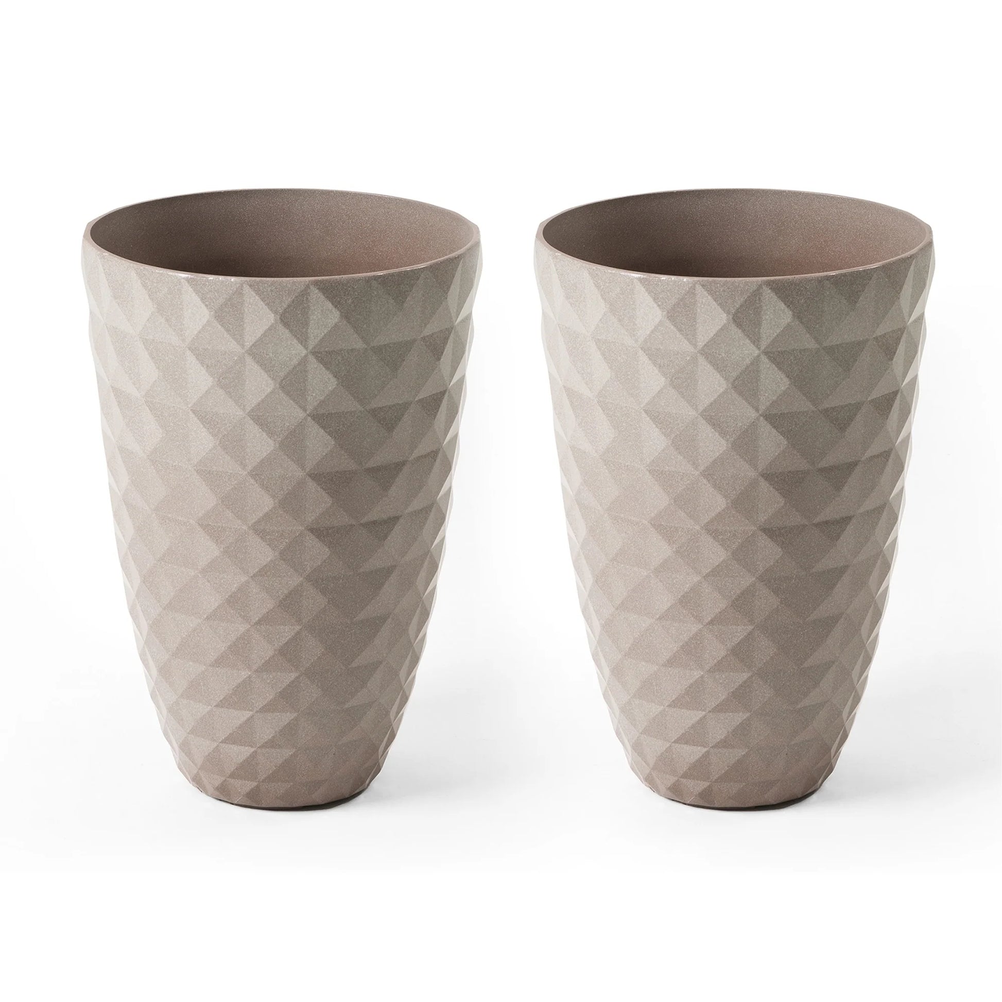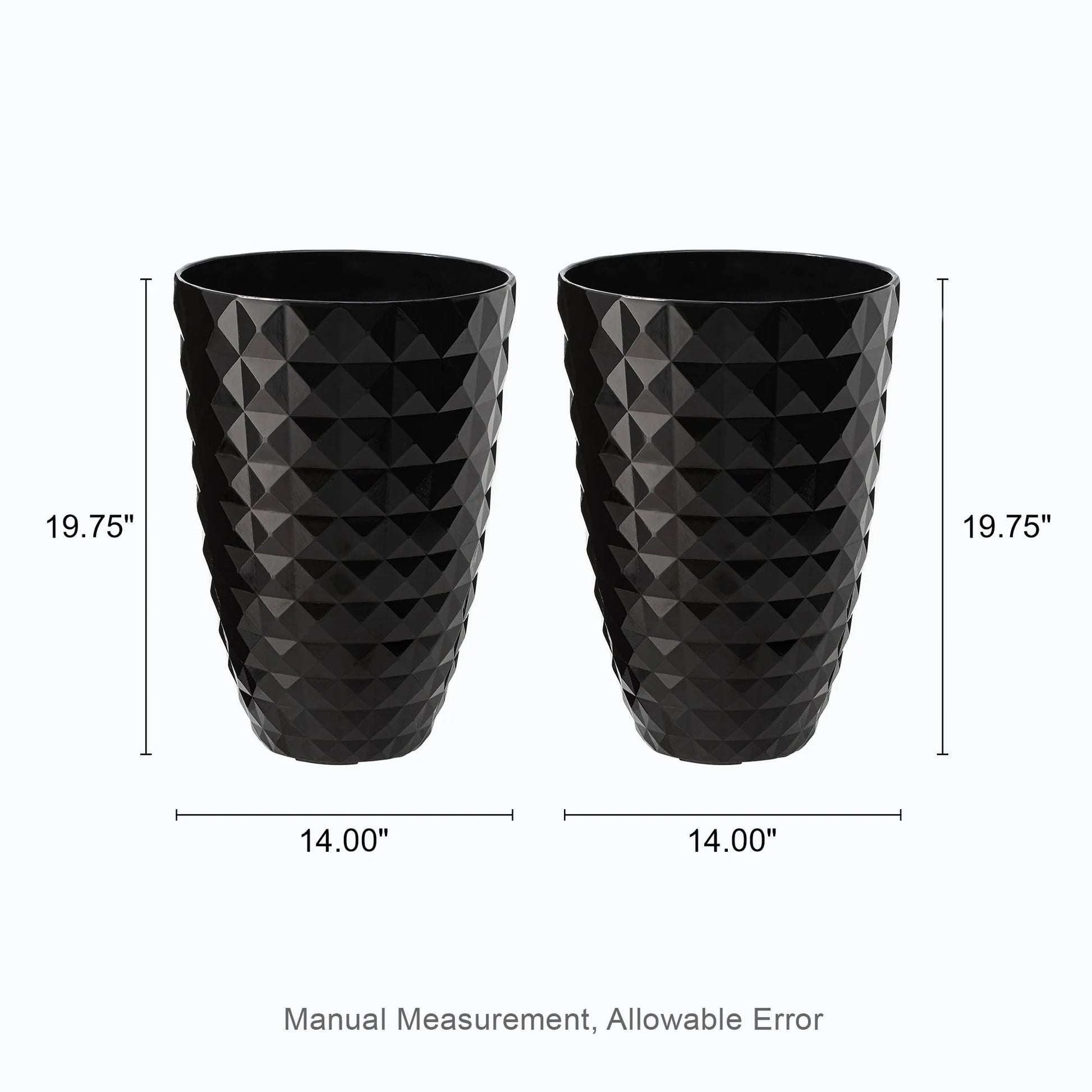 Glitzhome 19.75" H Eco-Friendly Oversized Faux Ceramic Diamond Textured Tall Planter Porch Flowerpot (Set of 2)
