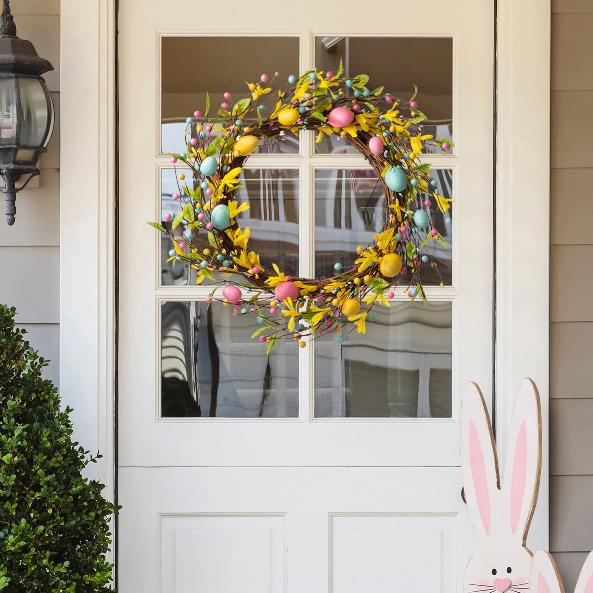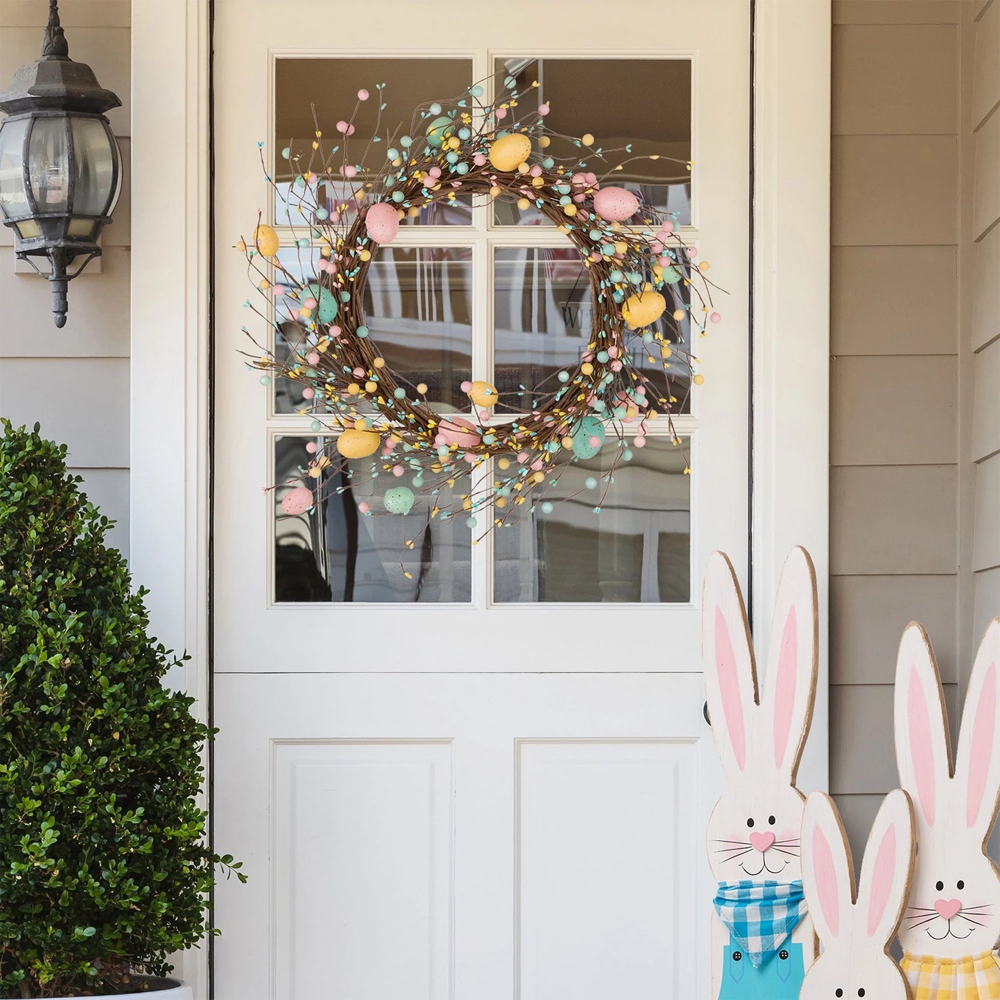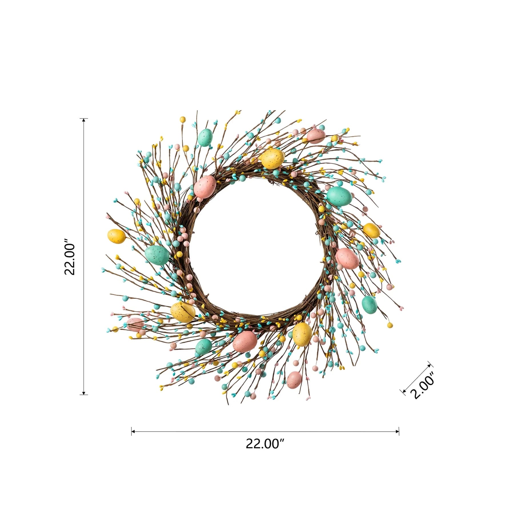 Glitzhome 22"D Artificial Easter Spring Eggs Berries Wreath for Front Door Wall Decor