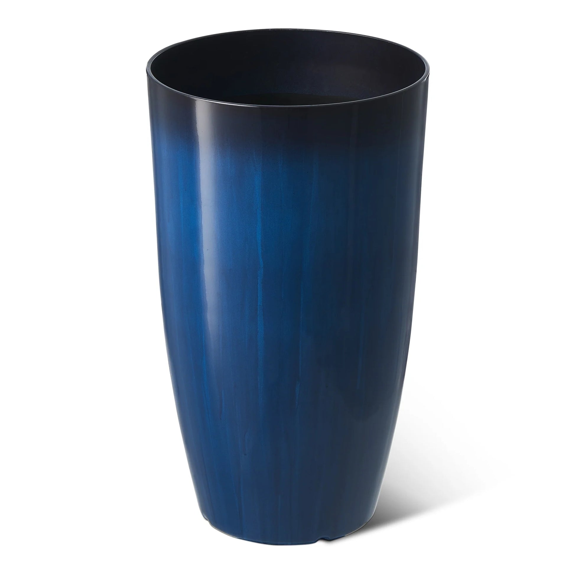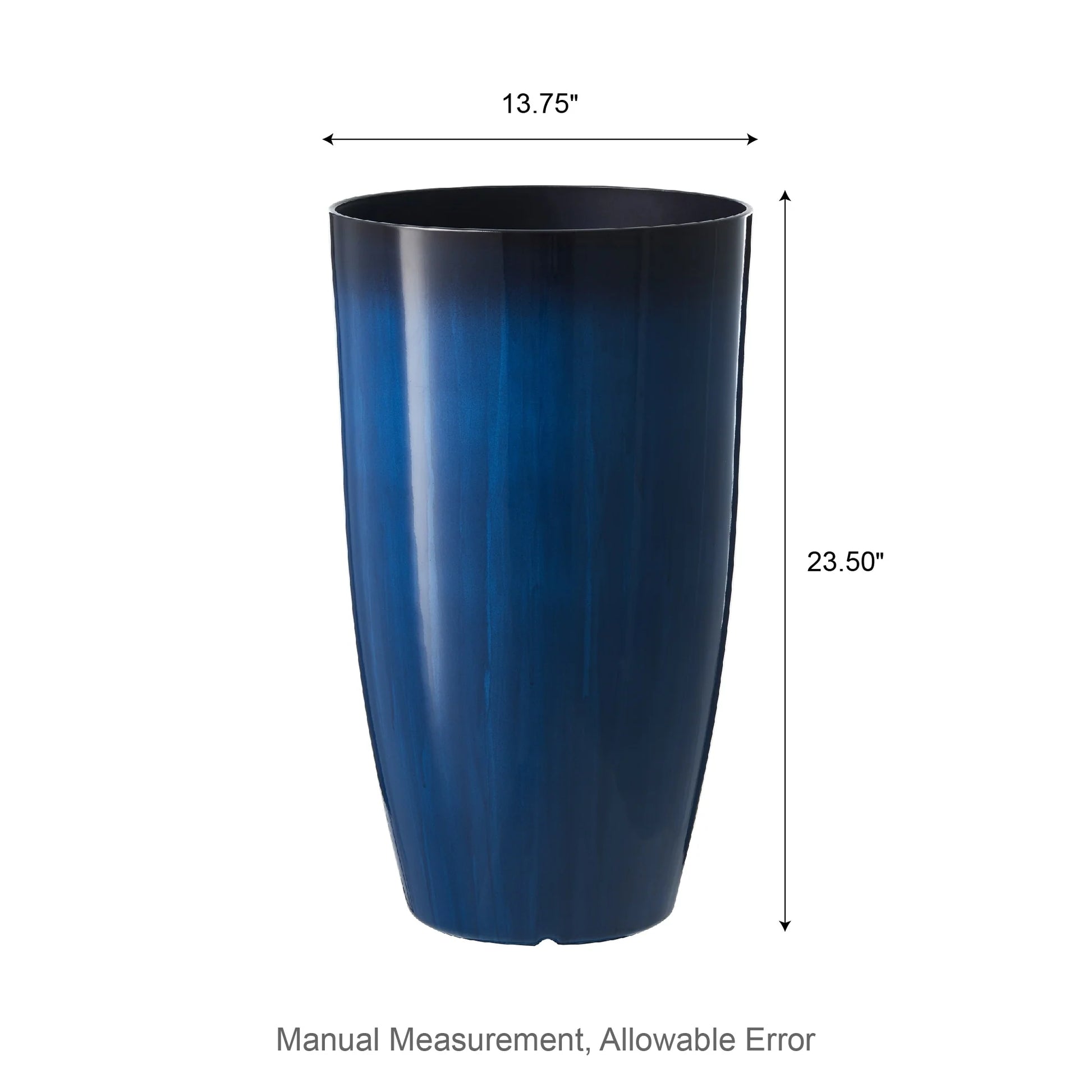 Enhance your indoor or outdoor space with this stylish set of 2 tall gradient cobalt blue planters. Crafted from eco-friendly PP with faux ceramic finish, they are safe and weather-resistant, perfect for all seasons. The V-shape round design, coupled with elegant and charm diamond texture and faux ceramic finish, effortlessly blends with various decor styles, creating an eye-catching focal point. Our planters come with hassle-free Knock-out drainage holes for convenient use. This decorative and versatile set is a perfect choice to showcase your favorite greenery or blooms, forming an intriguing and vibrant landscape that helps to transform your garden, patio, or home space into a beautiful, delightful, and relaxing environment.