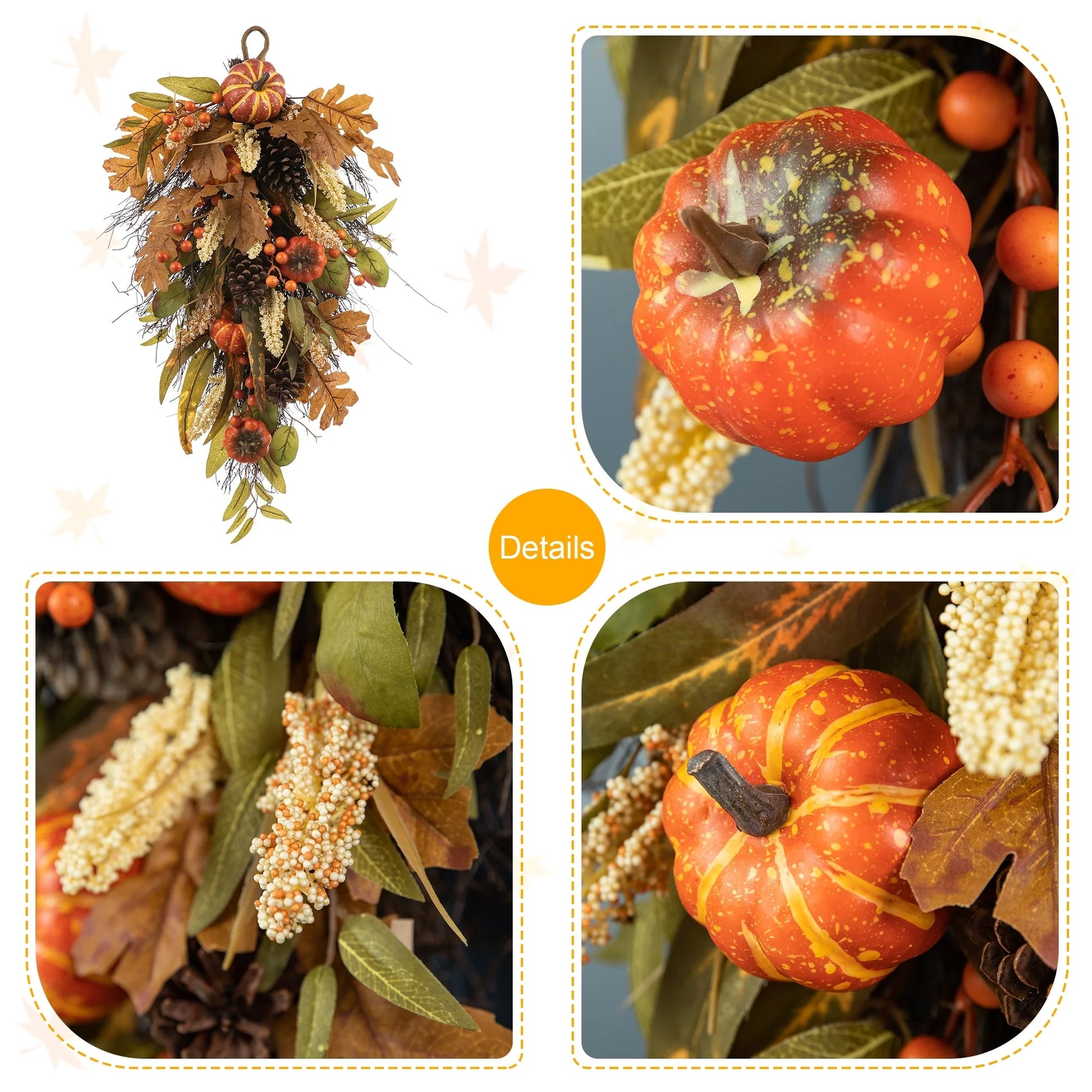 Glitzhome 26"H Fall Sunflower Pumpkin Lotus Leaf Teardrop Swag for Thanksgiving