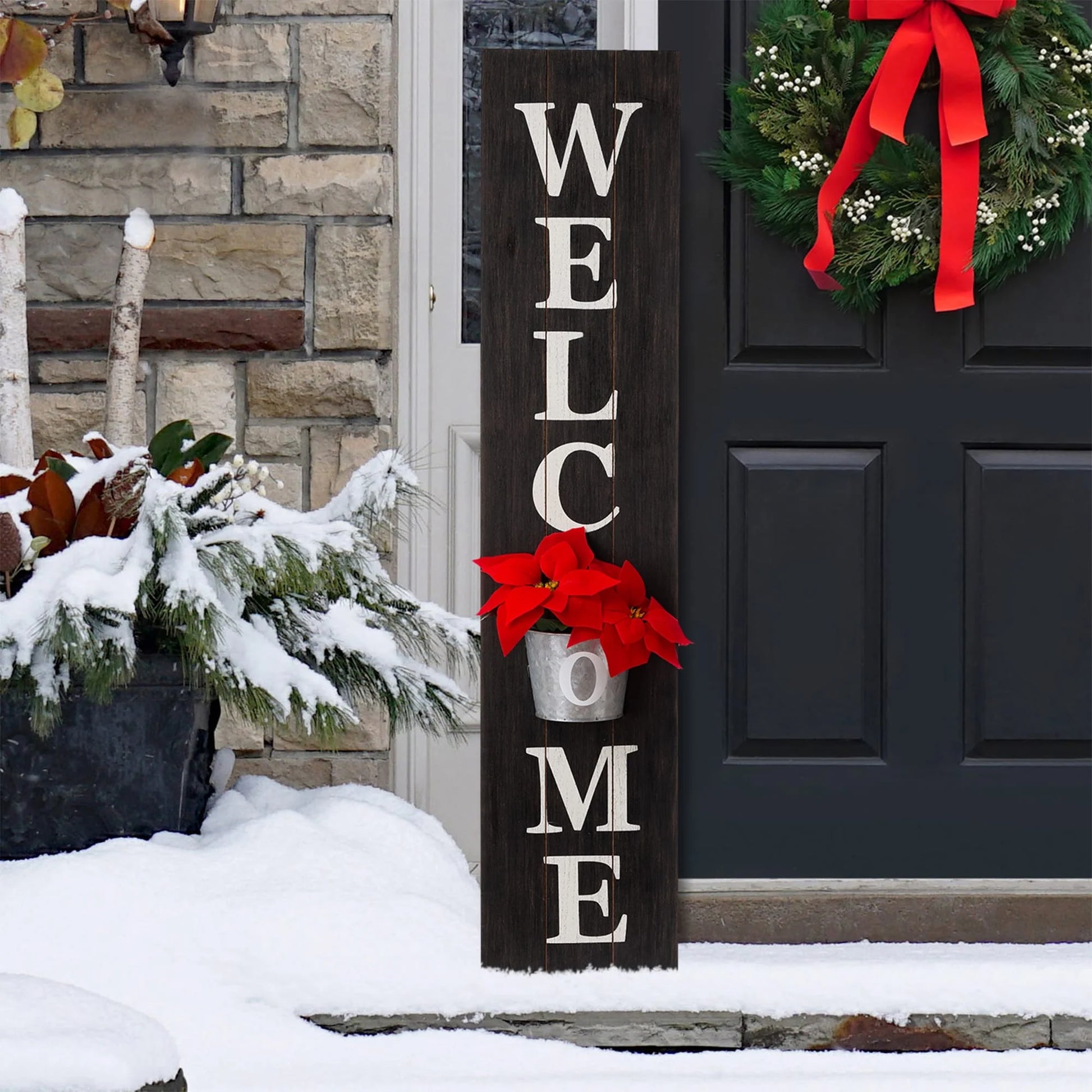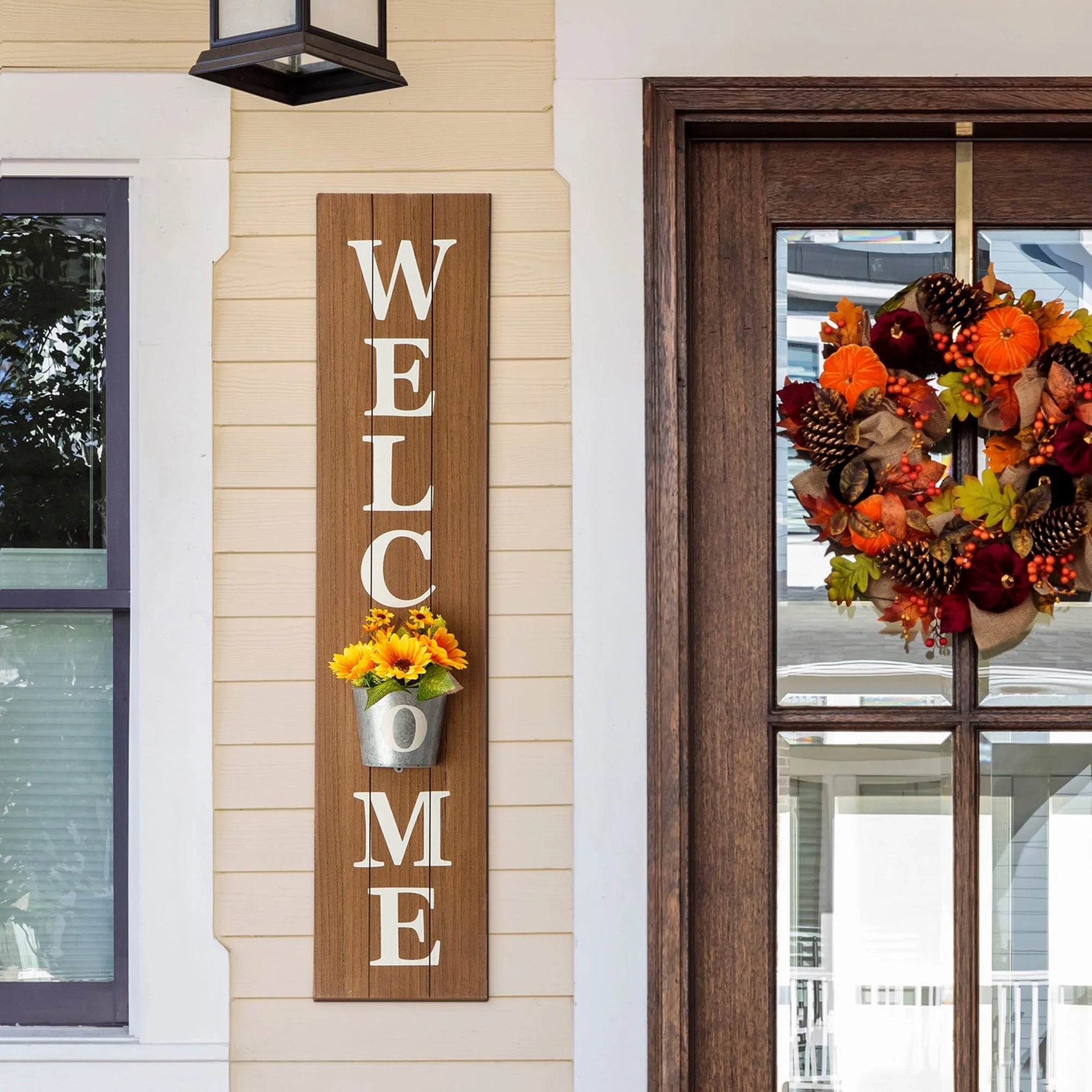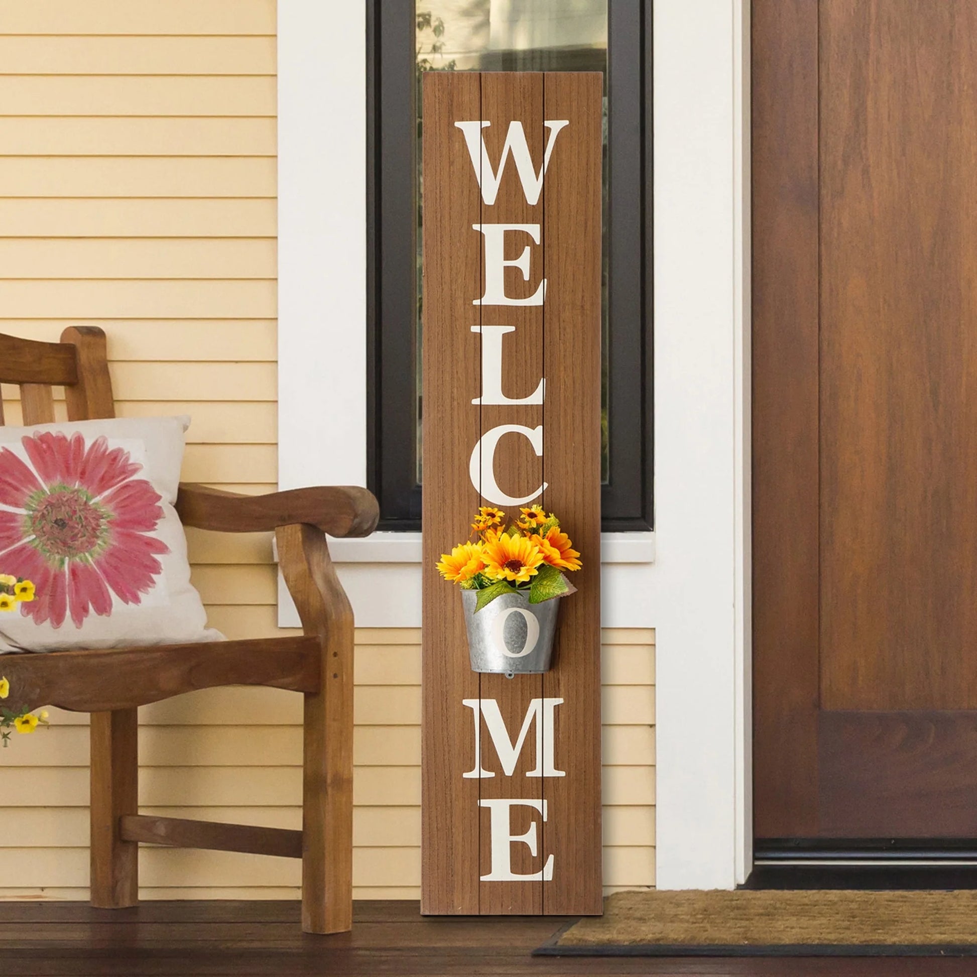 Glitzhome 42-inch Wooden Welcome Porch Sign Wall Decor with Metal Planter